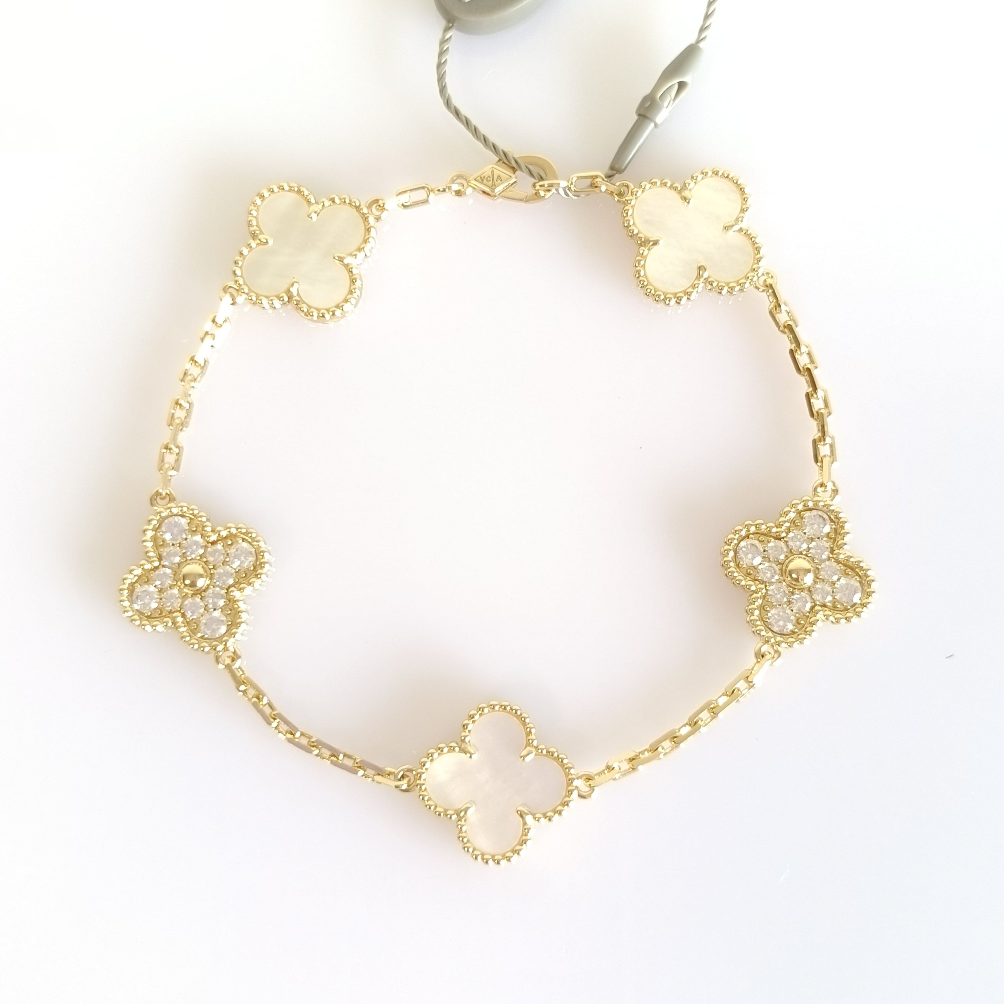 白蝶貝 パヴェ イエローゴールド クローバーブレスレット