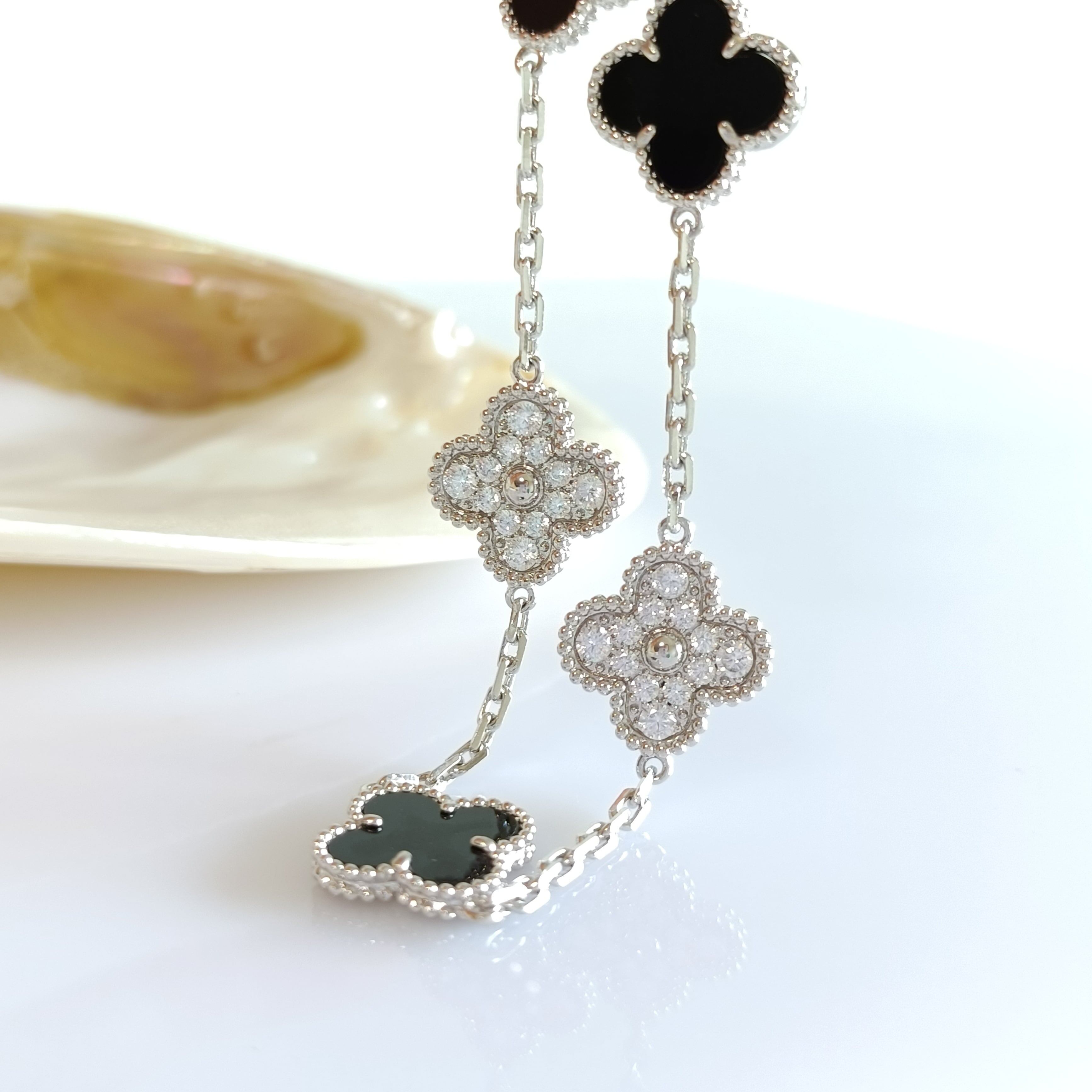 オニキス パヴェ ホワイトゴールド クローバーブレスレット