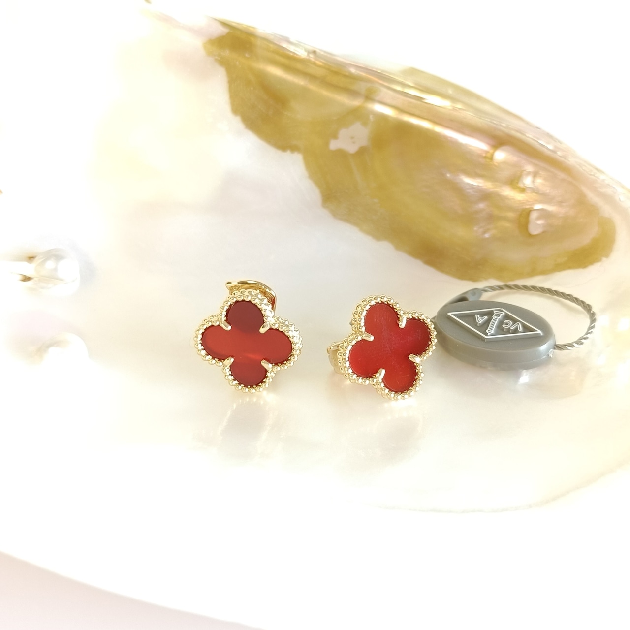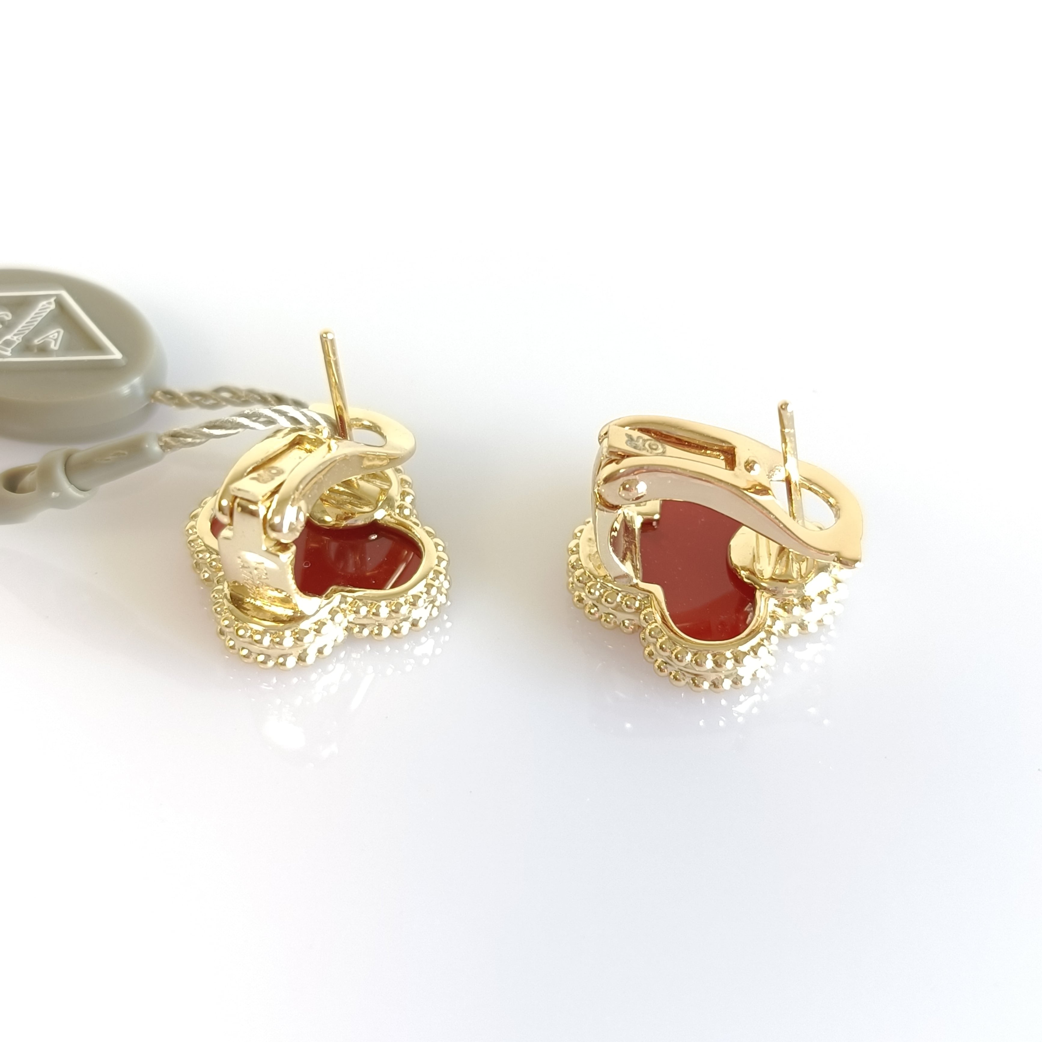 カーネリアン イエローゴールド クローバーピアス 15mm