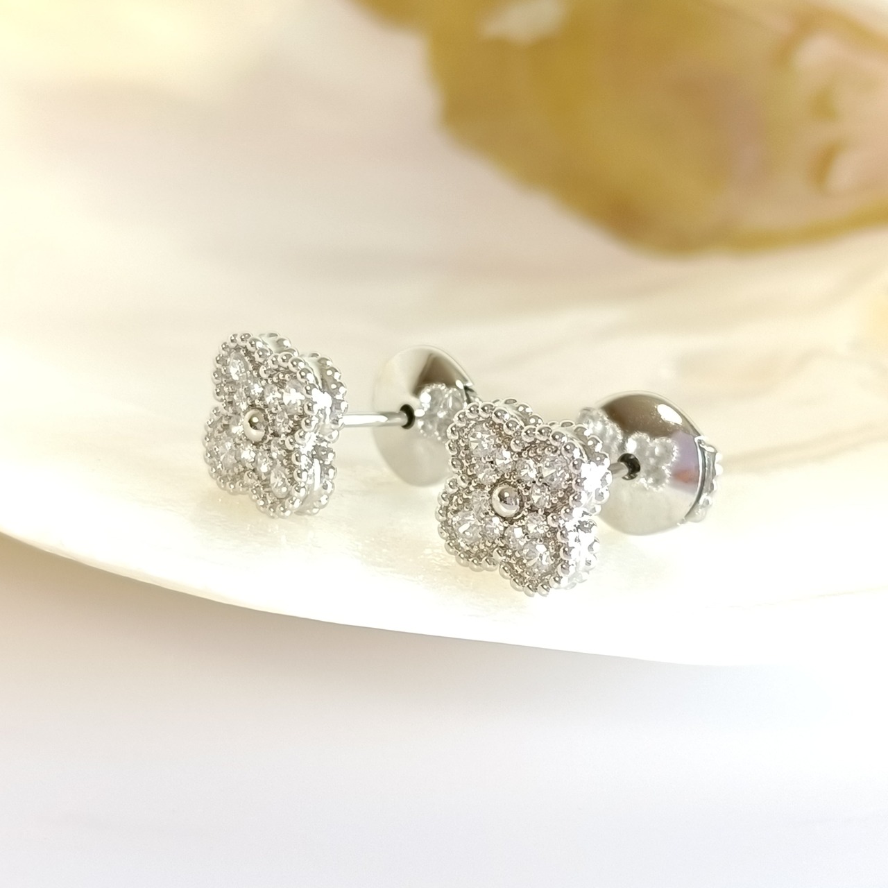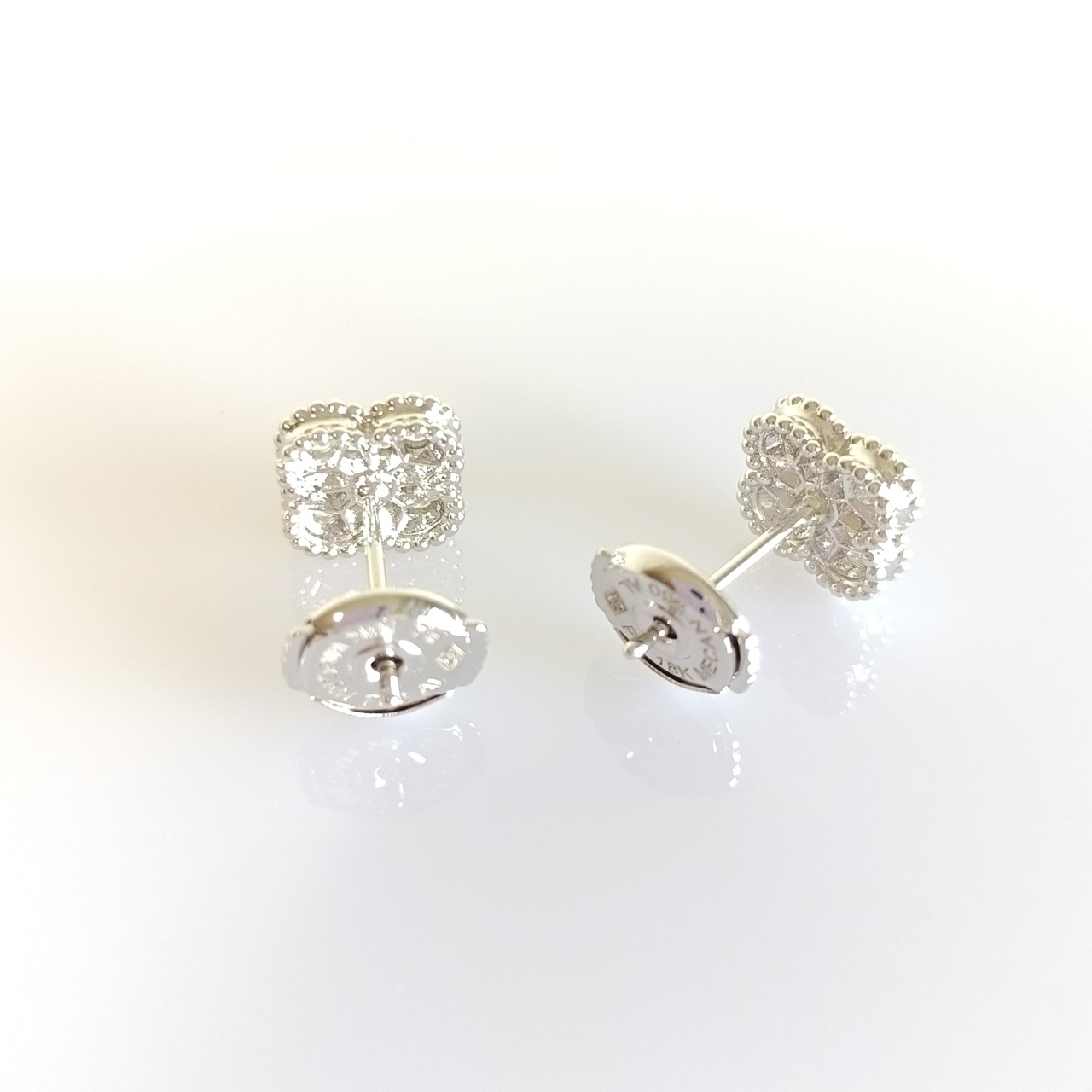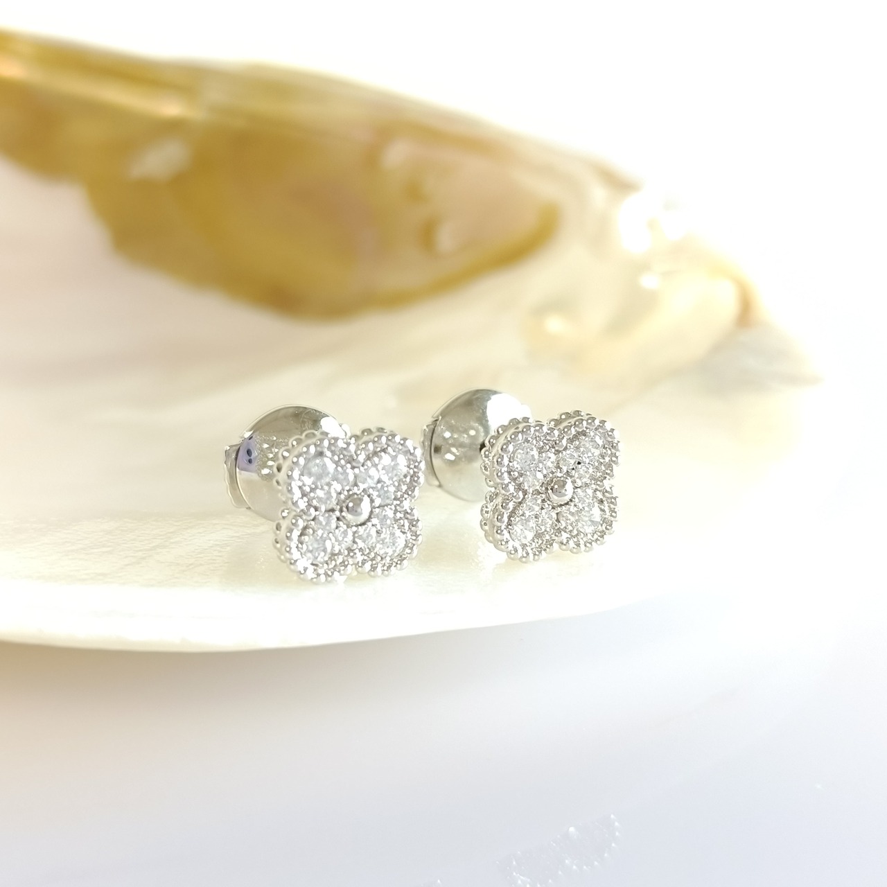 パヴェ ホワイトゴールド ミニクローバーピアス 9.5mm