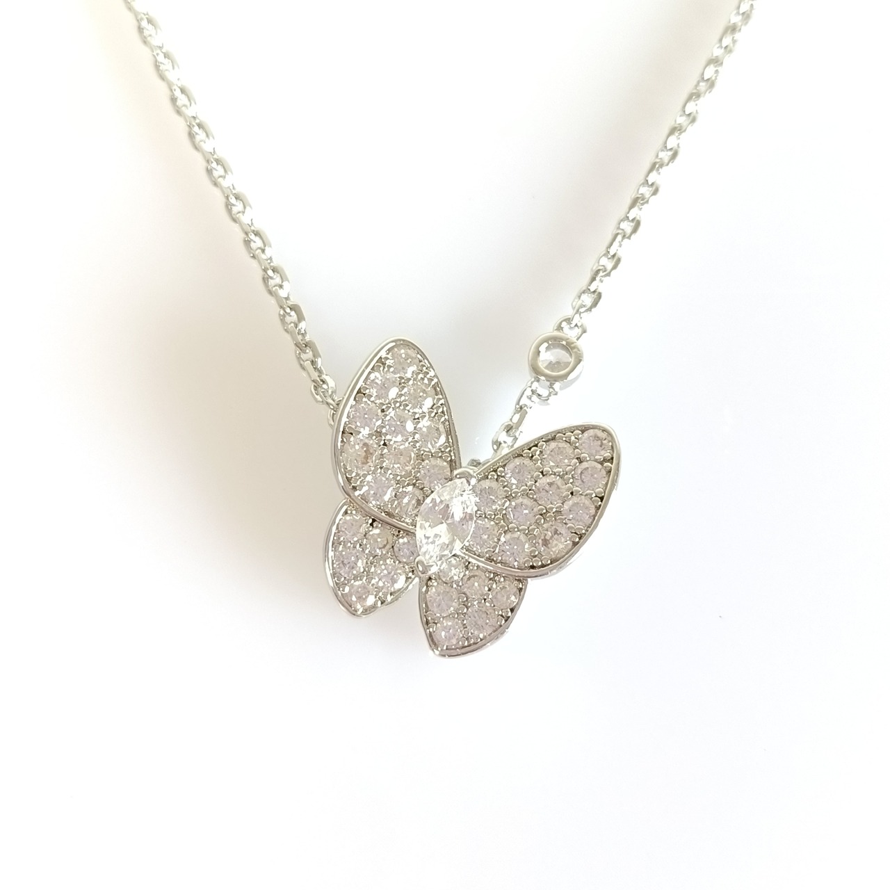 パヴェ ホワイトゴールド バタフライネックレス