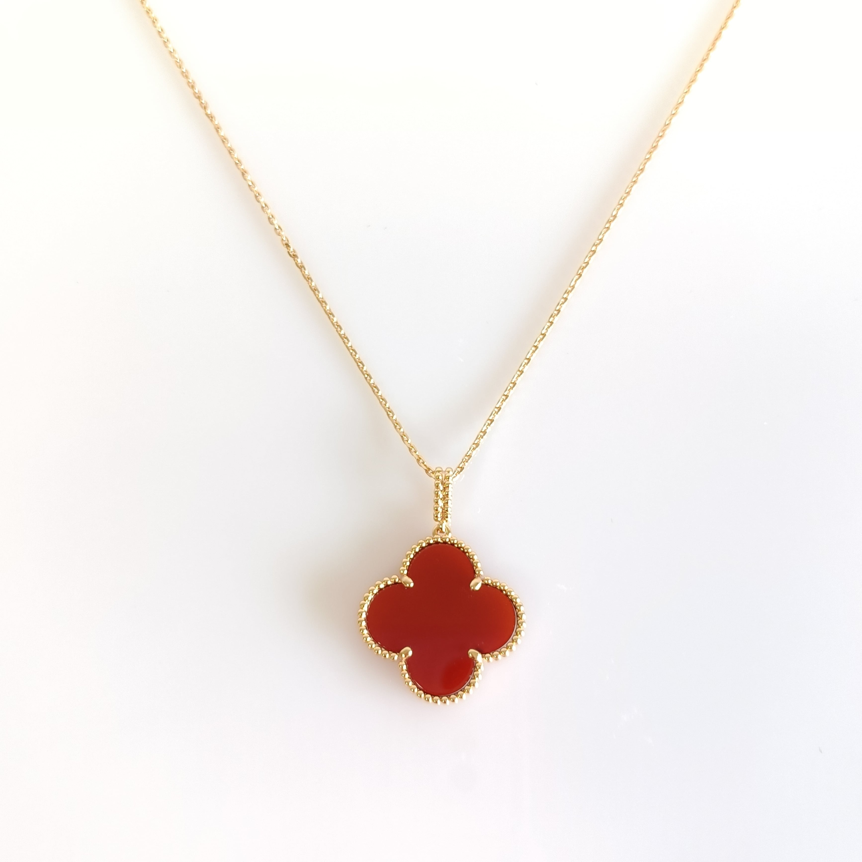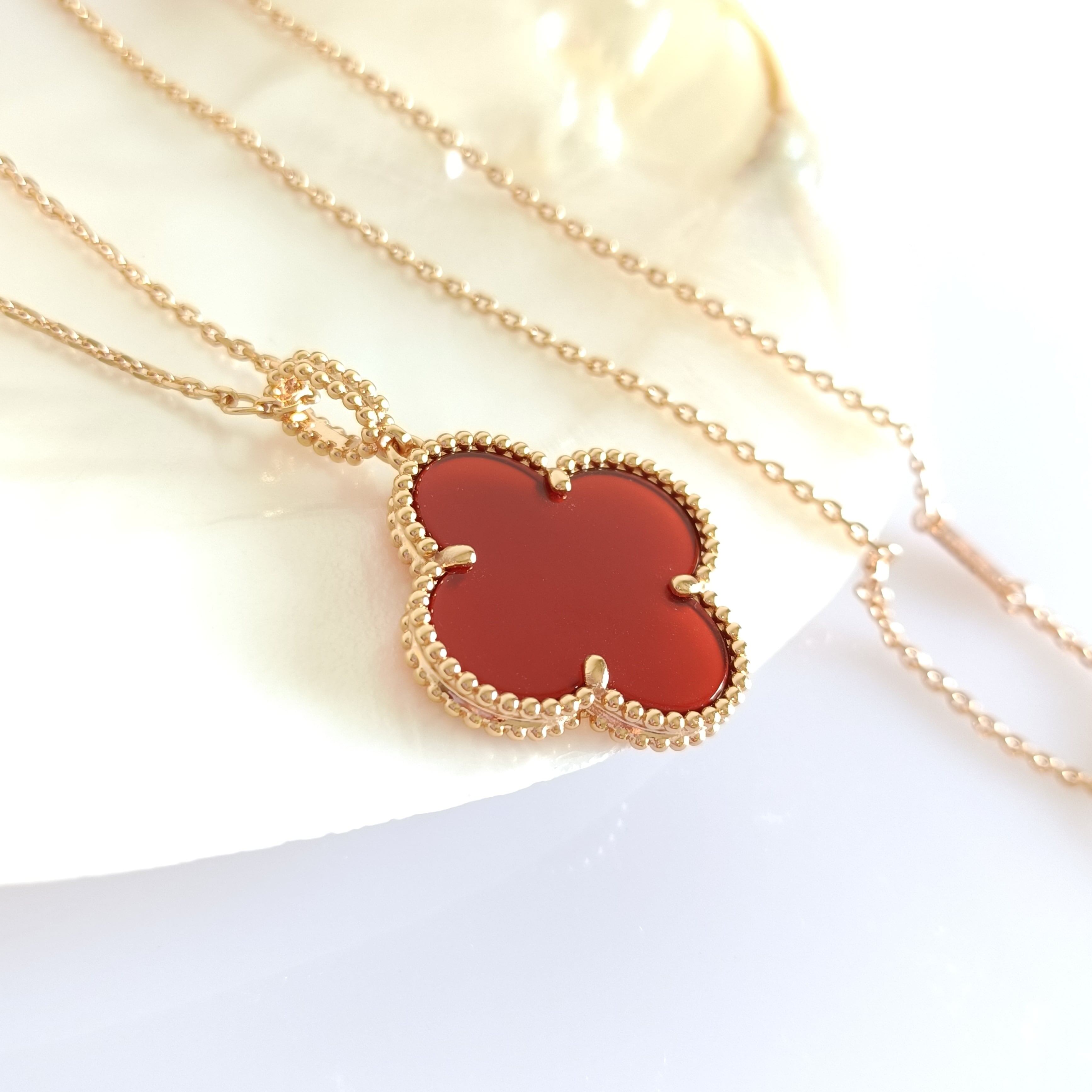 カーネリアン ローズゴールド クローバーロングネックレス 26mm