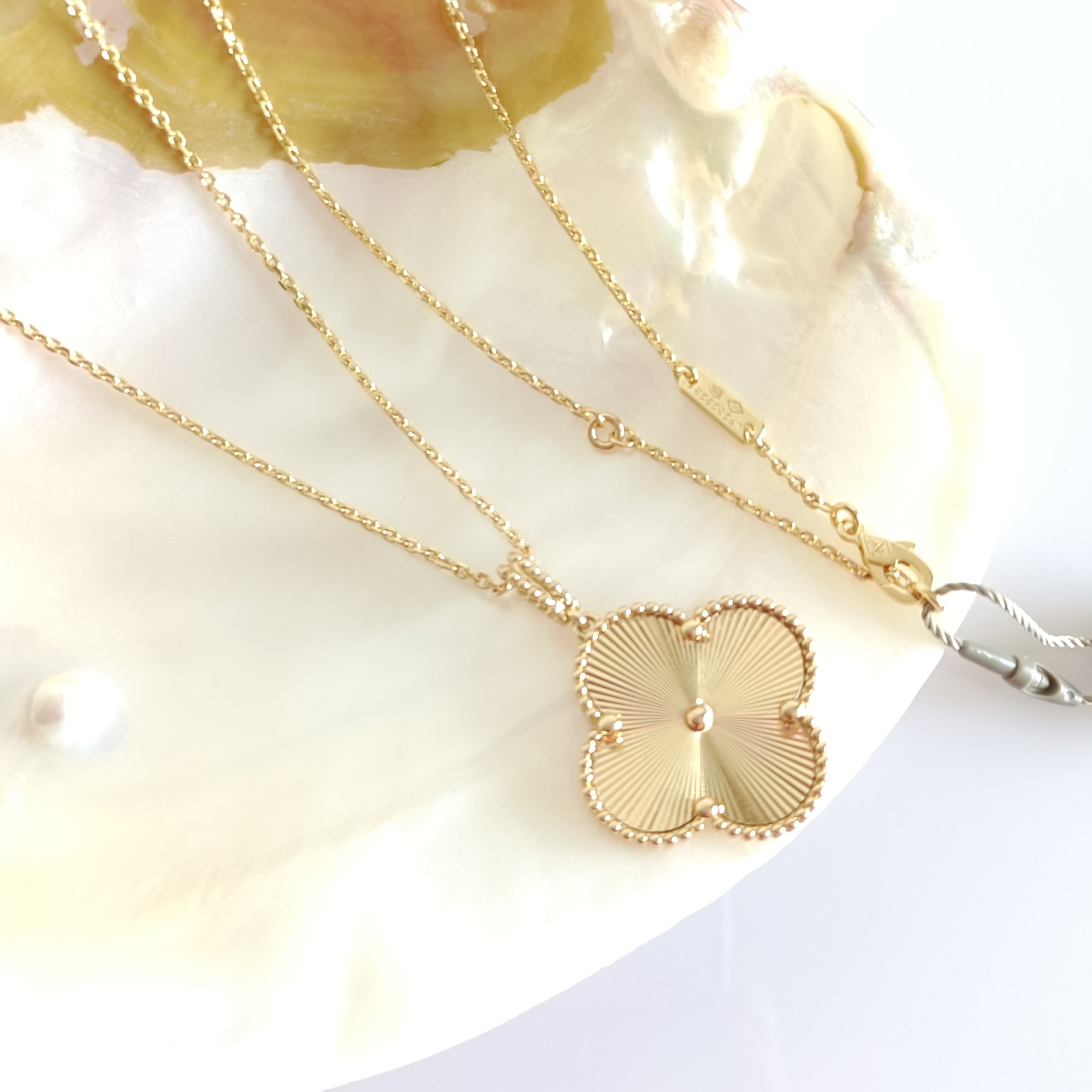 ギヨシェ イエローゴールド クローバーロングネックレス 26mm