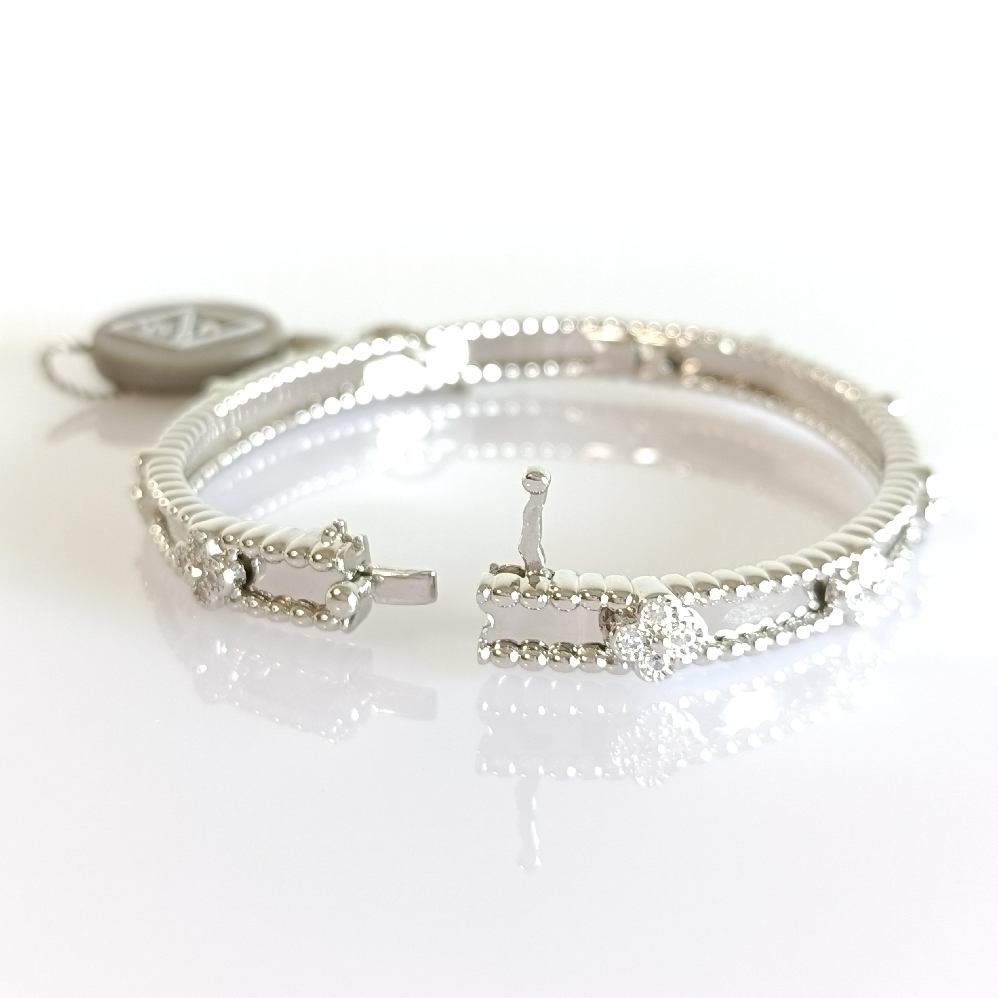 ホワイトゴールド ペルレクローバーバングル 6mm 16cm