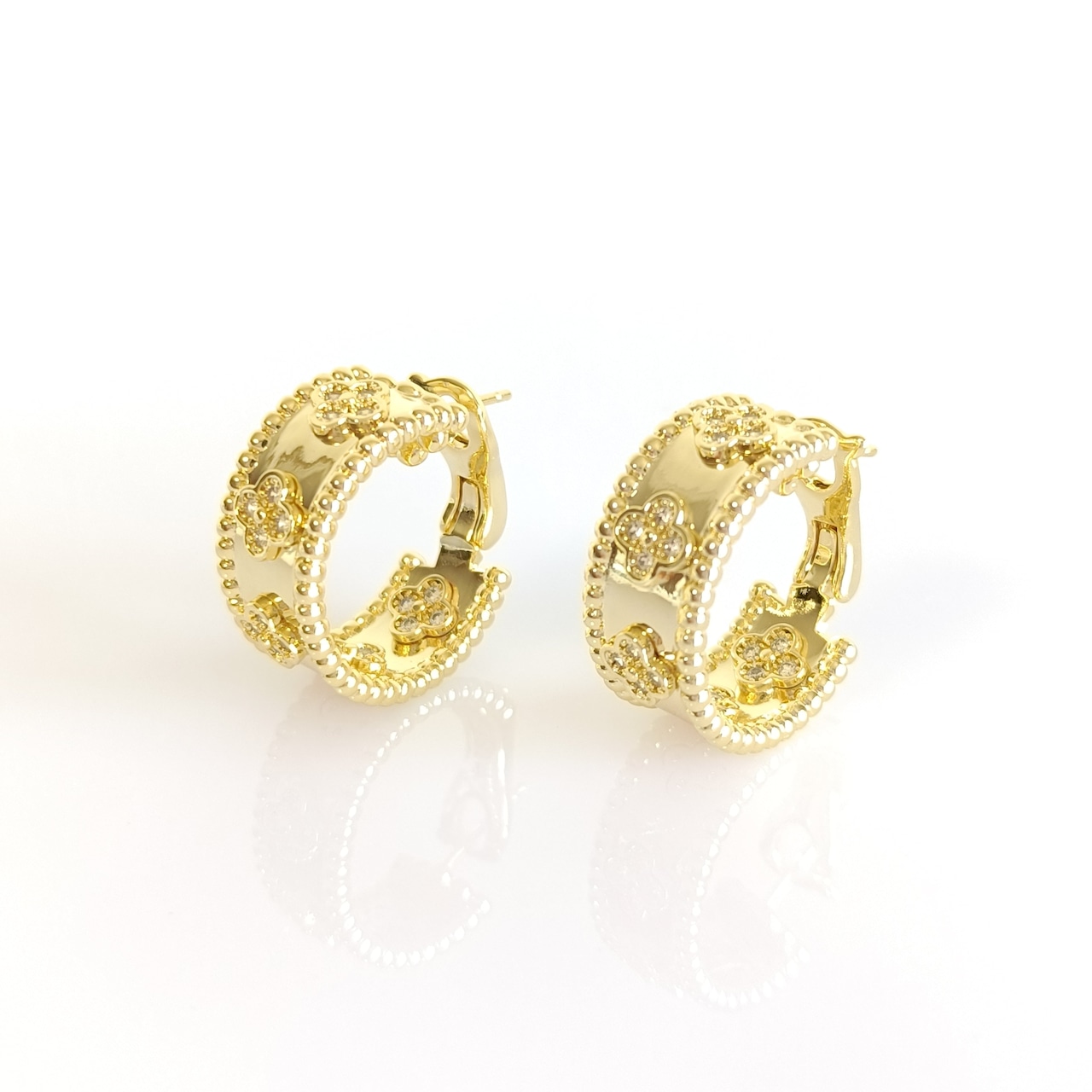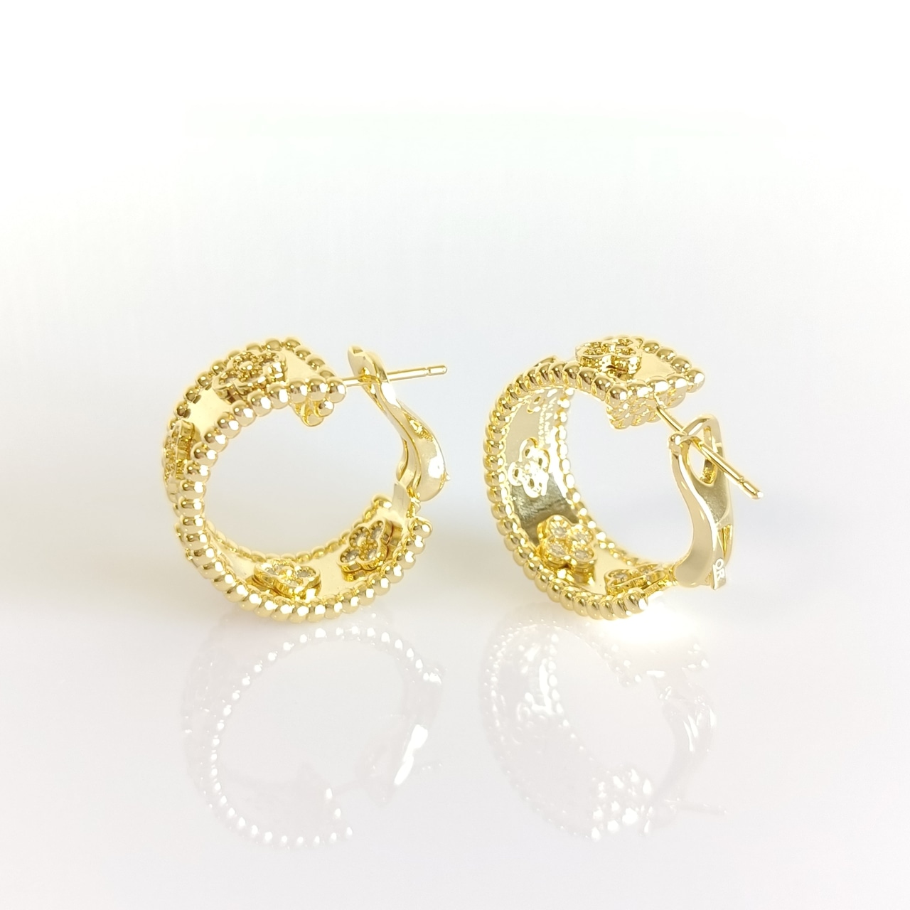 イエローゴールド ペルレクローバーピアス