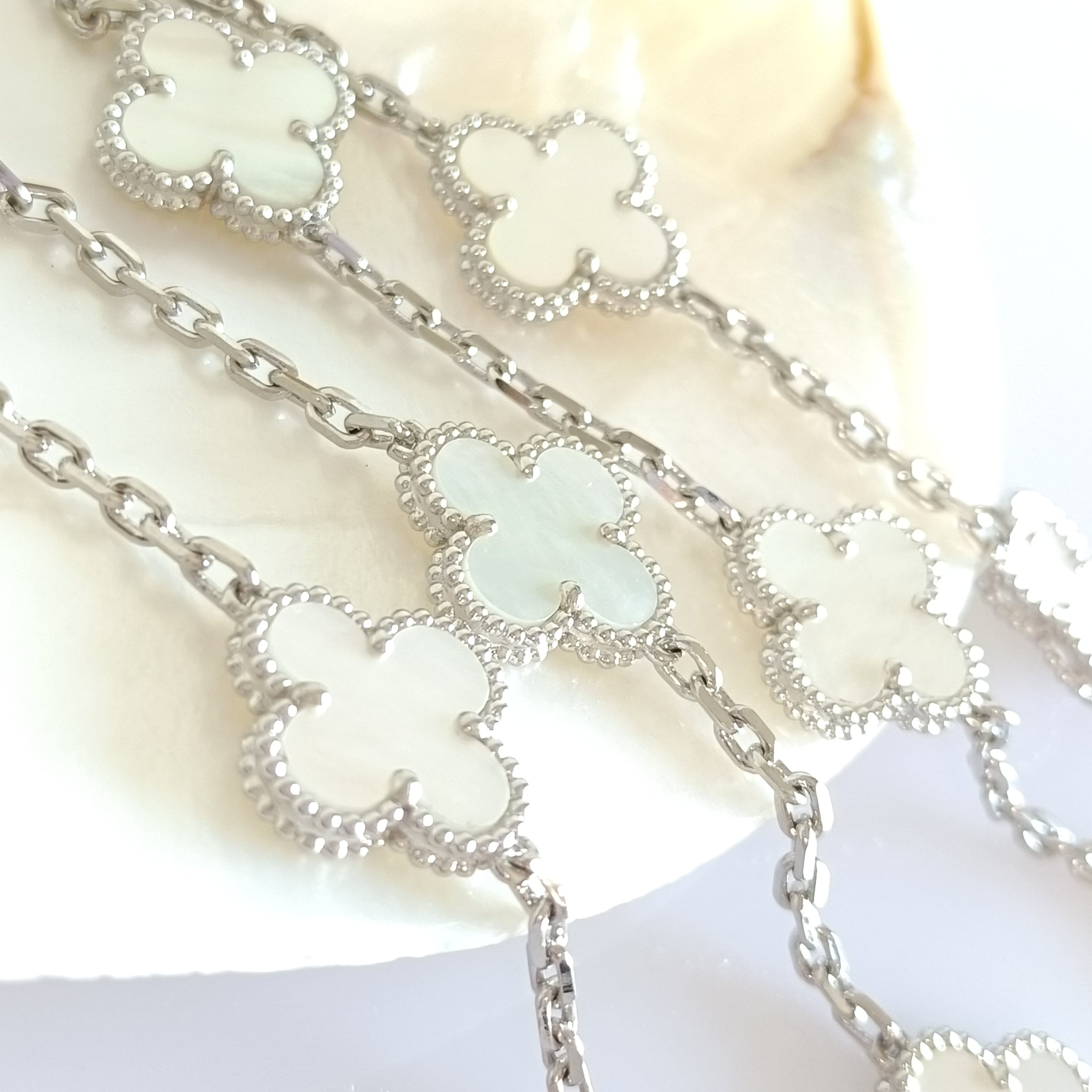 白蝶貝 ホワイトゴールド 20pクローバーロングネックレス