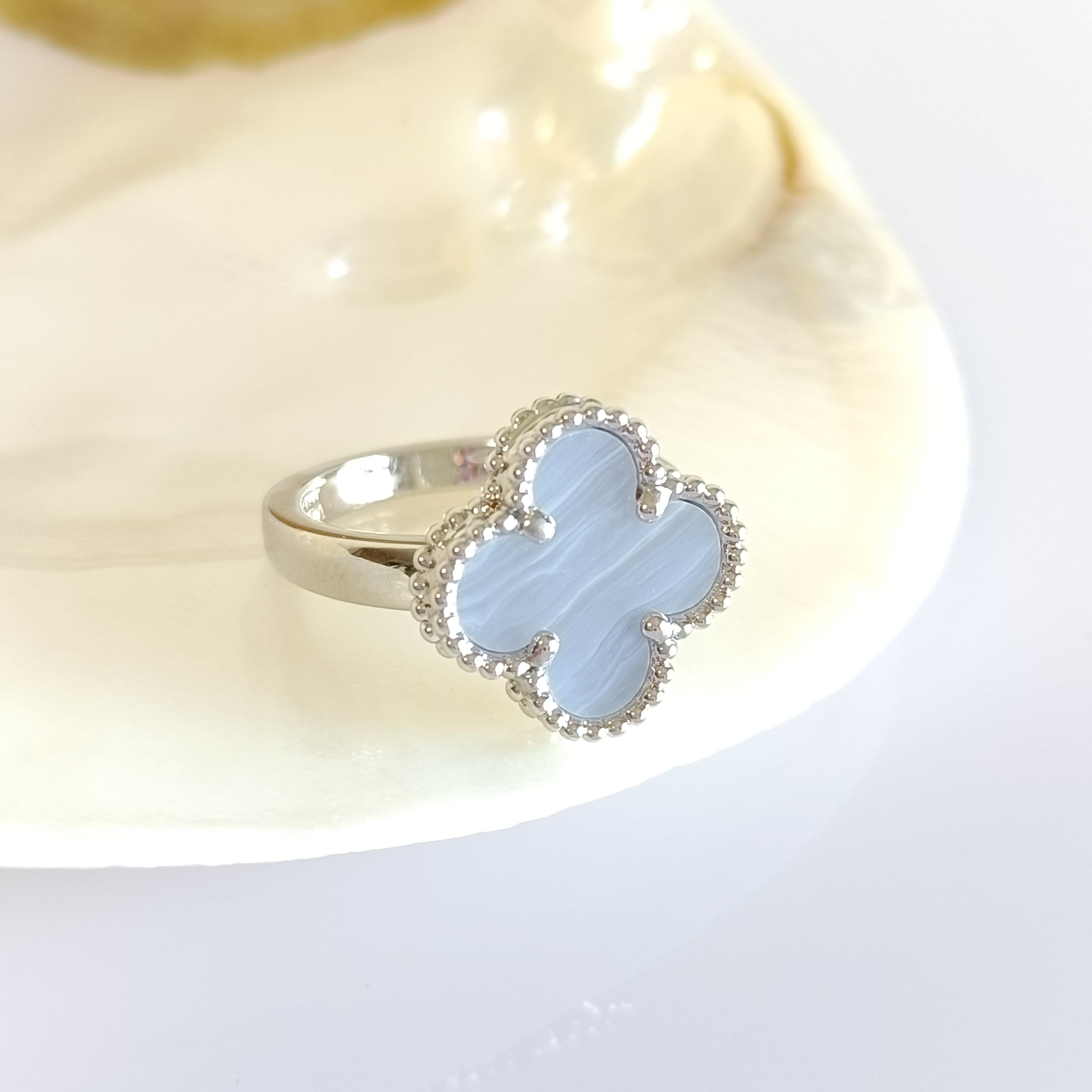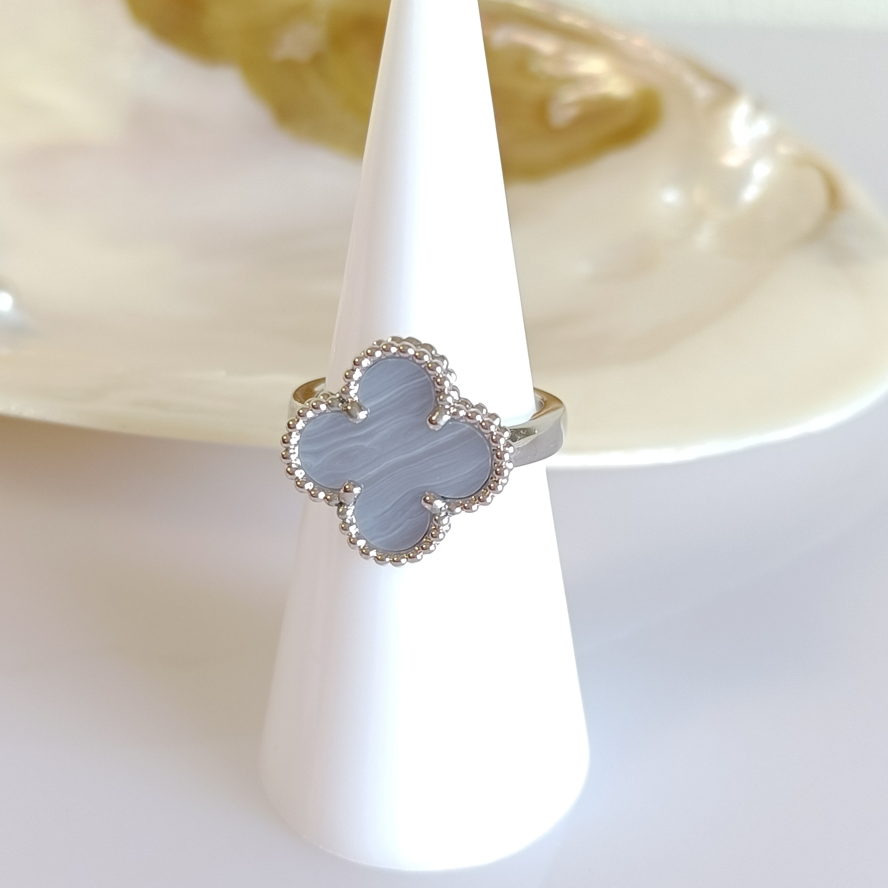 11号 カルセドニー ホワイトゴールド クローバーリング 15mm
