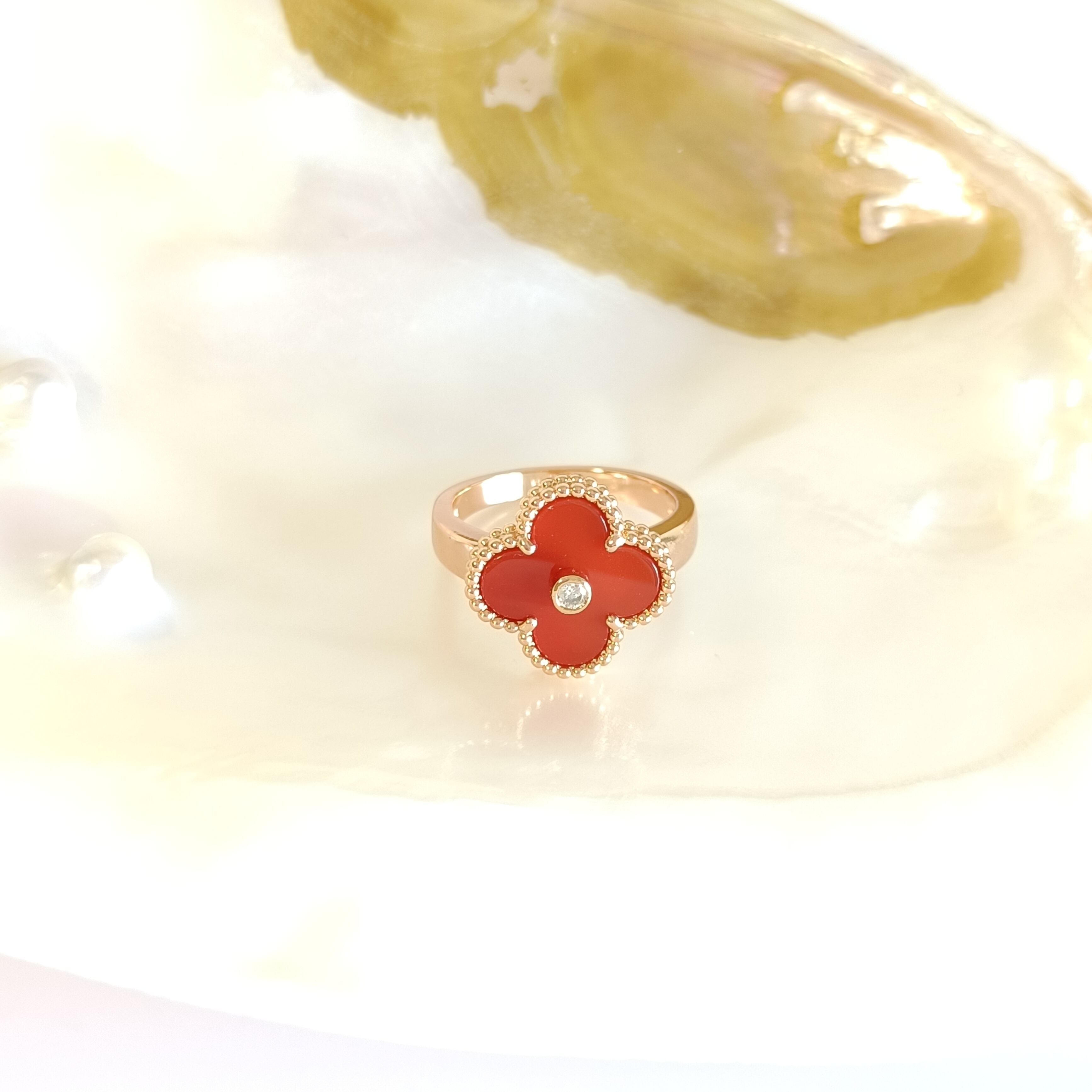 14号 カーネリアン ダイヤ ローズゴールド クローバーリング 15mm