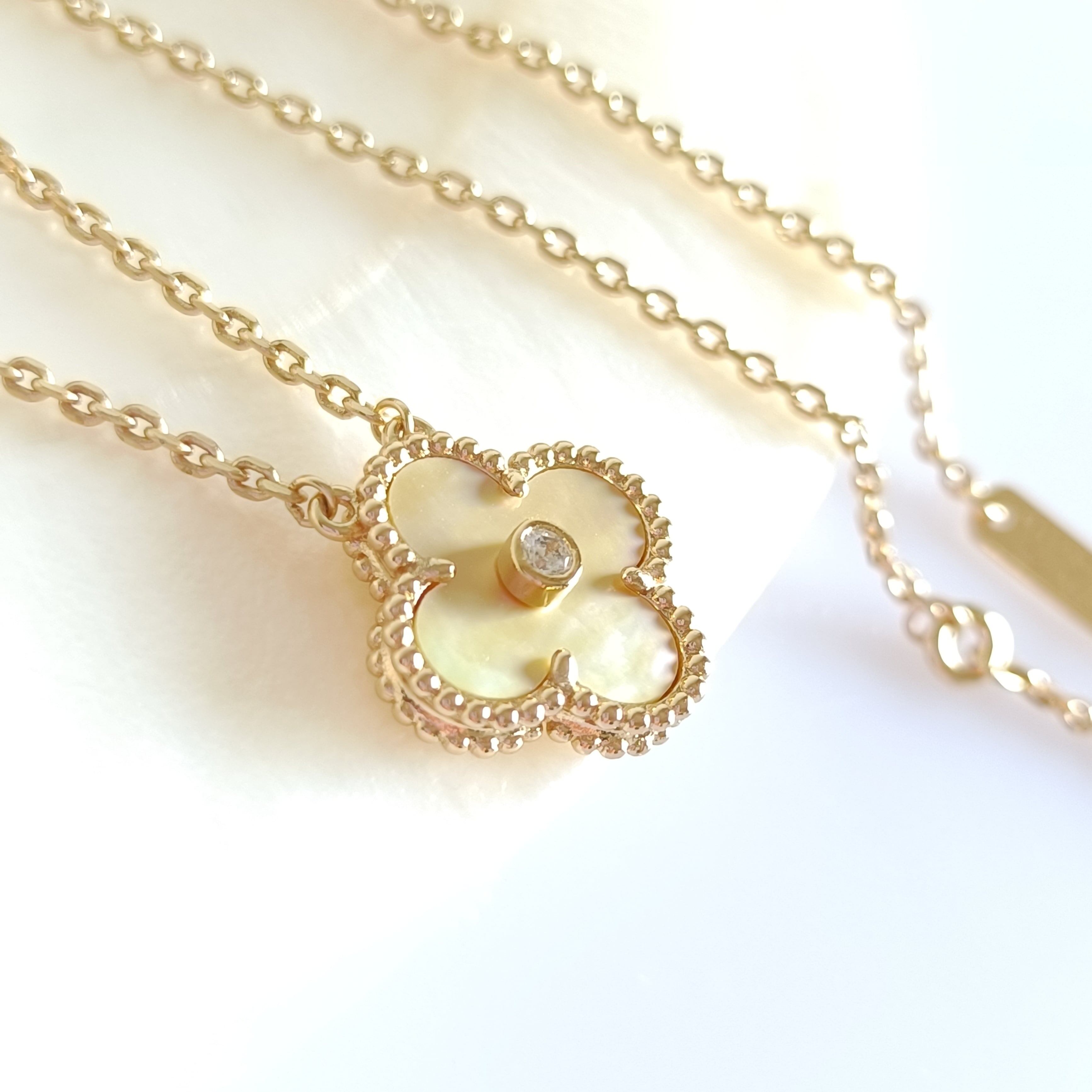 金蝶貝 ダイヤ イエローゴールド クローバーネックレス 15mm