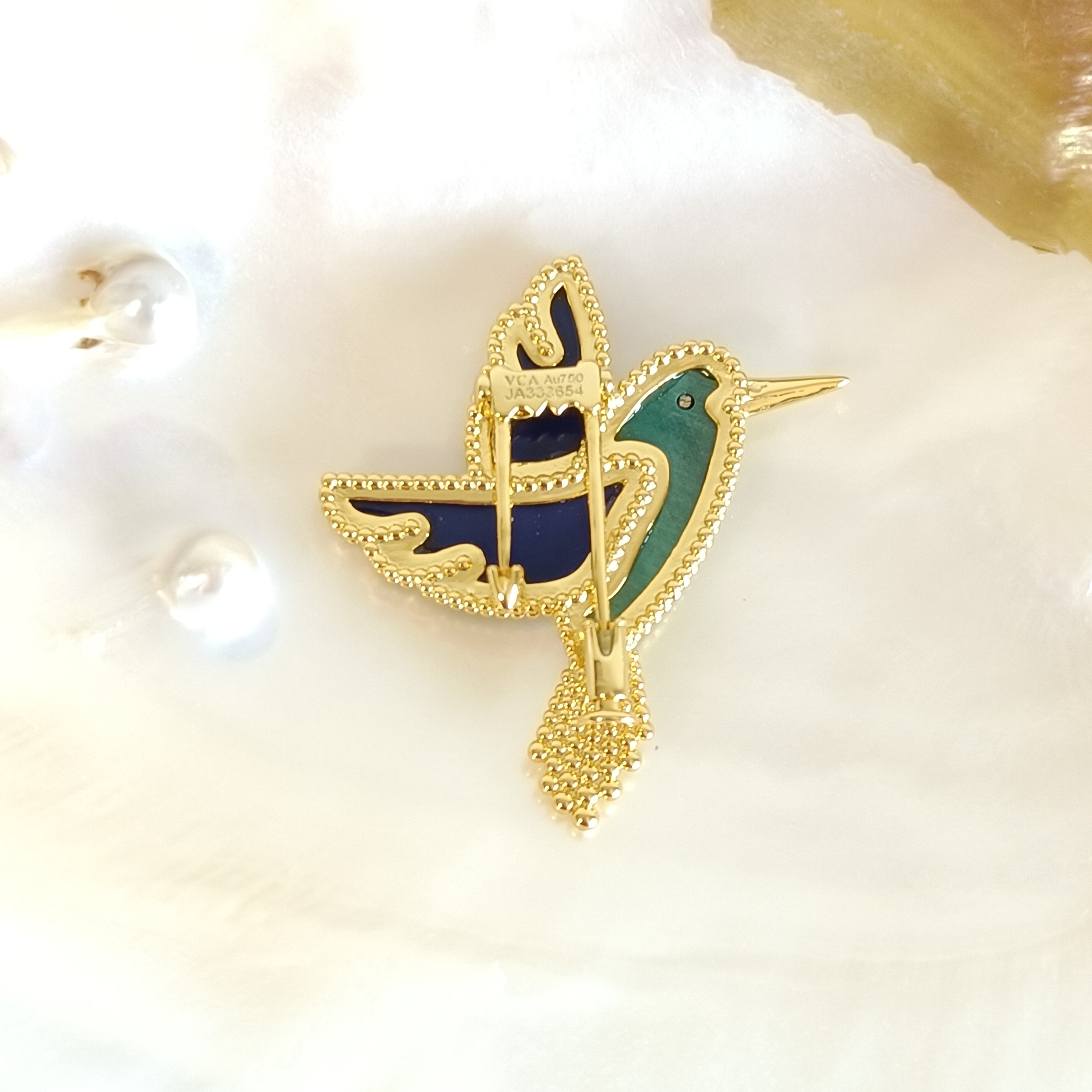 ハミングバード ブローチ マラカイト ラピスラズリ イエローゴールド