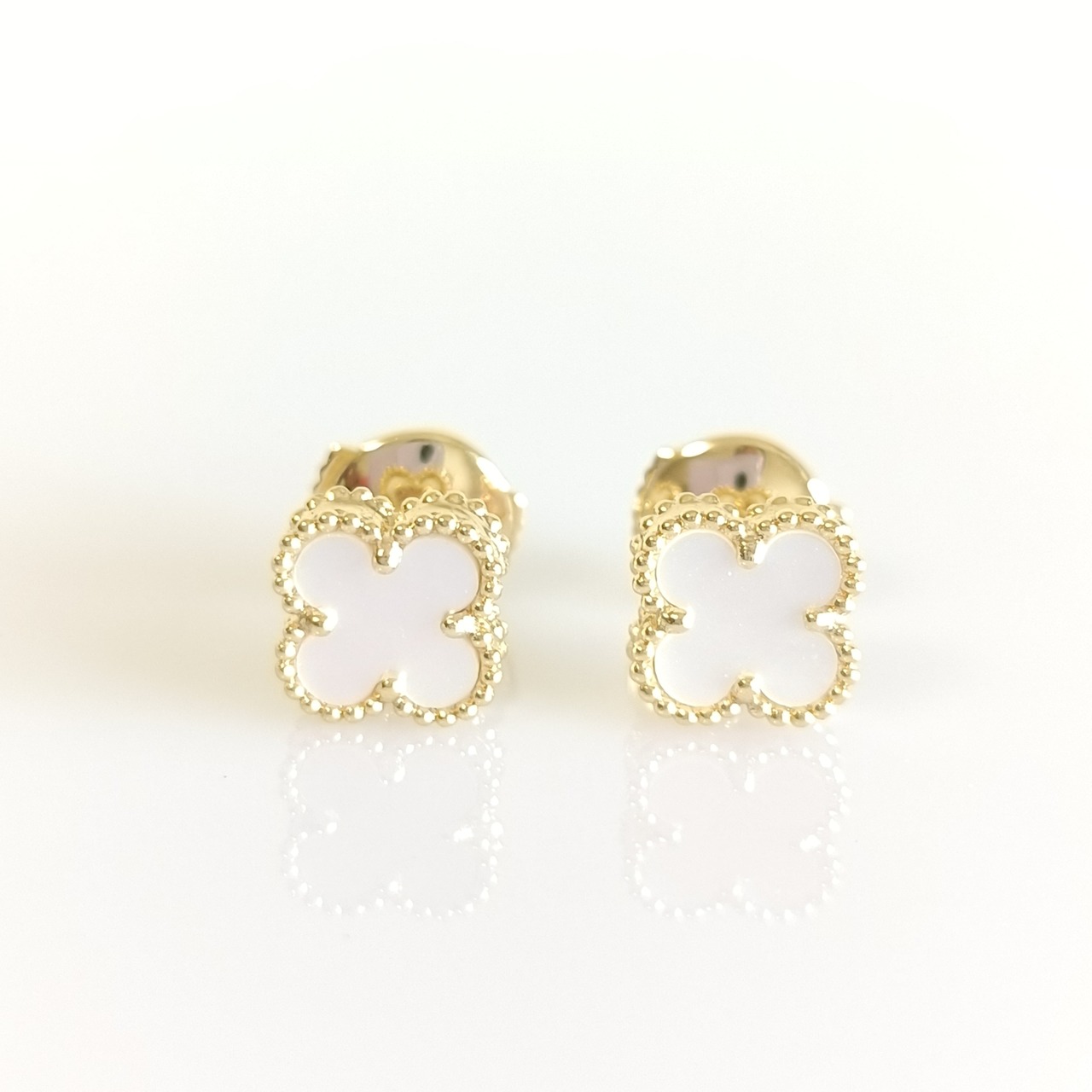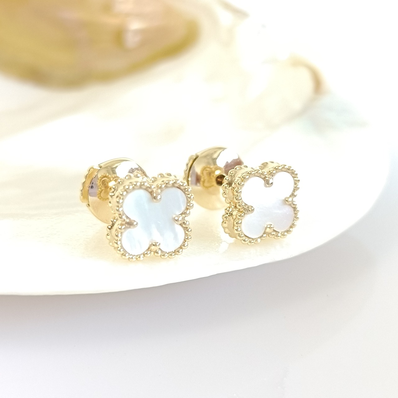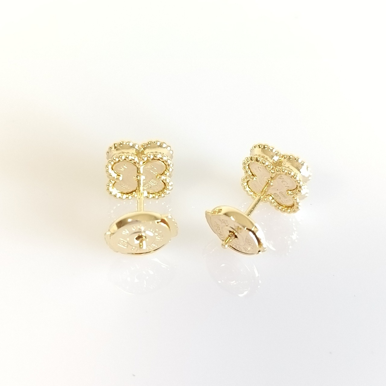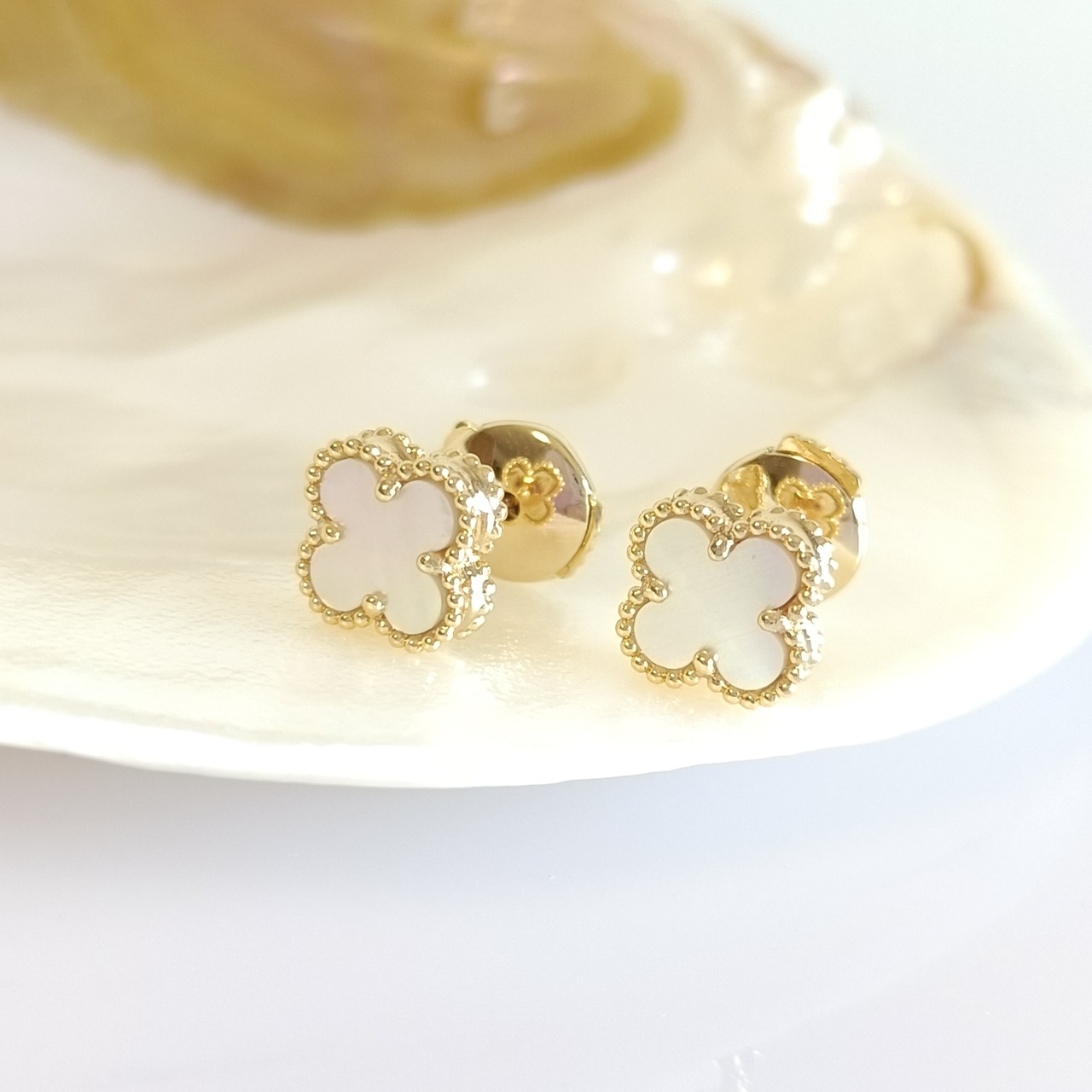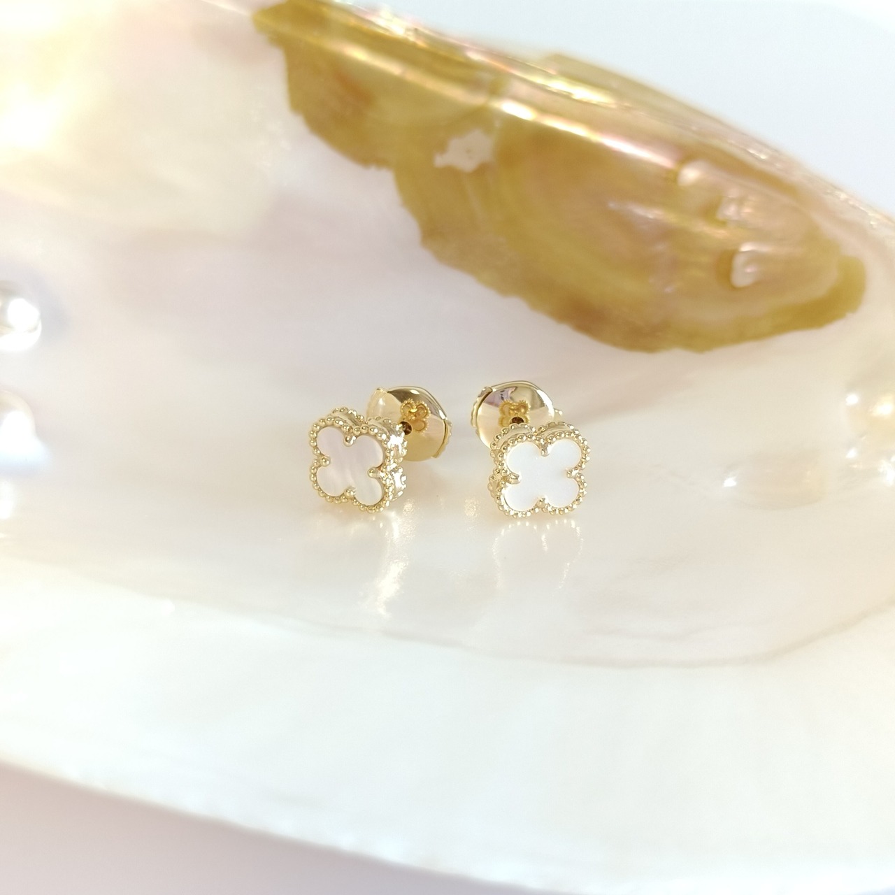 白蝶貝 イエローゴールド ミニクローバーピアス 9.5mm