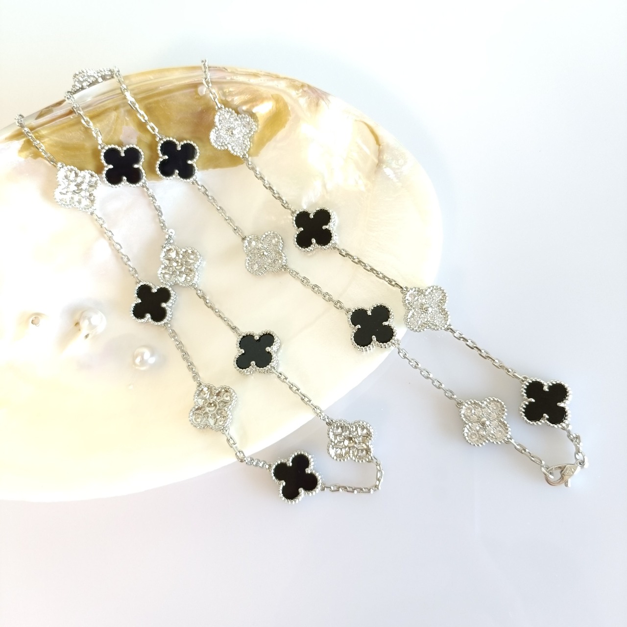 オニキス パヴェ ホワイトゴールド 20pクローバーロングネックレス