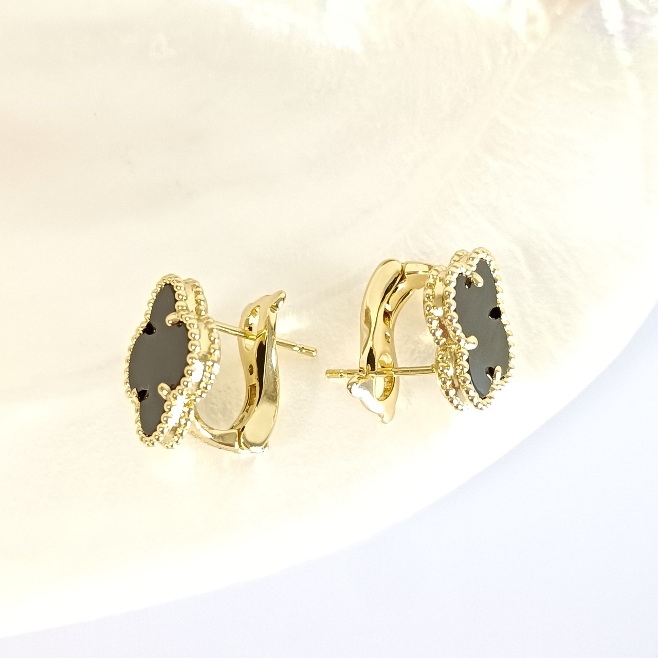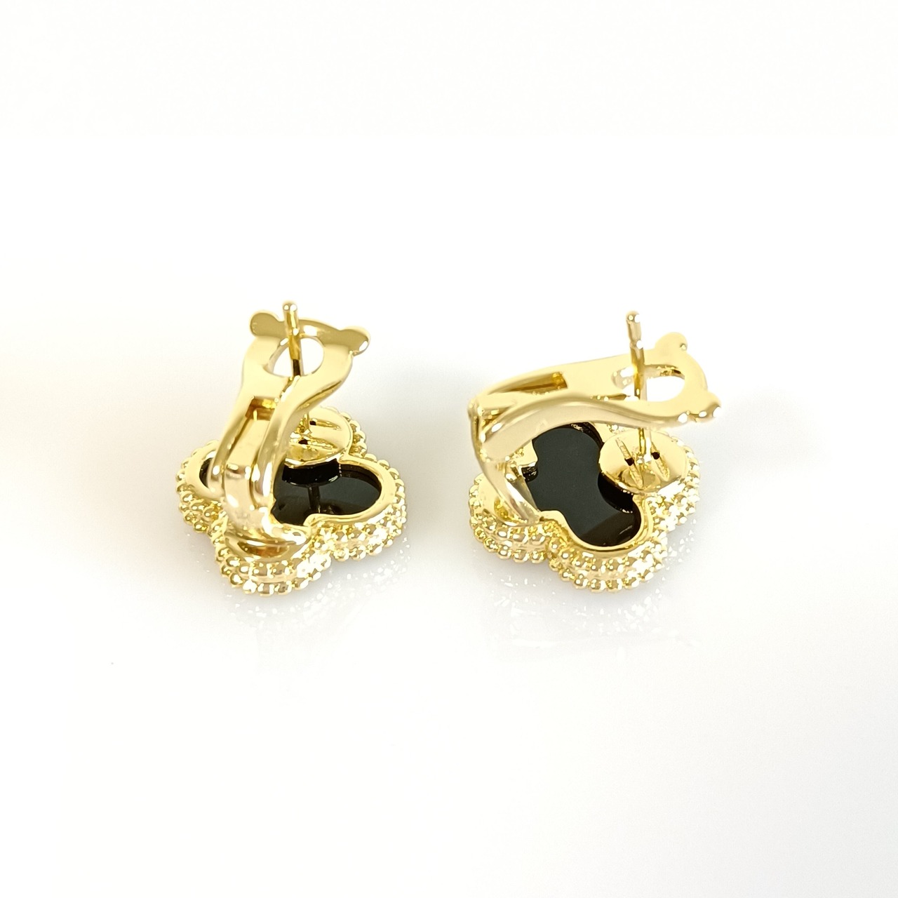 オニキス イエローゴールド クローバーピアス 15mm