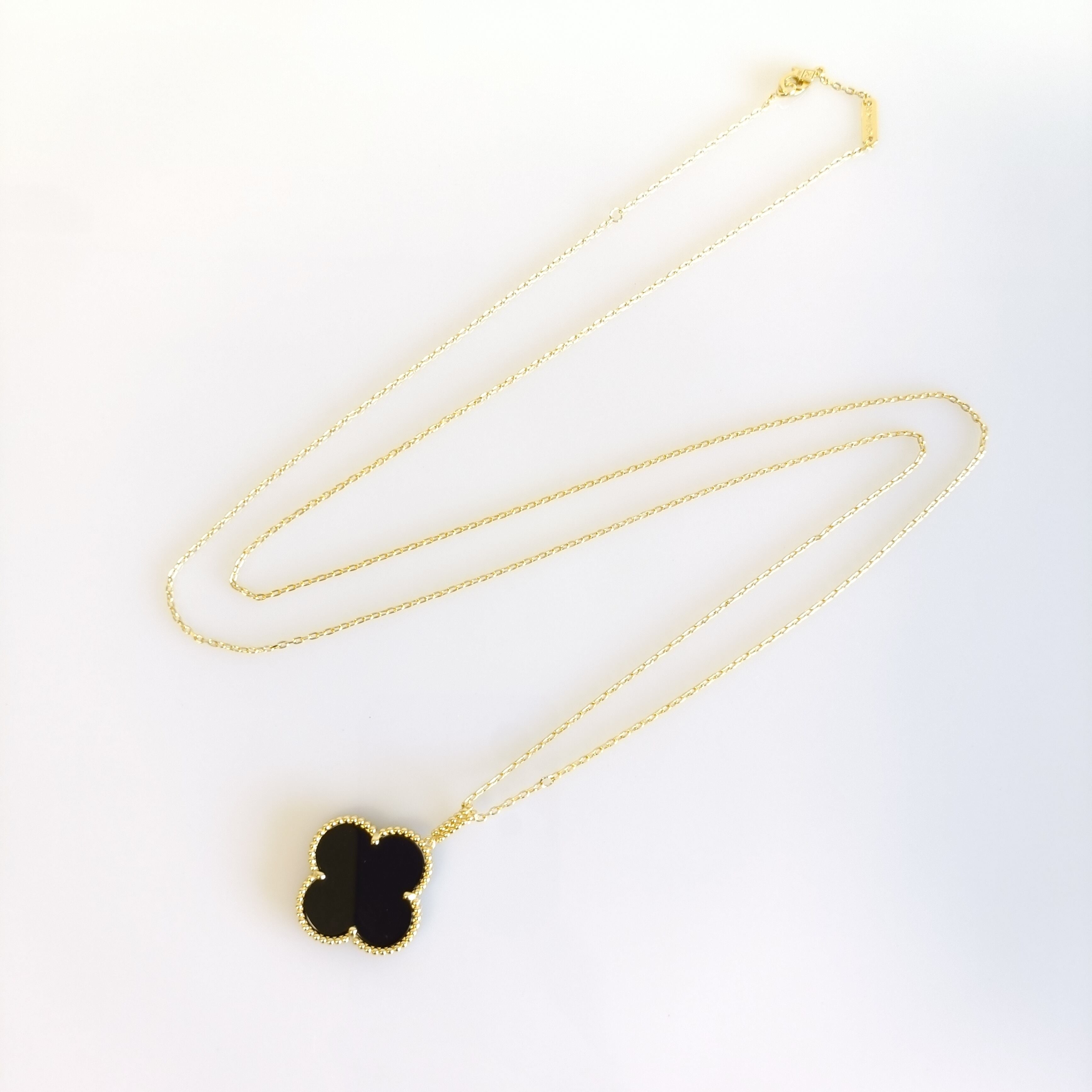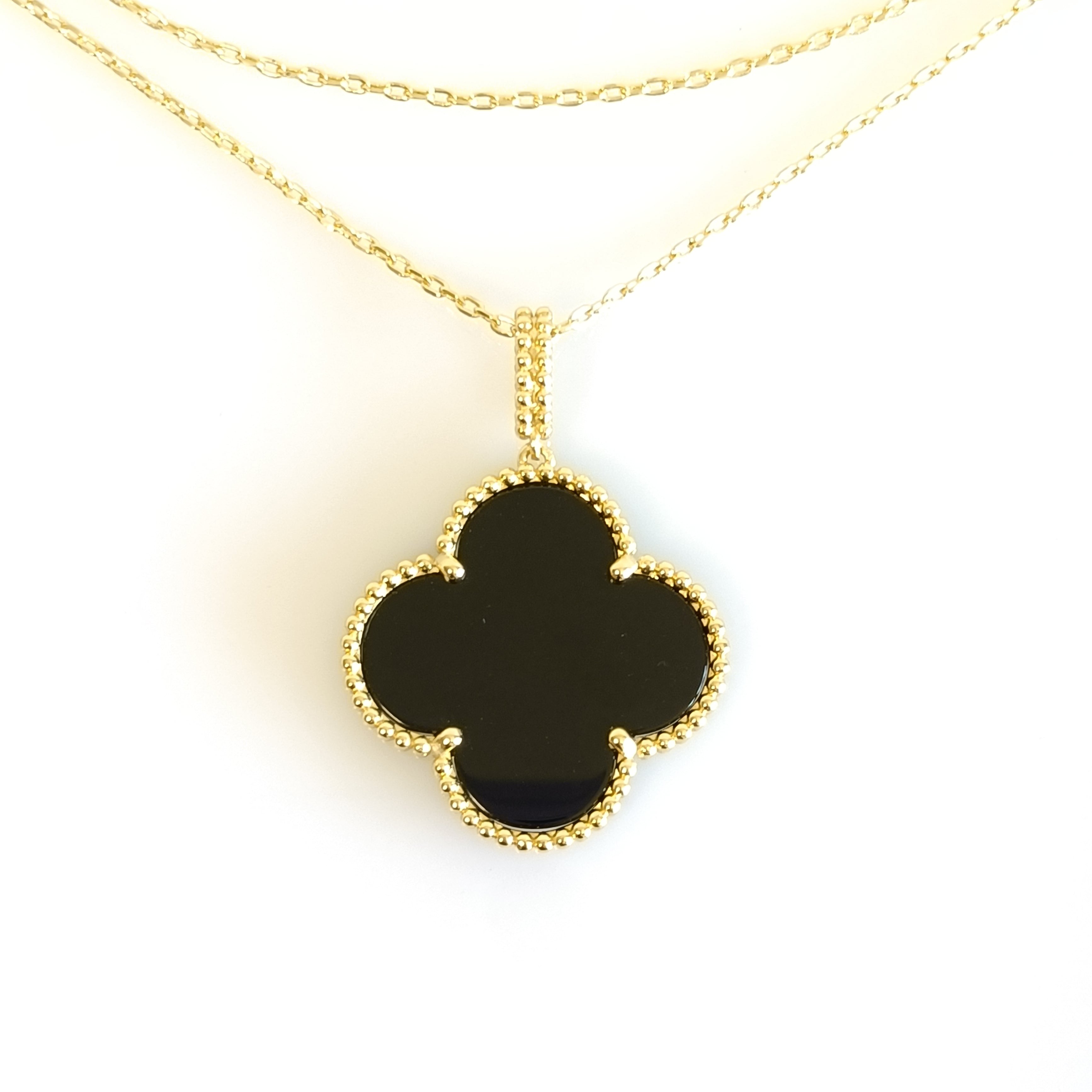 オニキス イエローゴールド クローバーロングネックレス 26mm