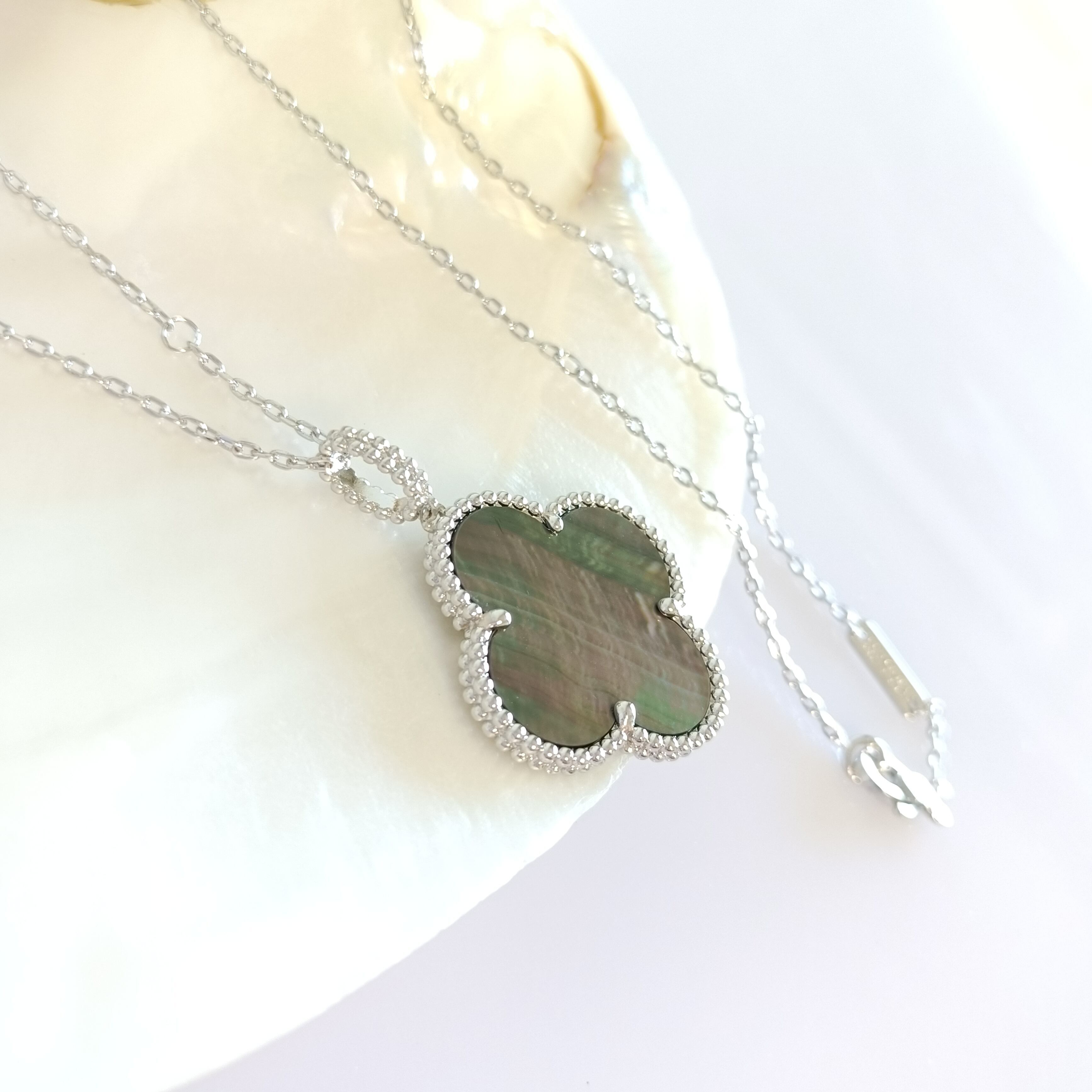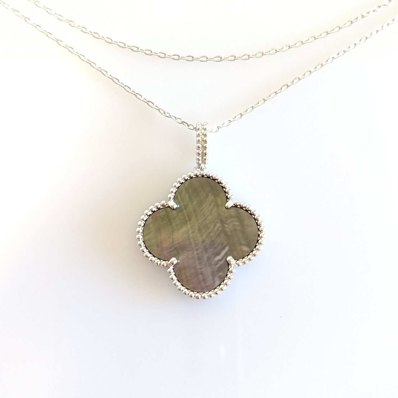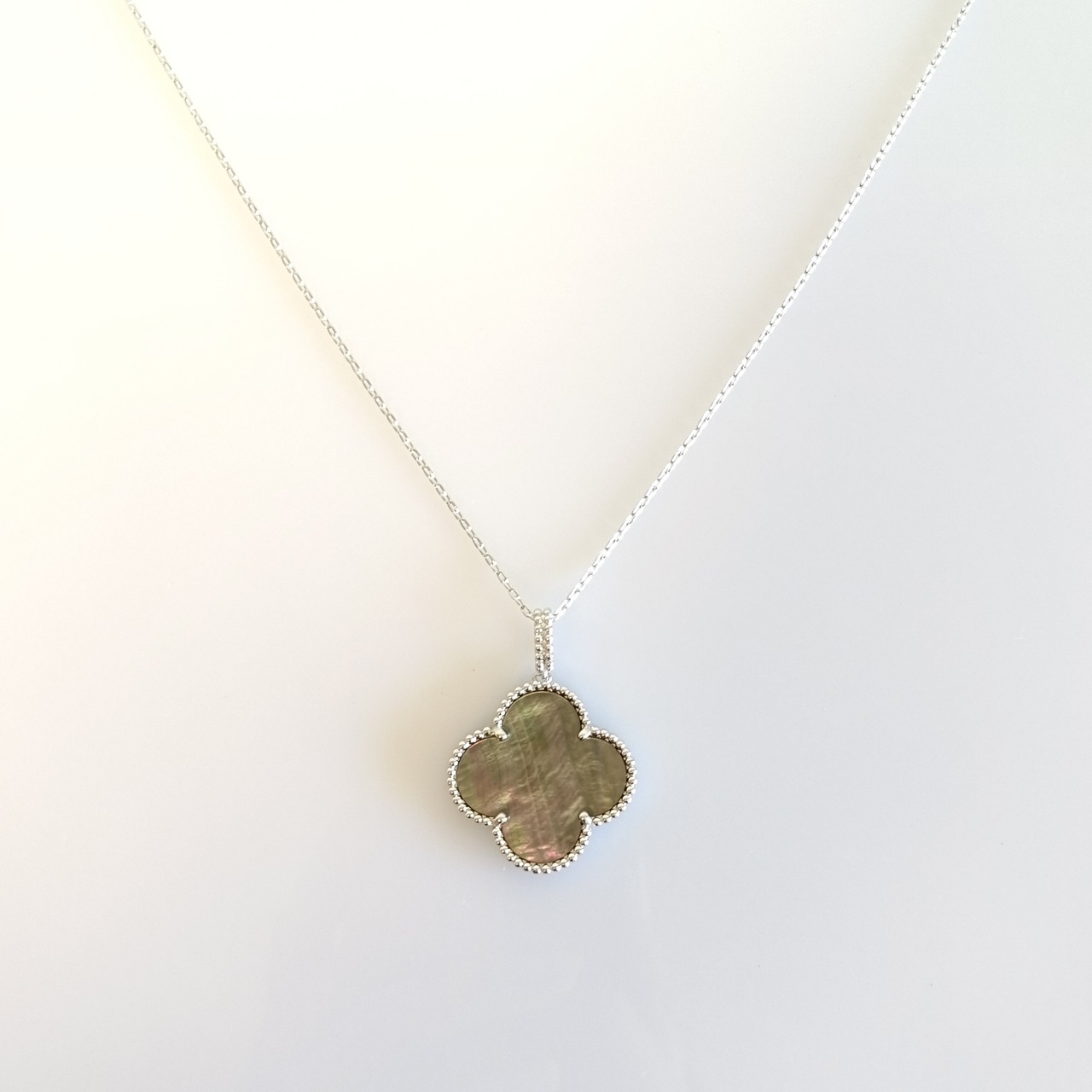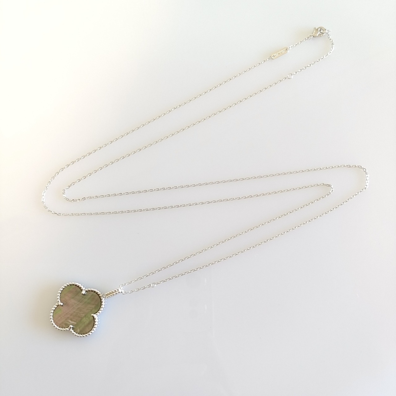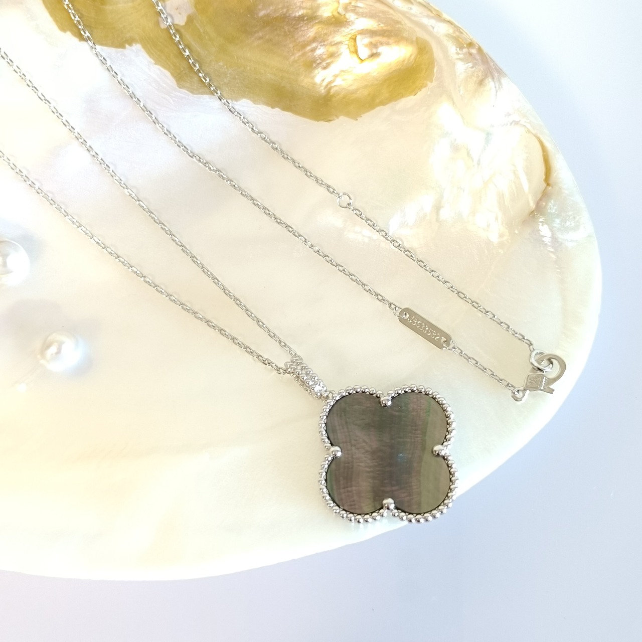 黒蝶貝 ホワイトゴールド クローバーロングネックレス 26mm