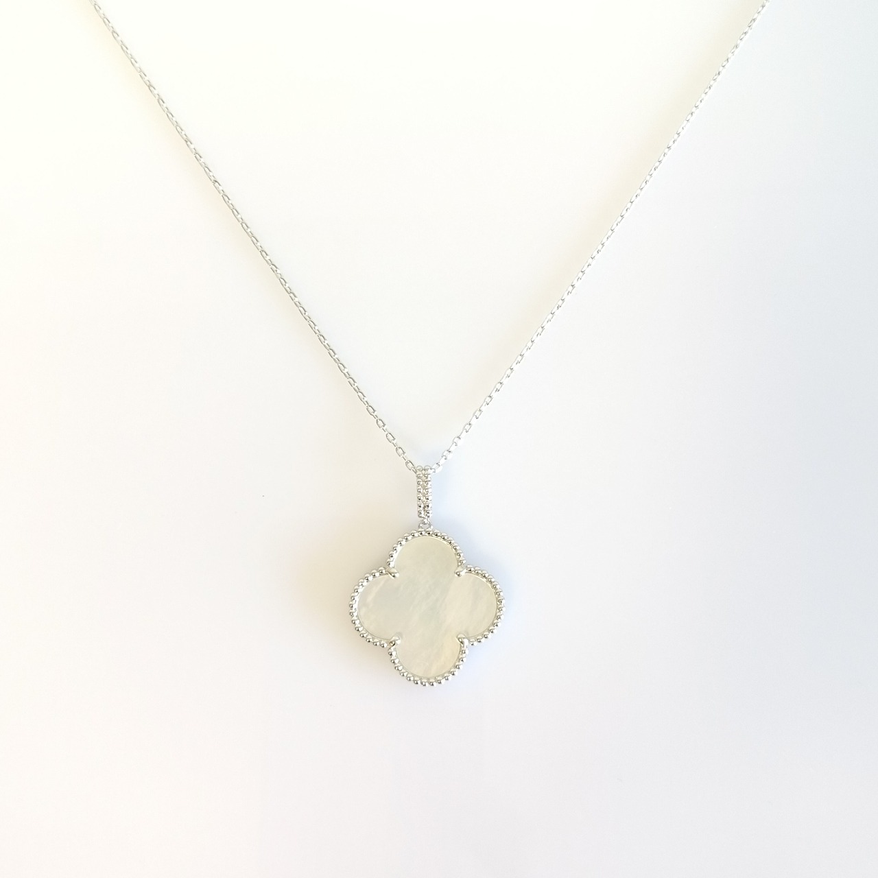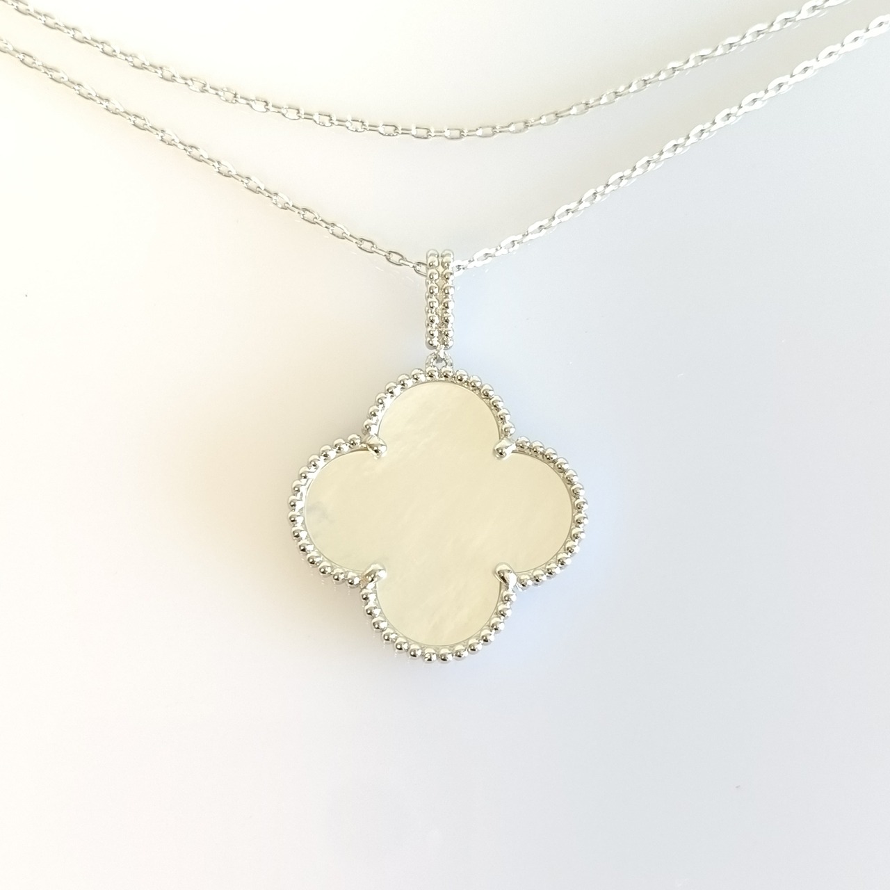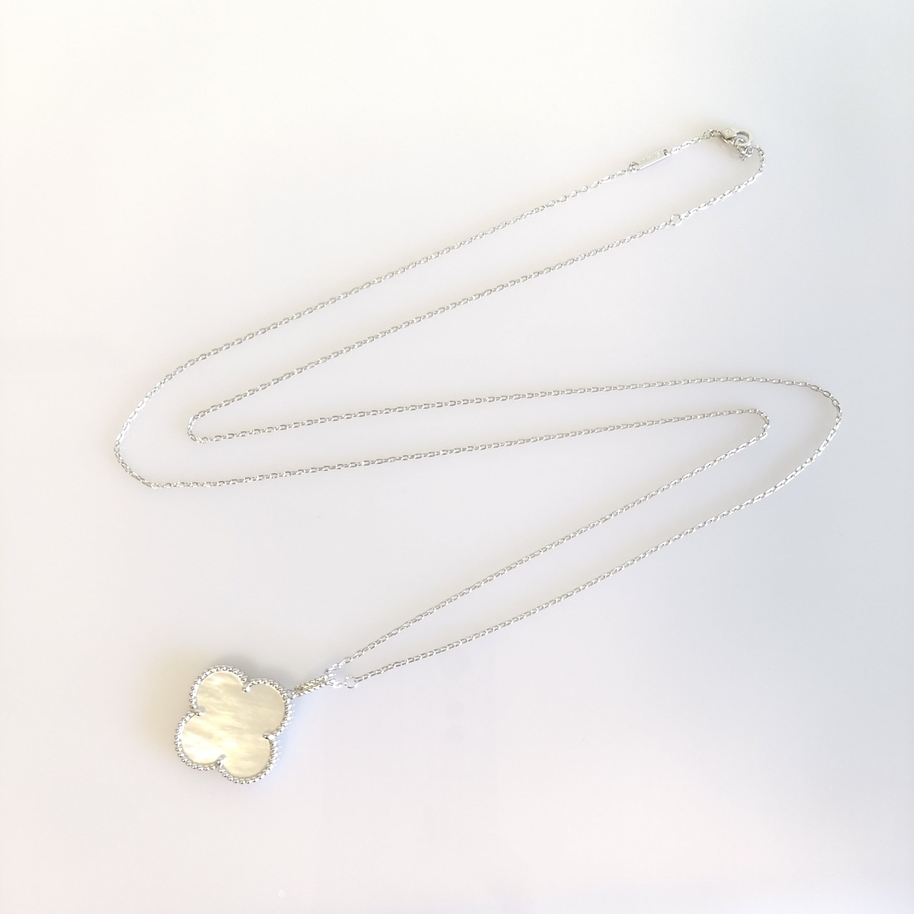 白蝶貝 ホワイトゴールド クローバーロングネックレス 26mm