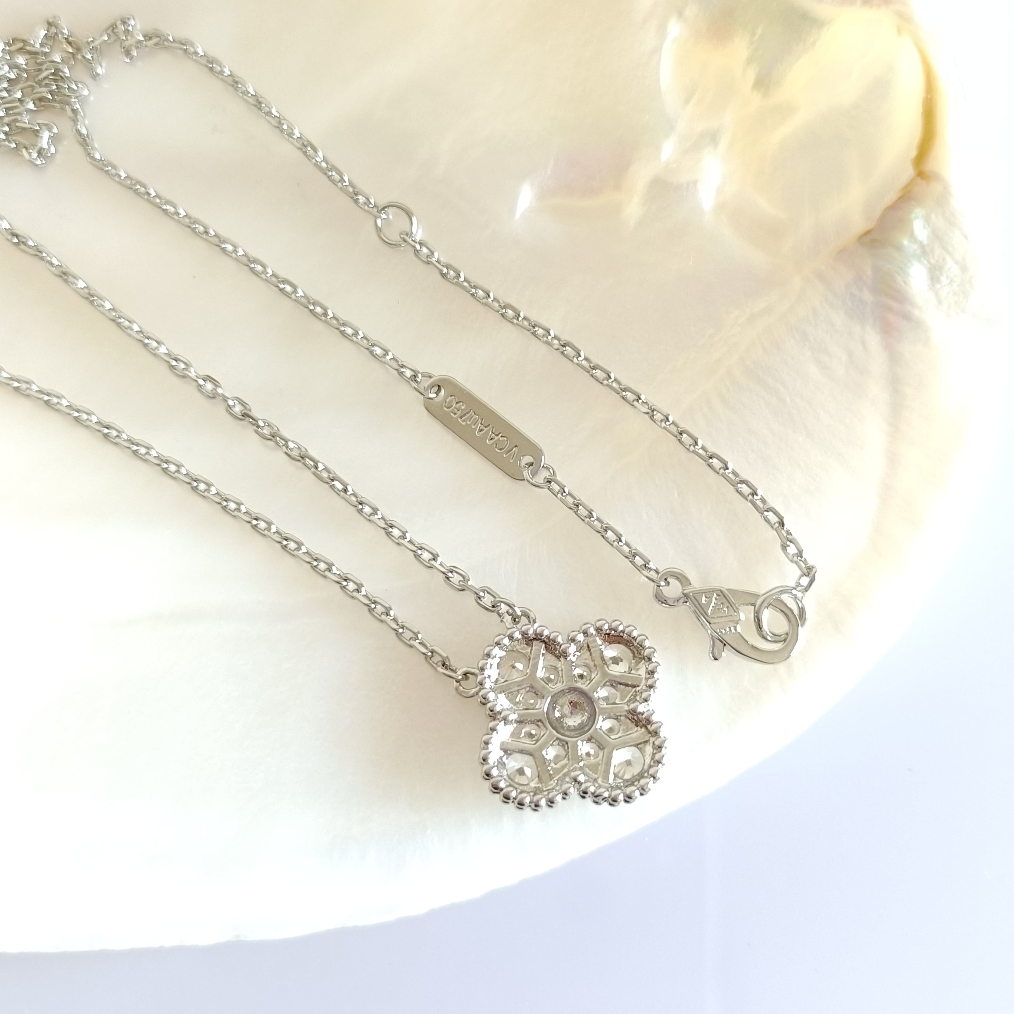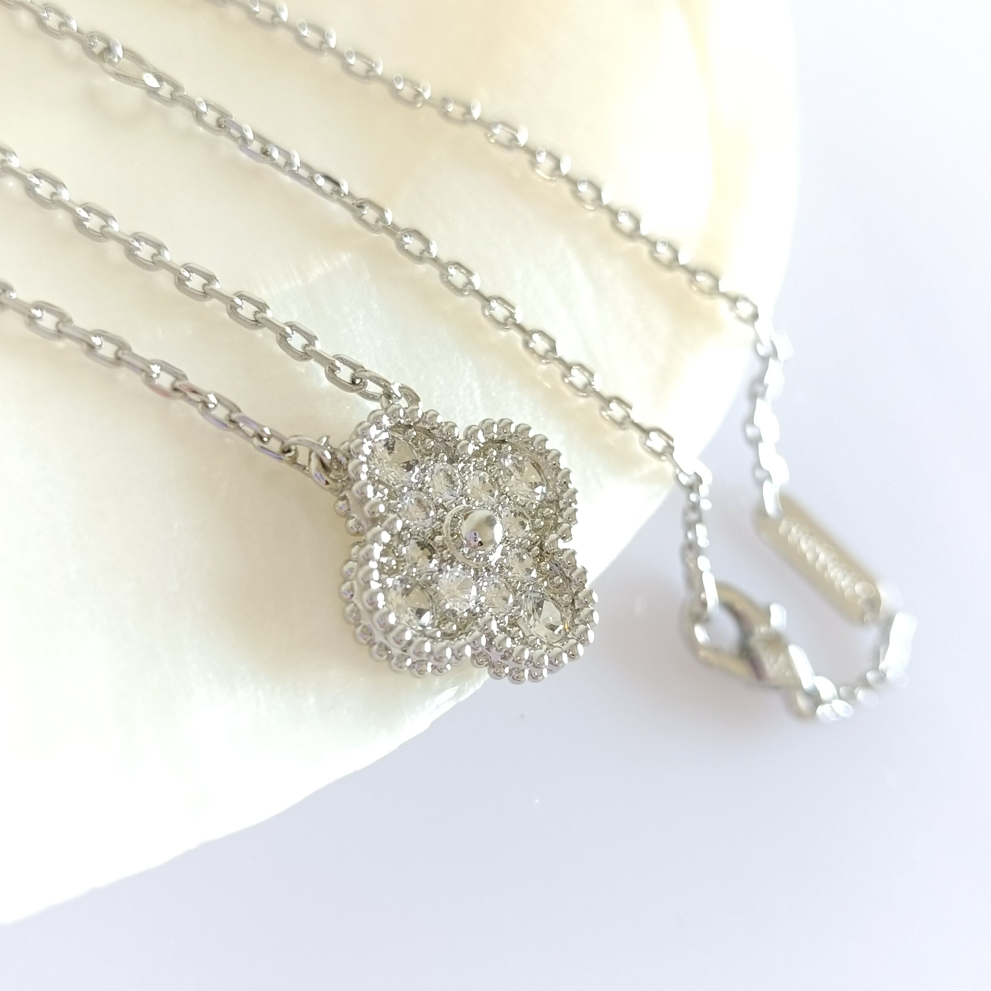 パヴェ ホワイトゴールド クローバーネックレス 15mm