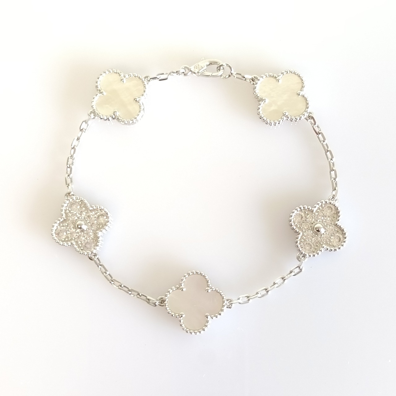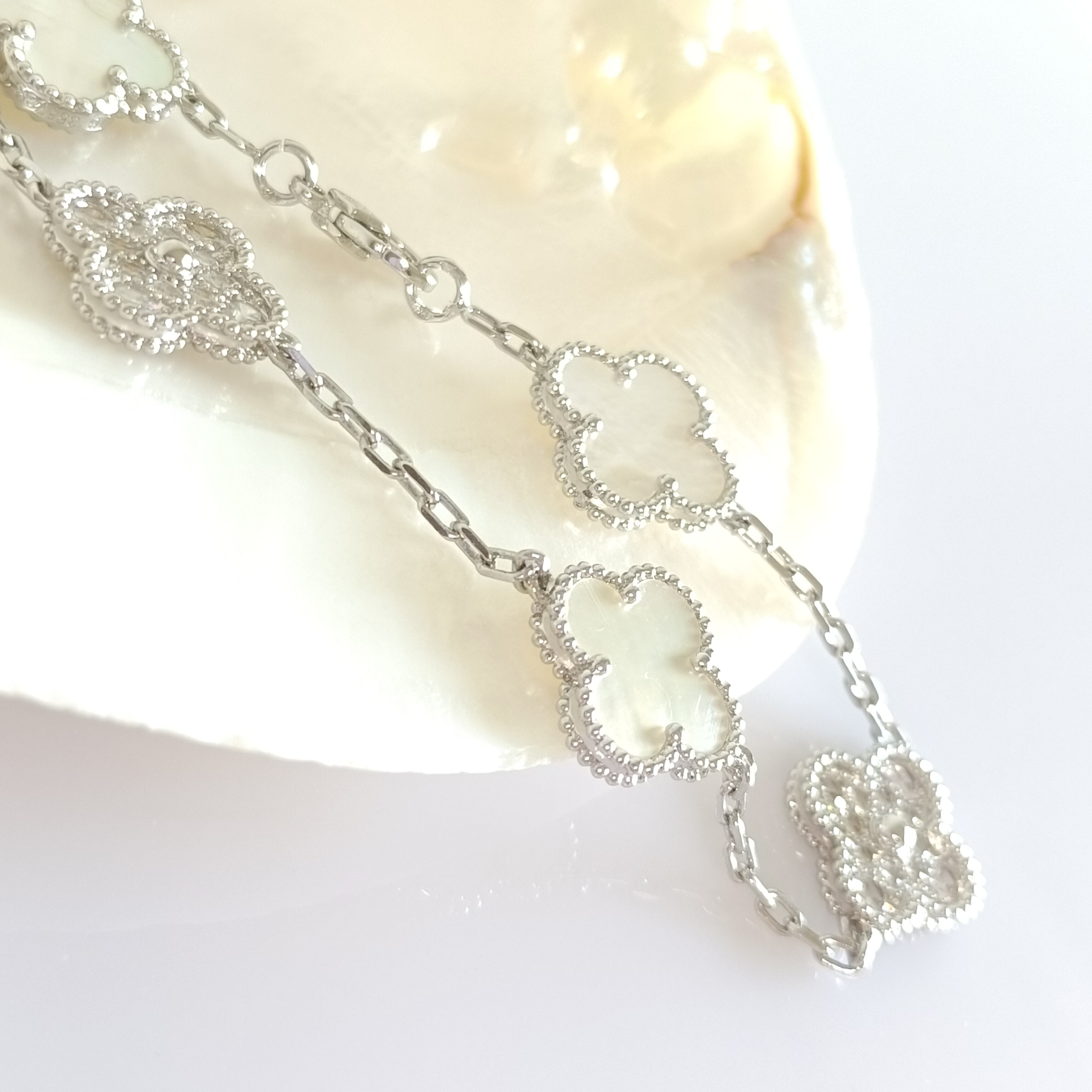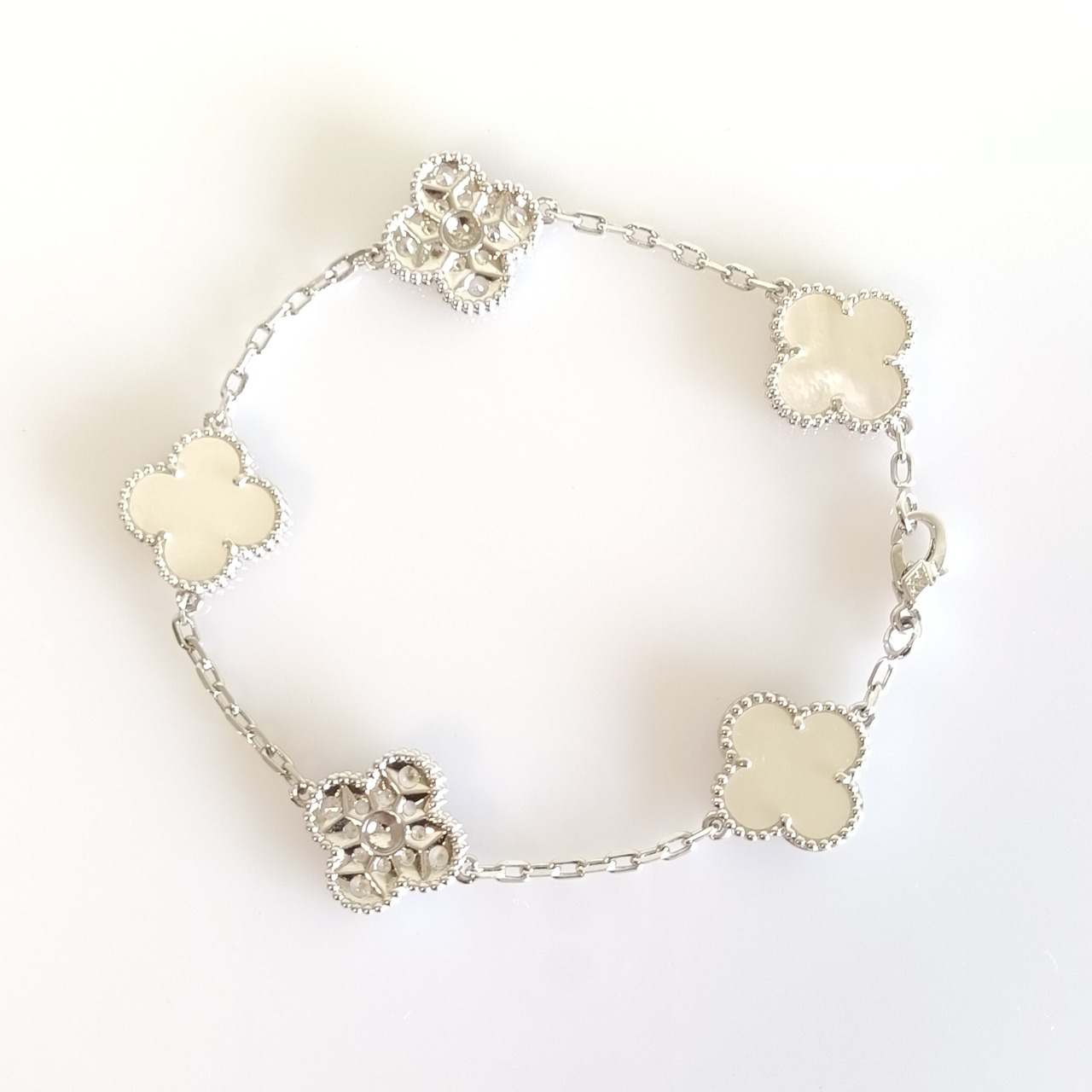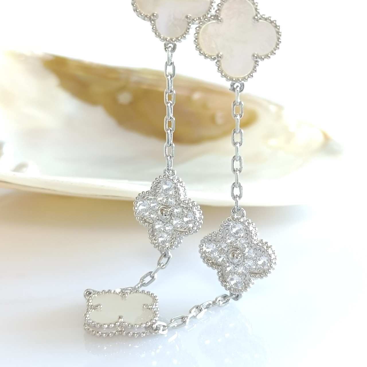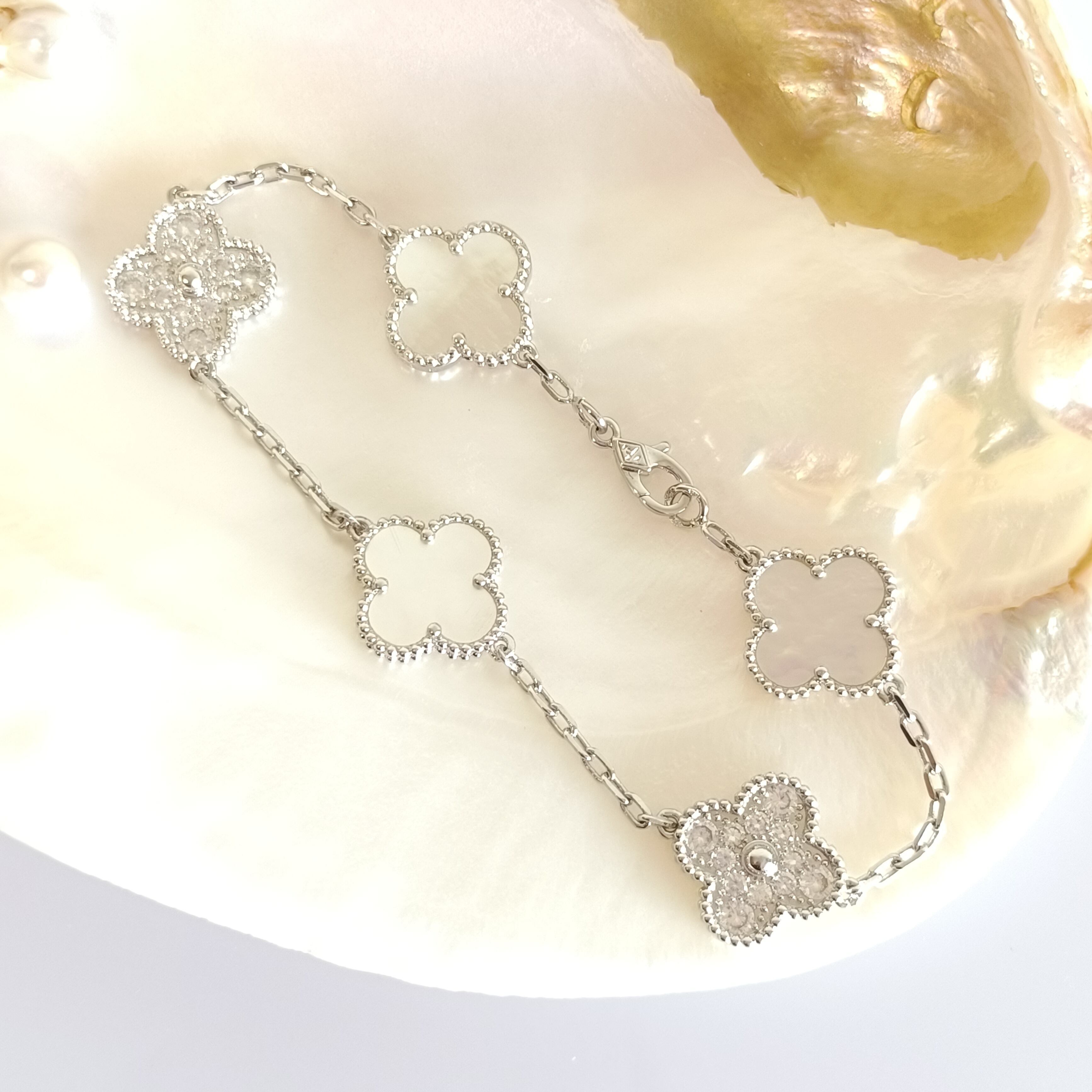 白蝶貝 パヴェ ホワイトゴールド クローバーブレスレット