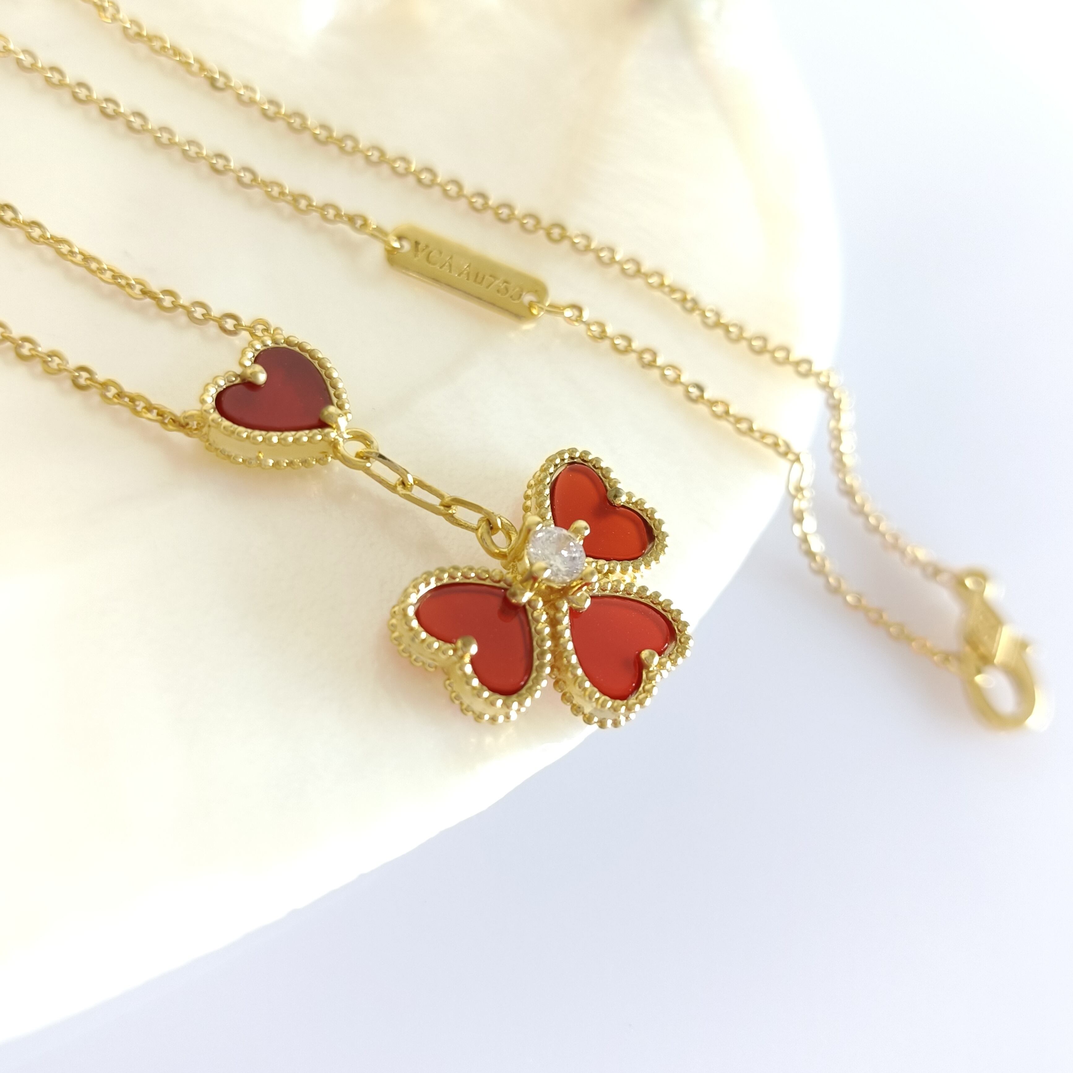カーネリアン イエローゴールド 4ハートネックレス 19×29mm