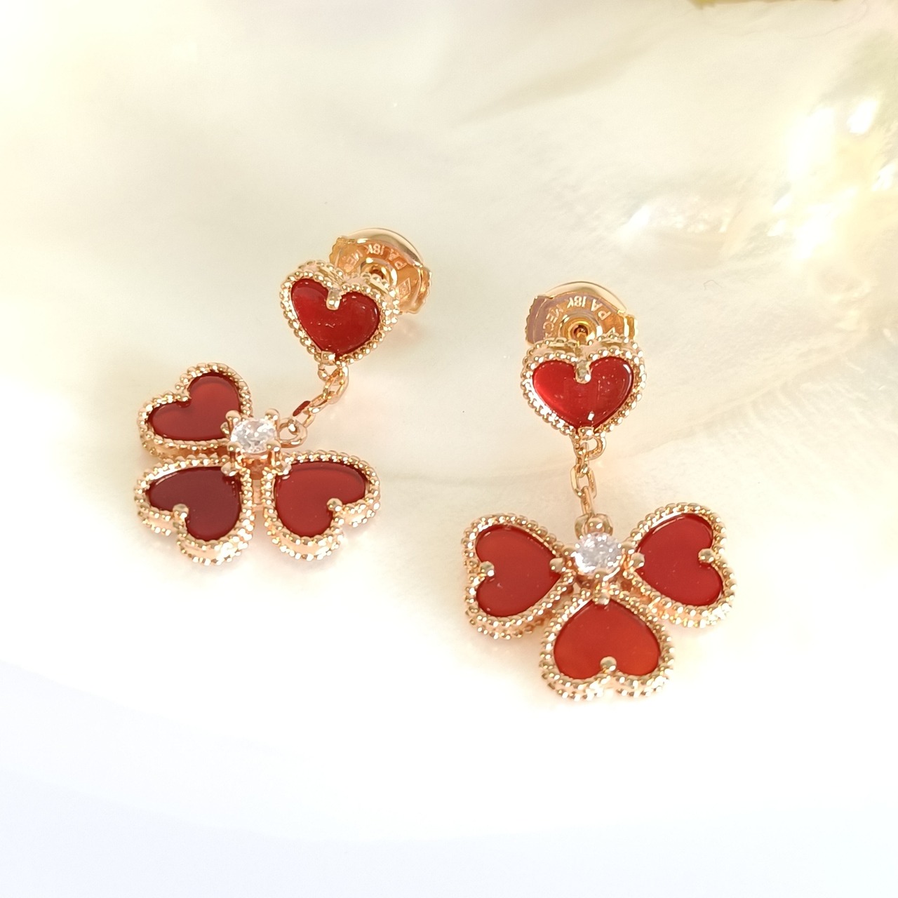 カーネリアン ローズゴールド 4ハートピアス 19×29mm