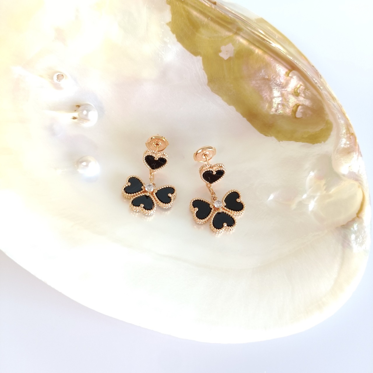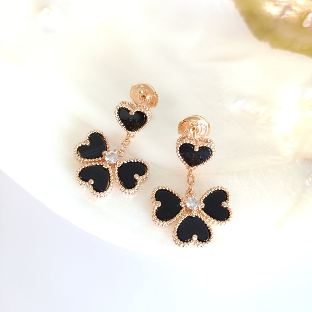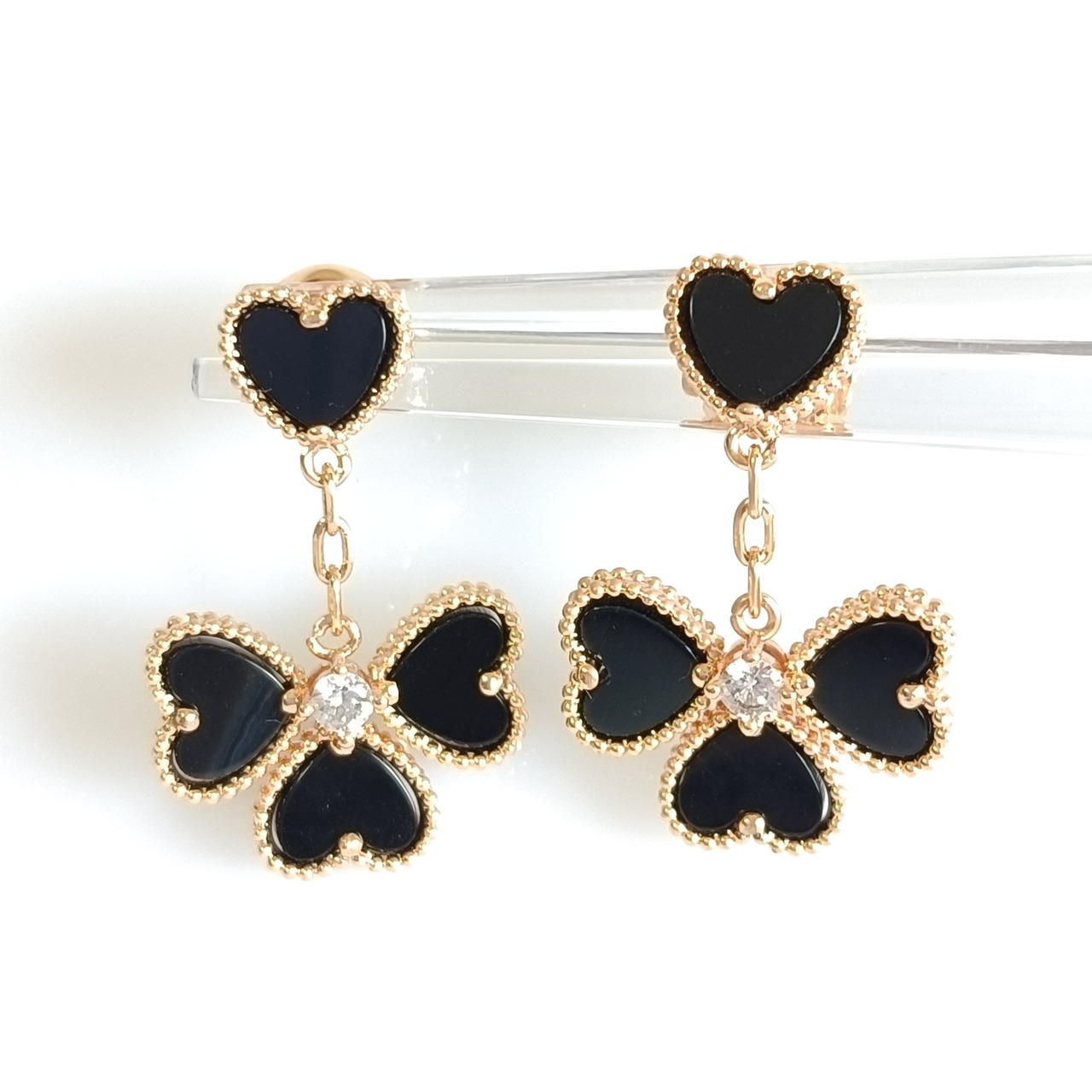 オニキス ローズゴールド 4ハートピアス 19×29mm