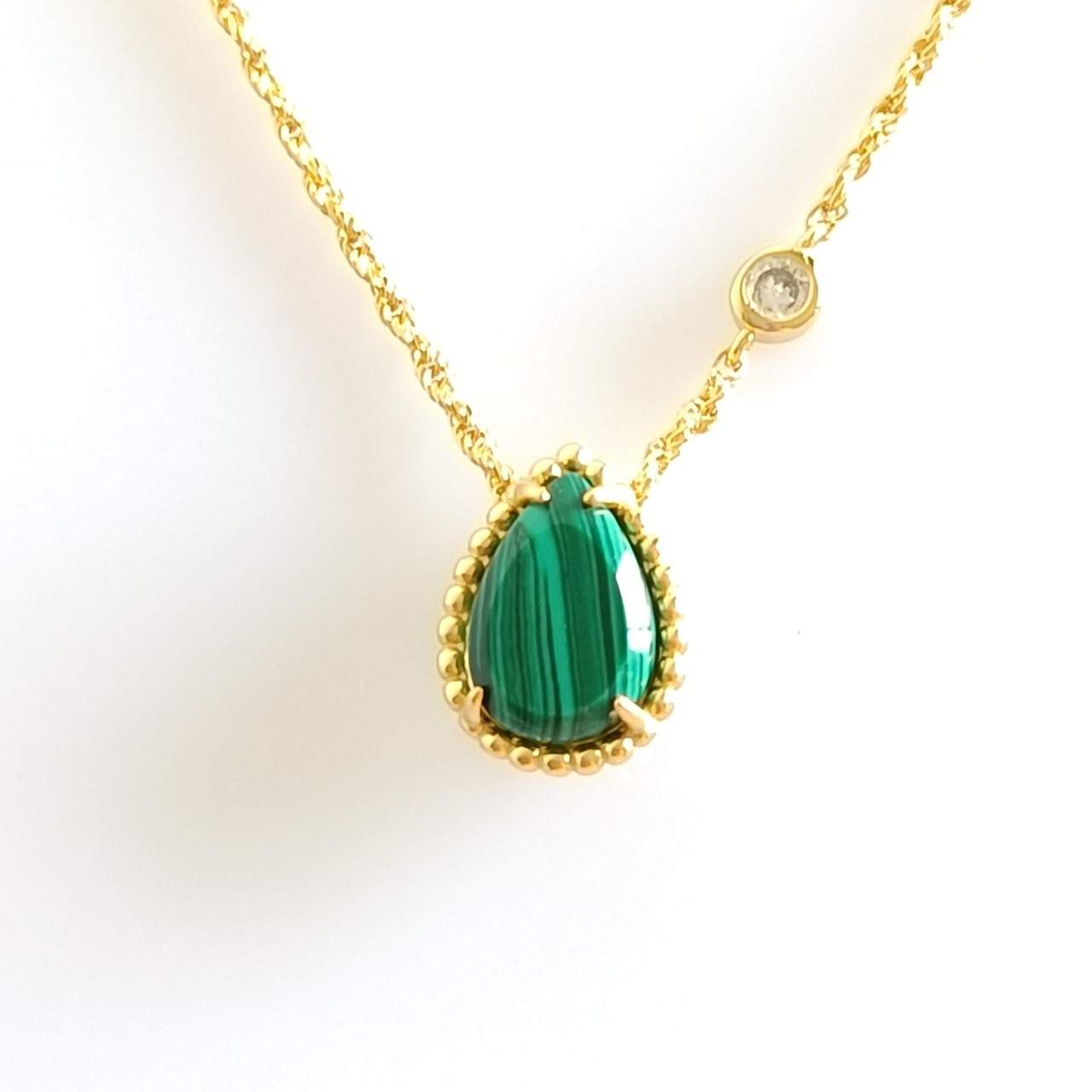 マラカイト イエローゴールド セルパンボエム ネックレス 8×12mm