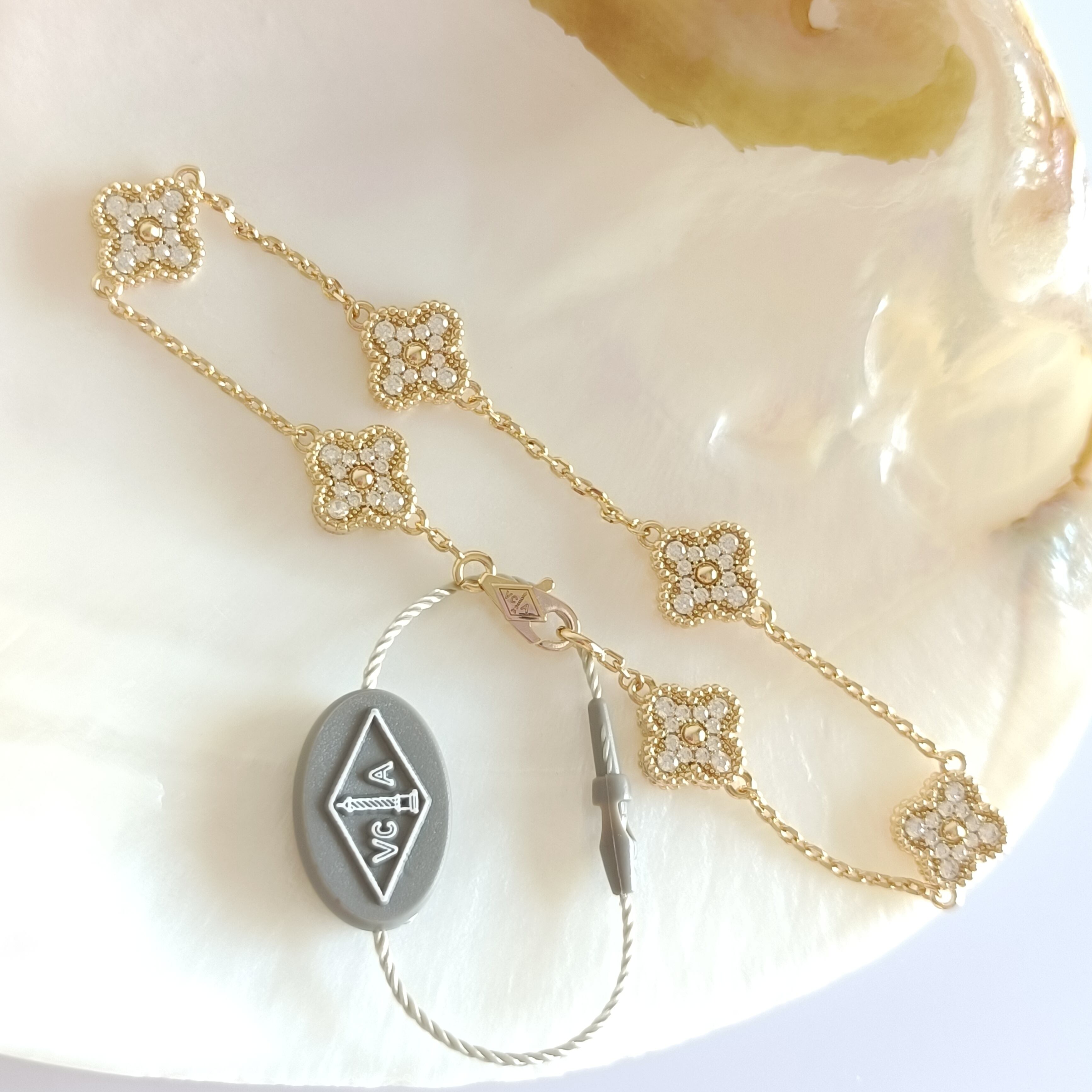 パヴェ イエローゴールド ミニクローバーブレスレット 9.5mm6p