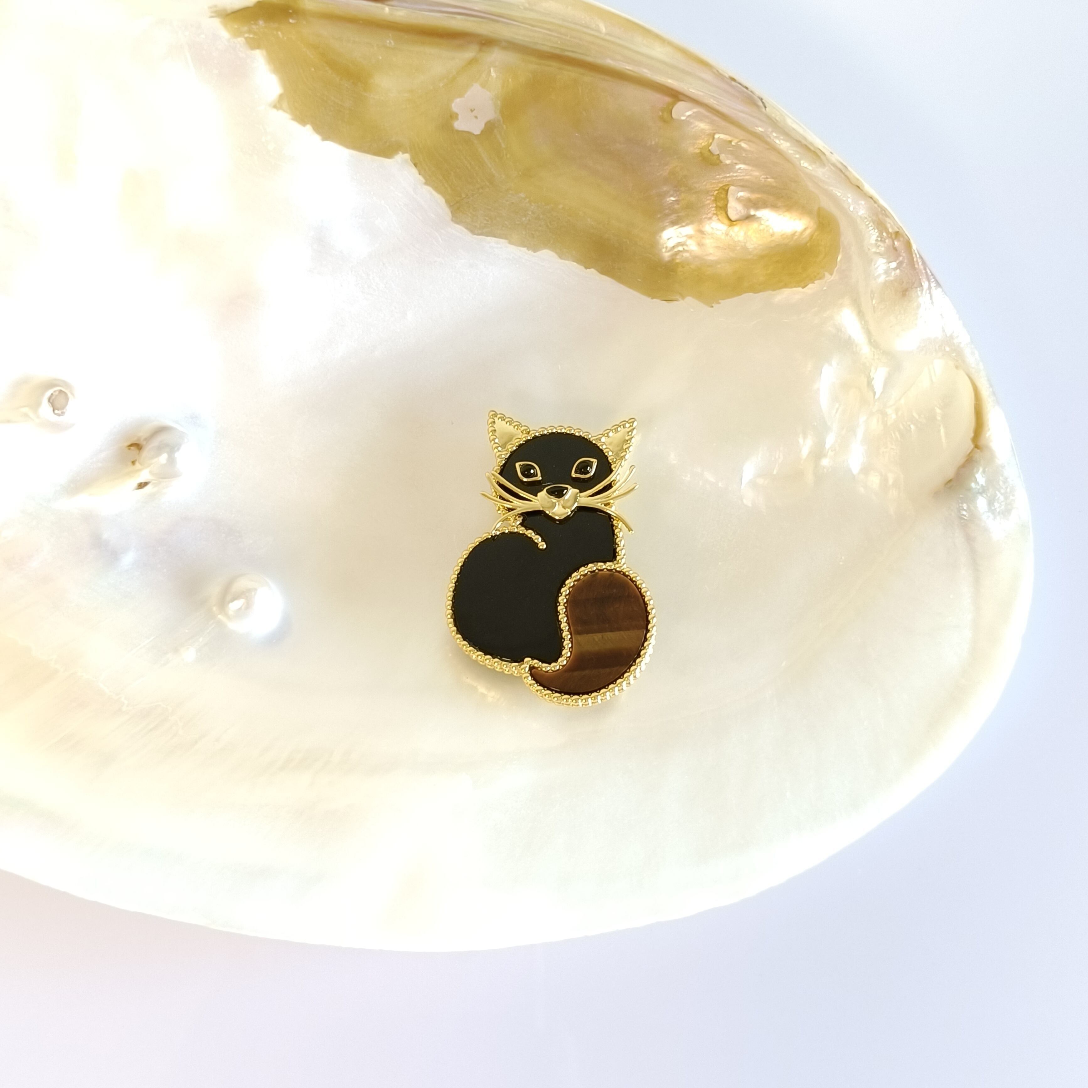 キャット ブローチ オニキス イエローゴールド