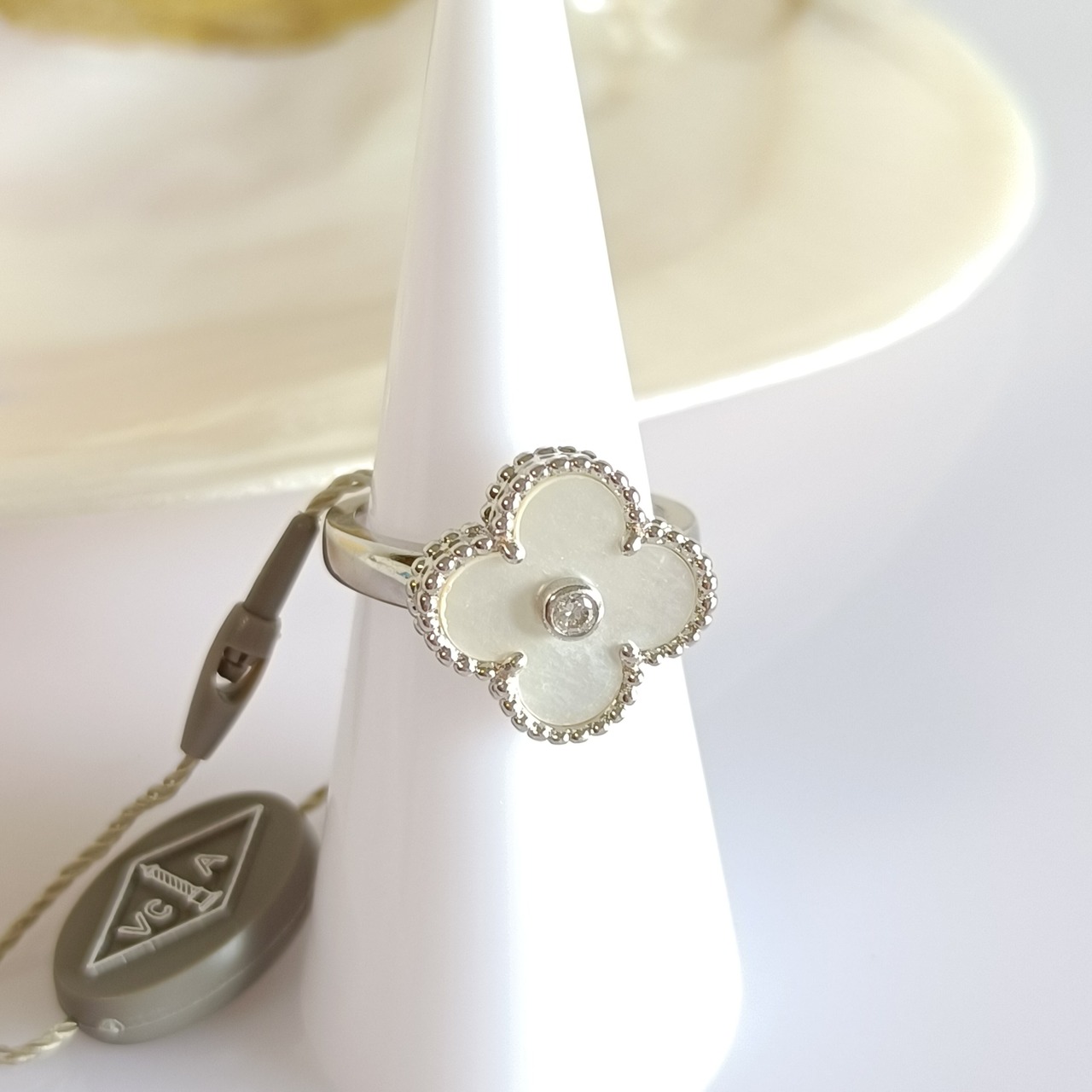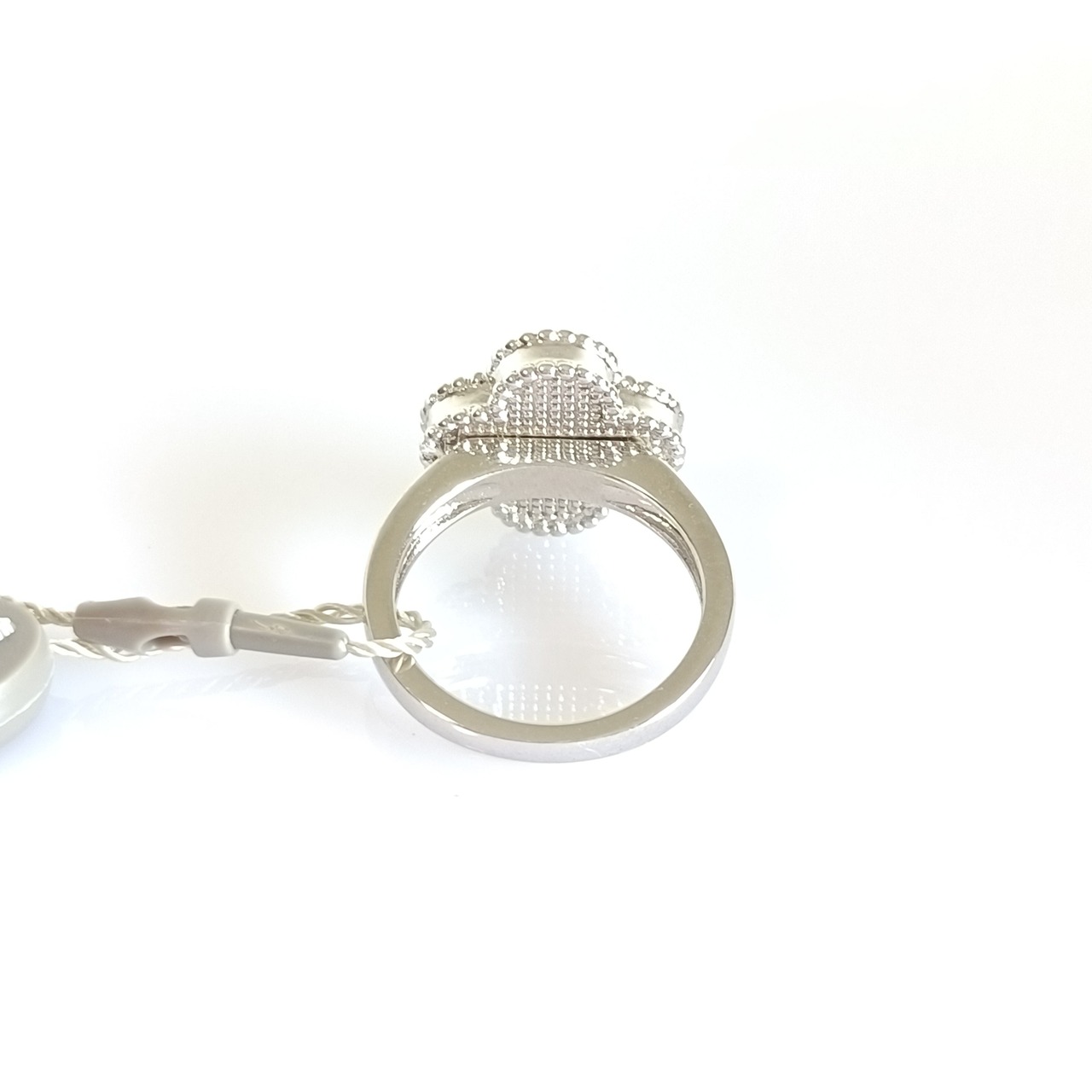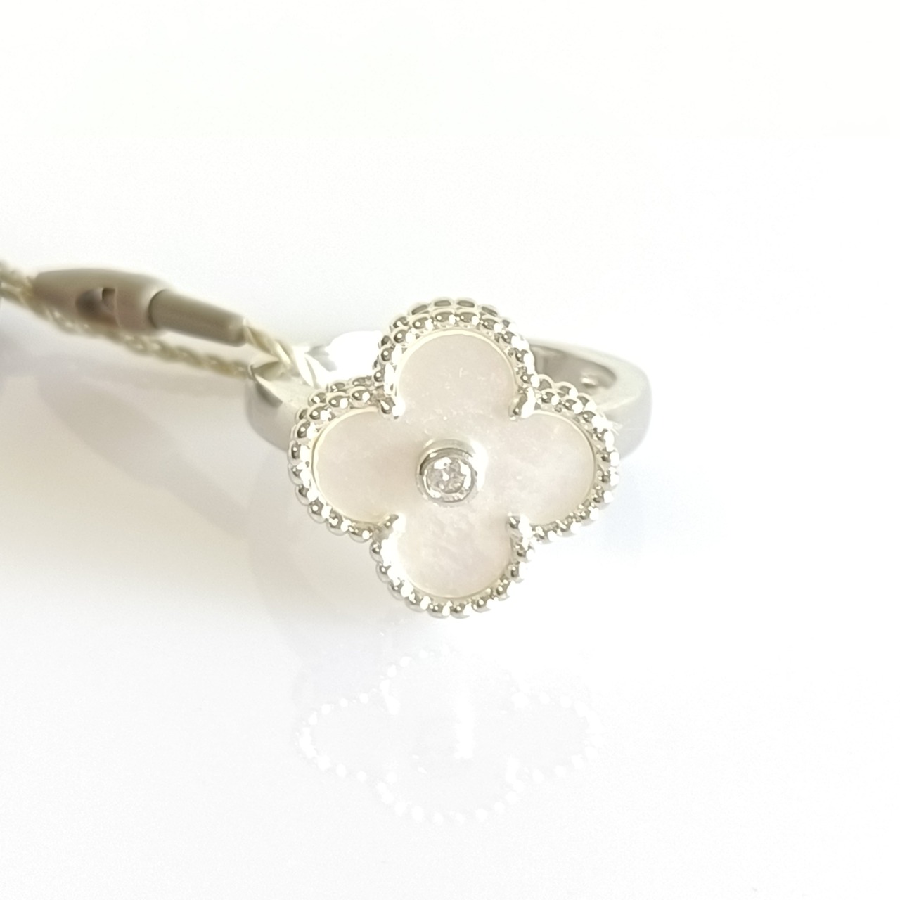 11号 白蝶貝 ダイヤ ホワイトゴールド クローバーリング 15mm