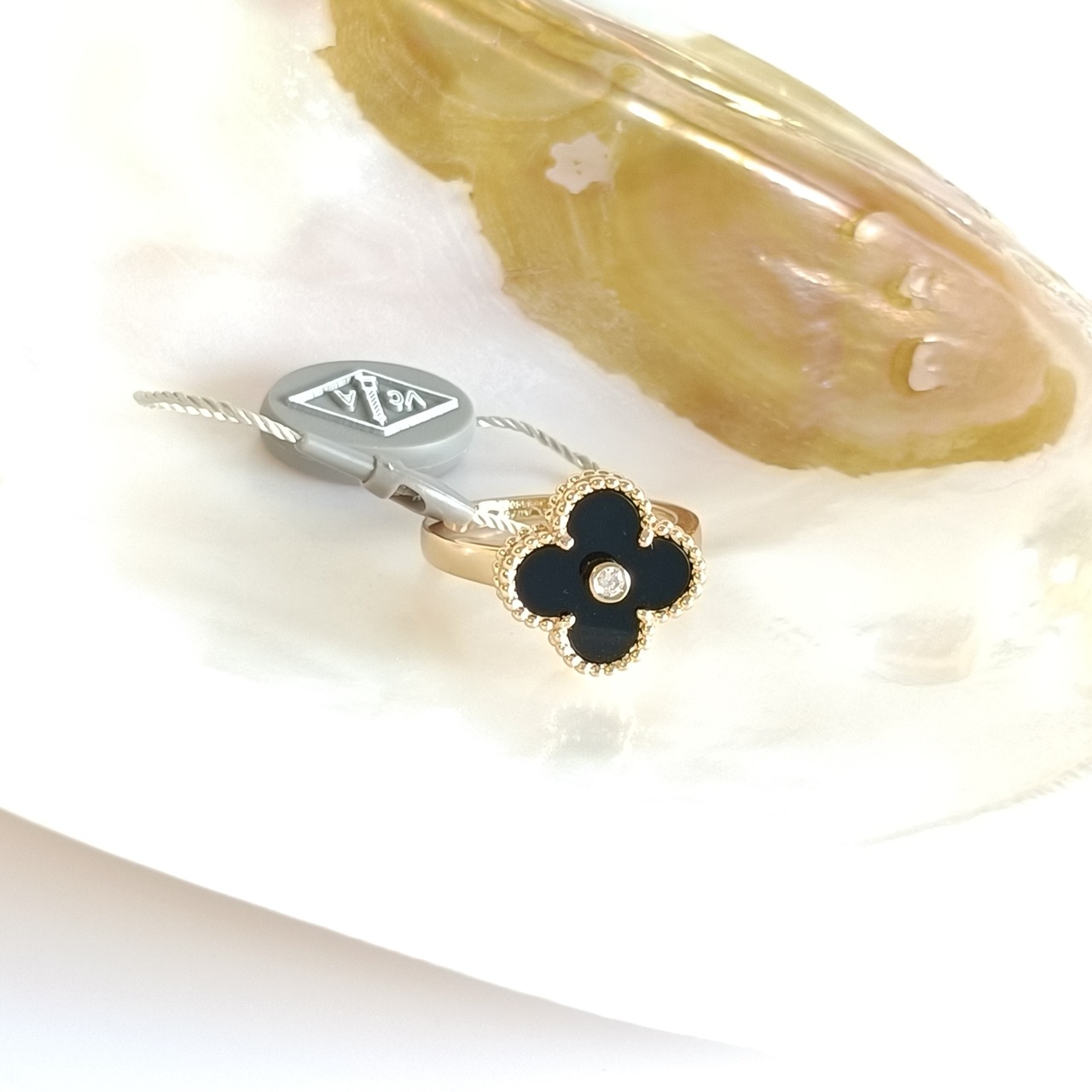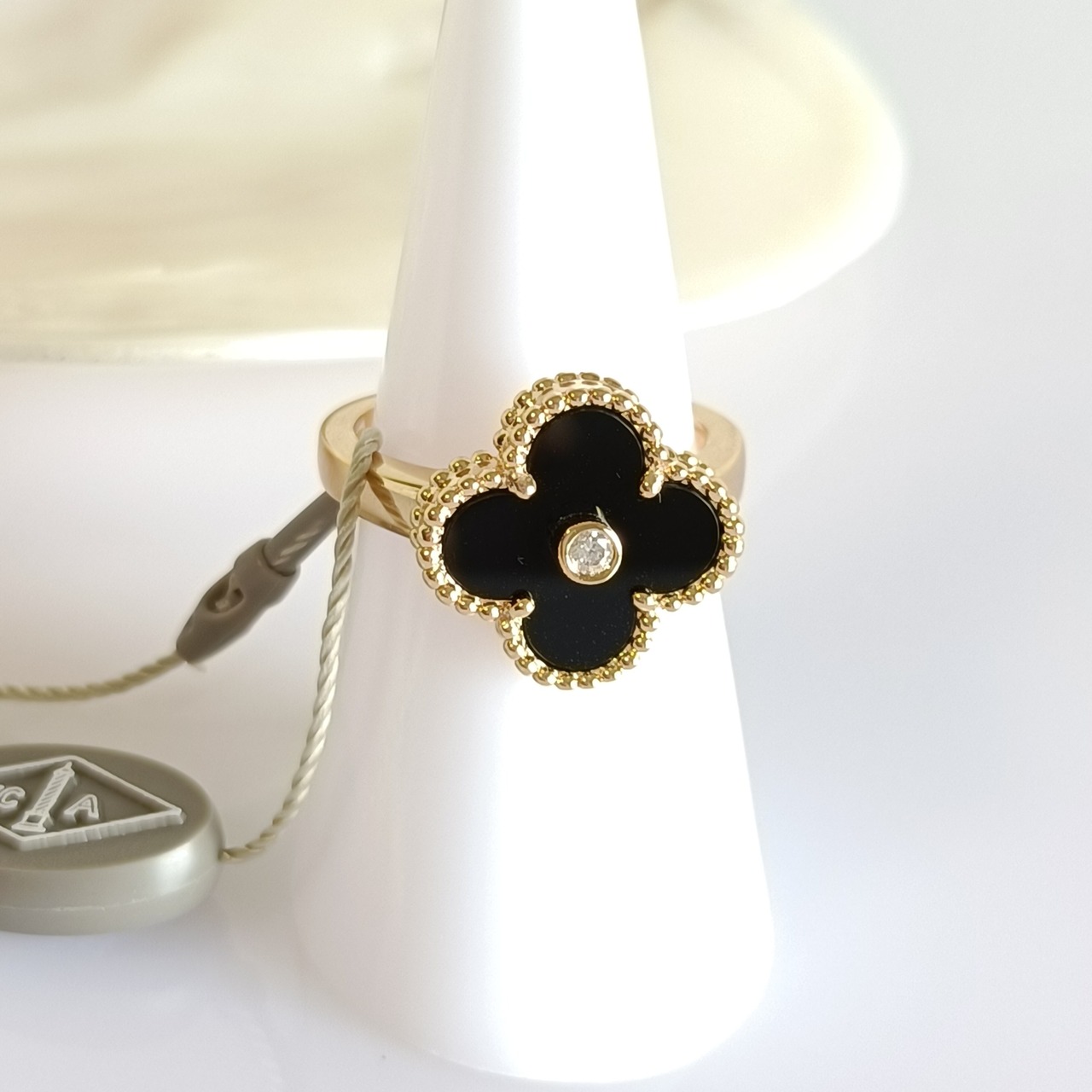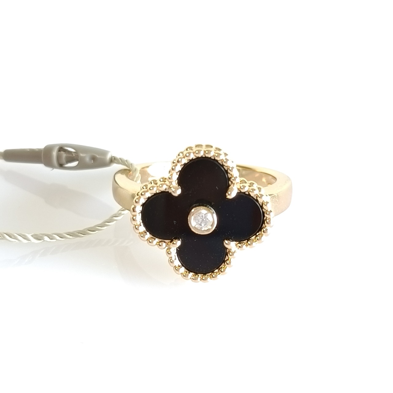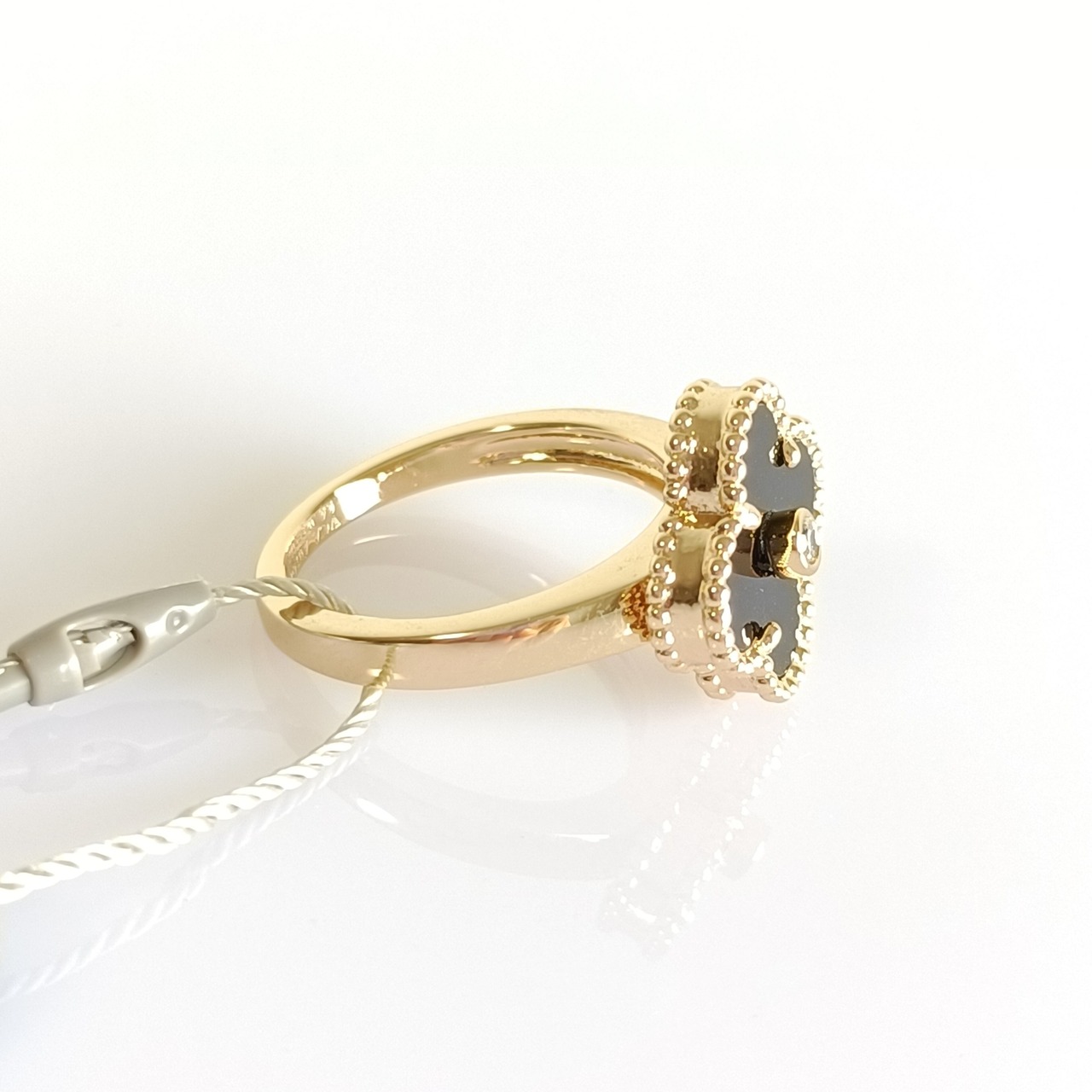 13号 オニキス ダイヤ イエローゴールド クローバーリング 15mm