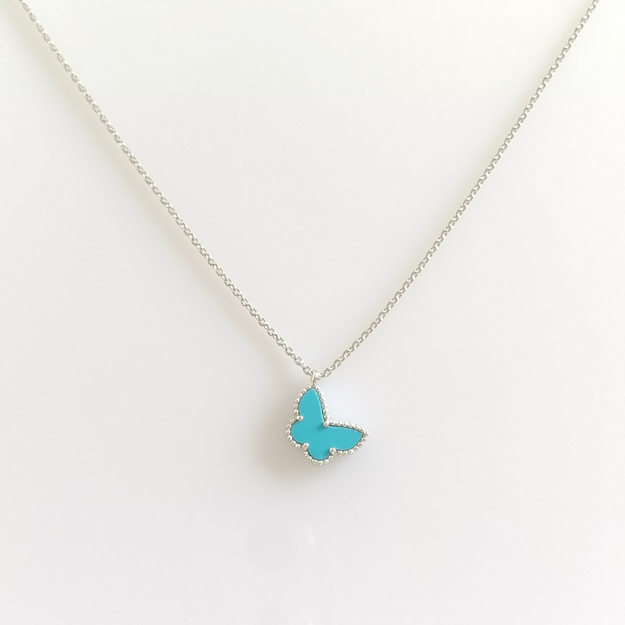 ターコイズ ホワイトゴールド スウィートパピヨンネックレス
