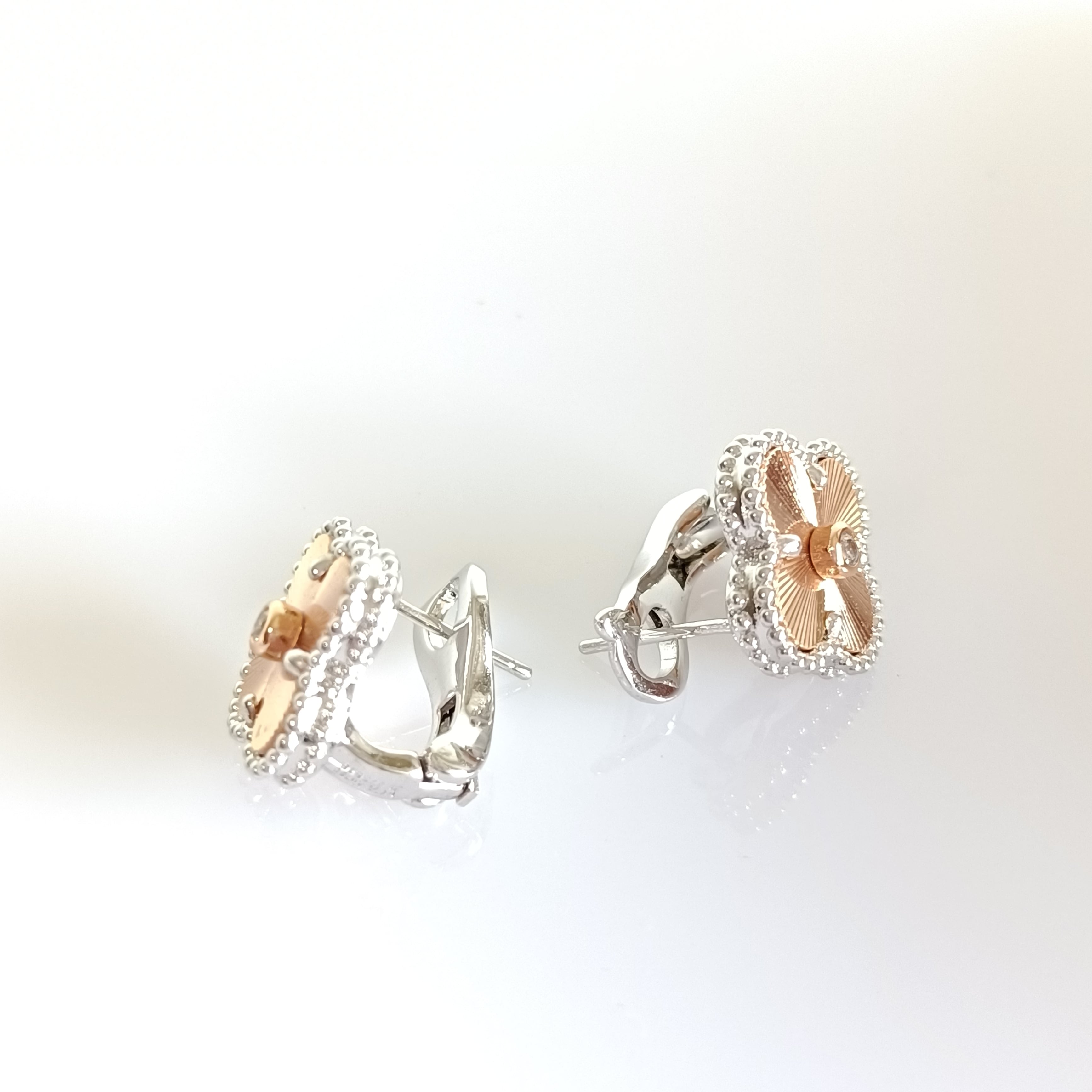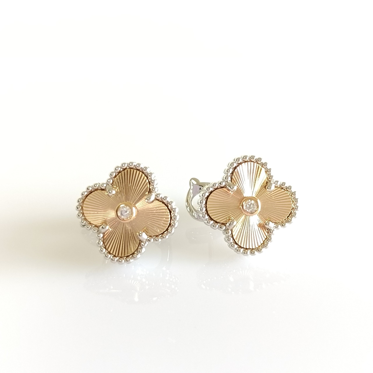 ギヨシェ ダイヤ ローズゴールド ホワイトゴールド クローバーピアス 15mm
