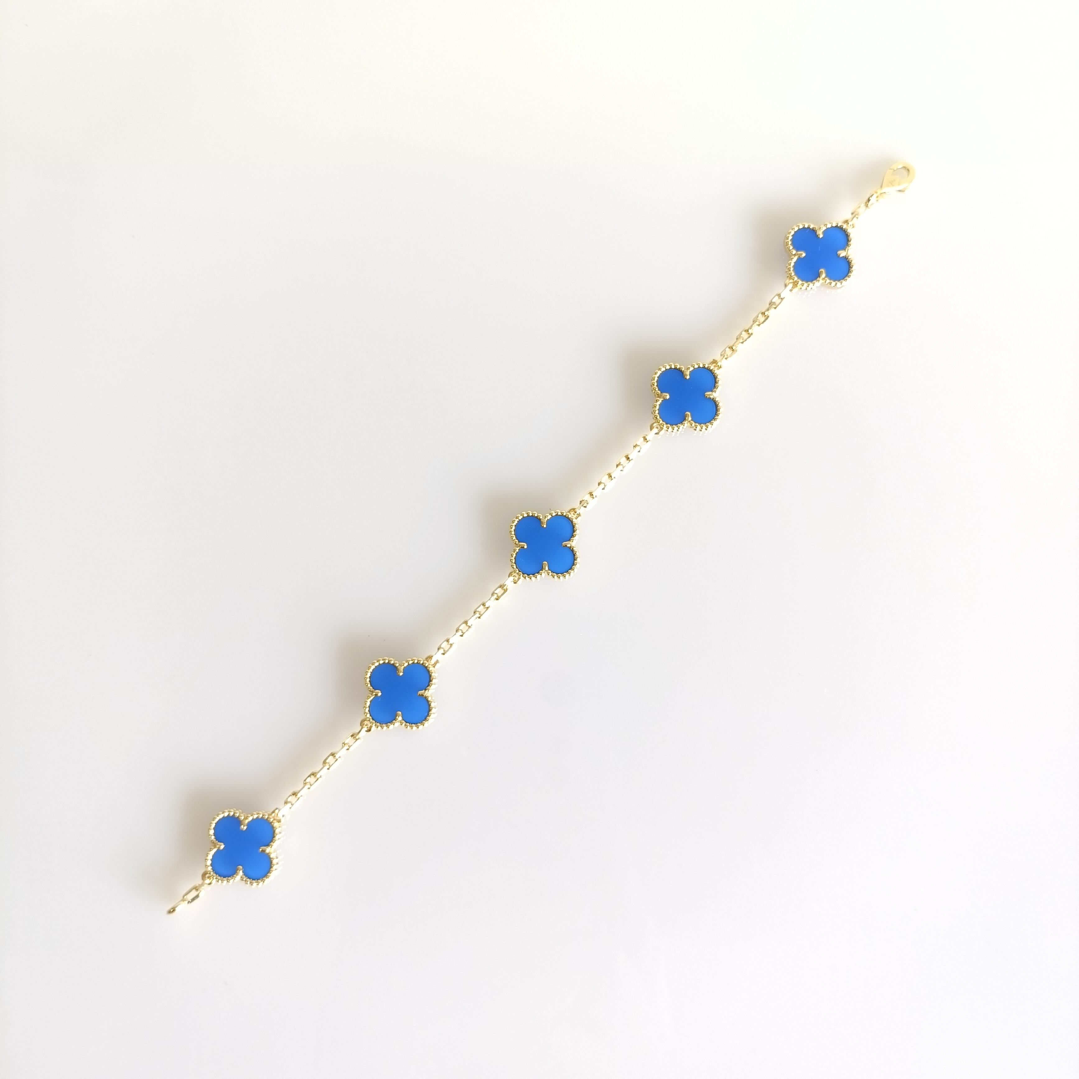 ブルーアゲート イエローゴールド クローバーブレスレット