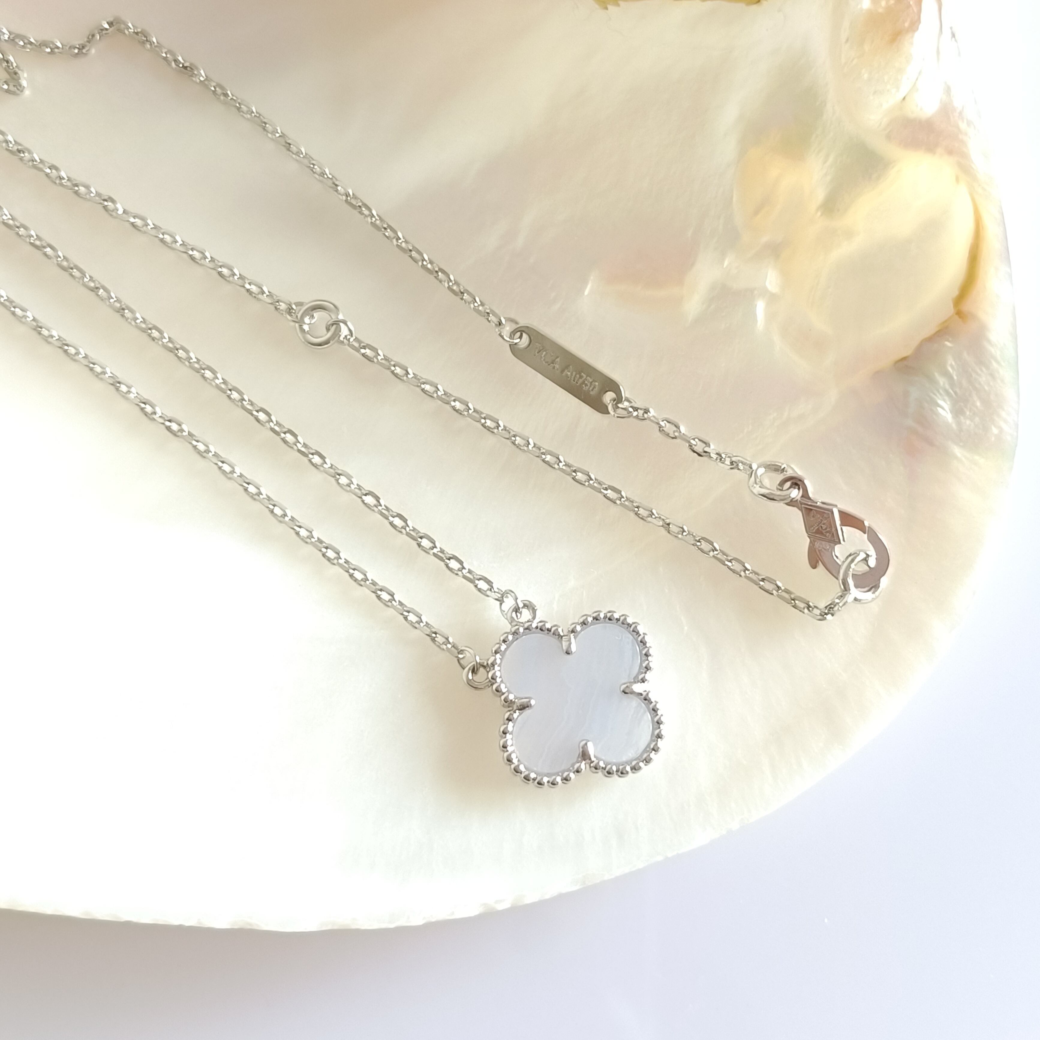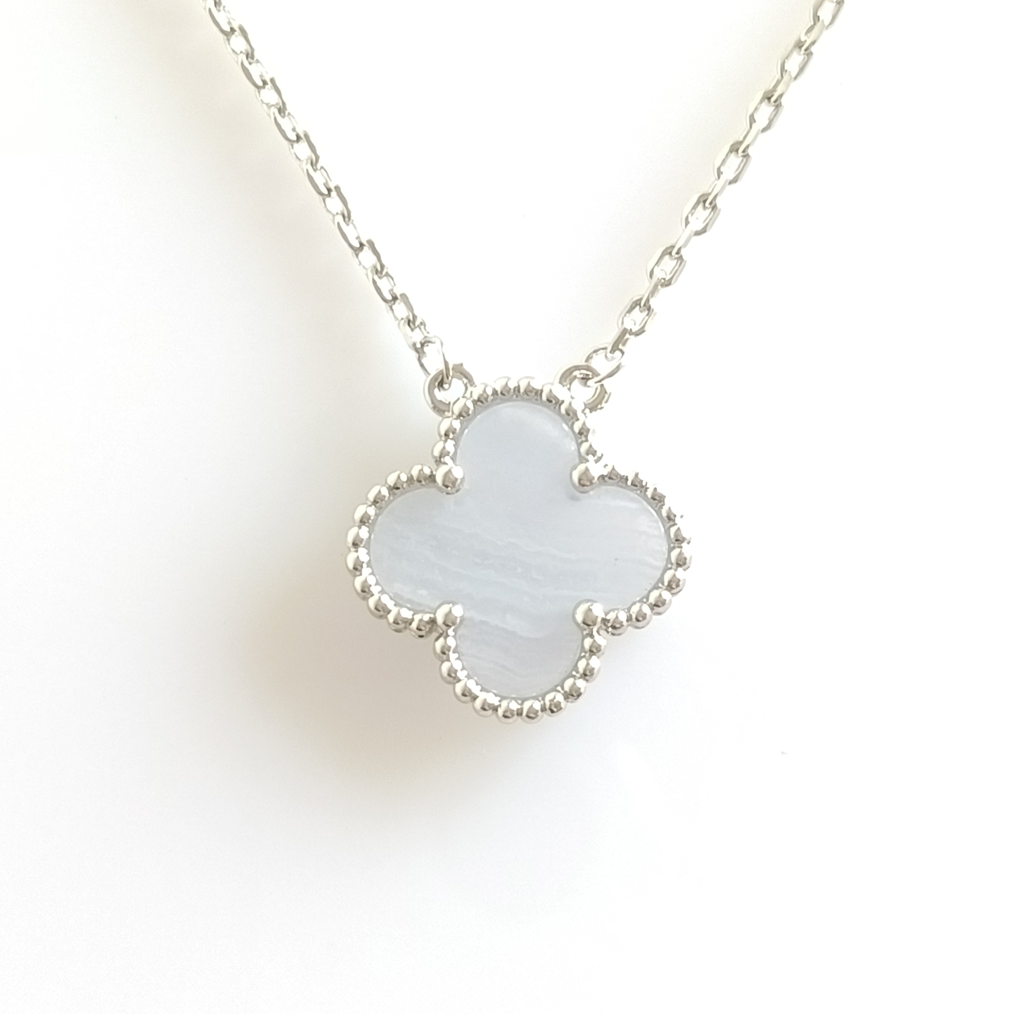 カルセドニー ホワイトゴールド クローバーネックレス 15mm