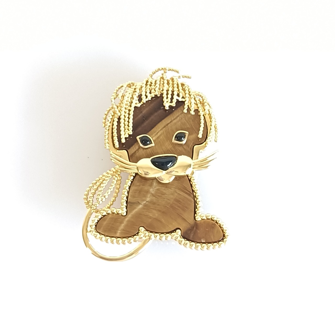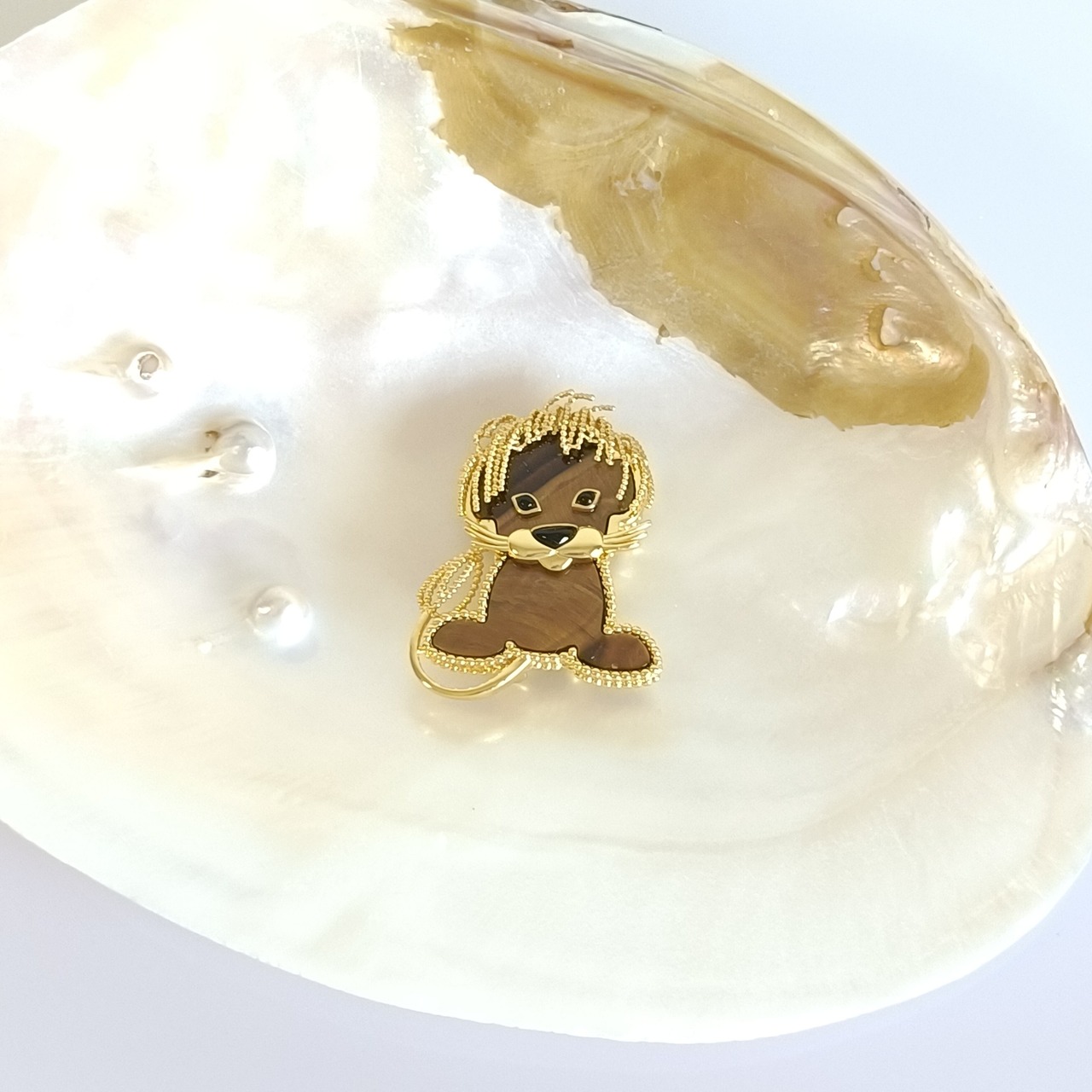 ライオン ブローチ タイガーズアイ イエローゴールド