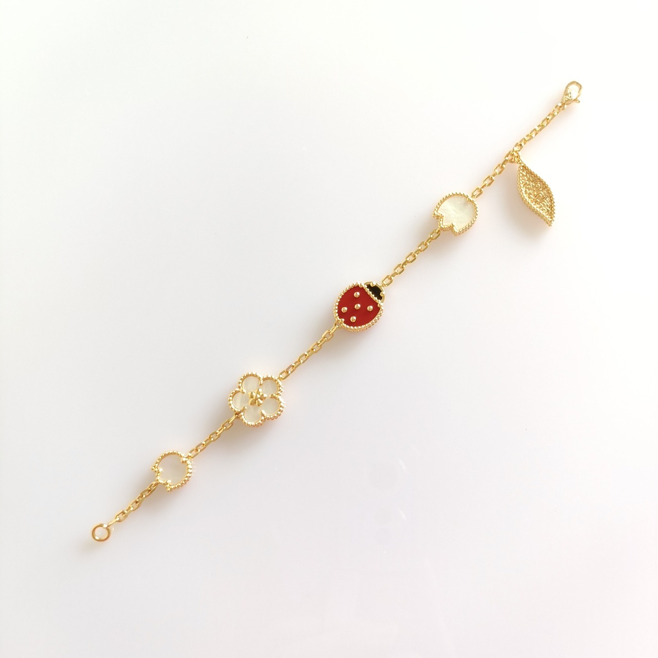 てんとう虫 イエローゴールド マルチモチーフブレスレット