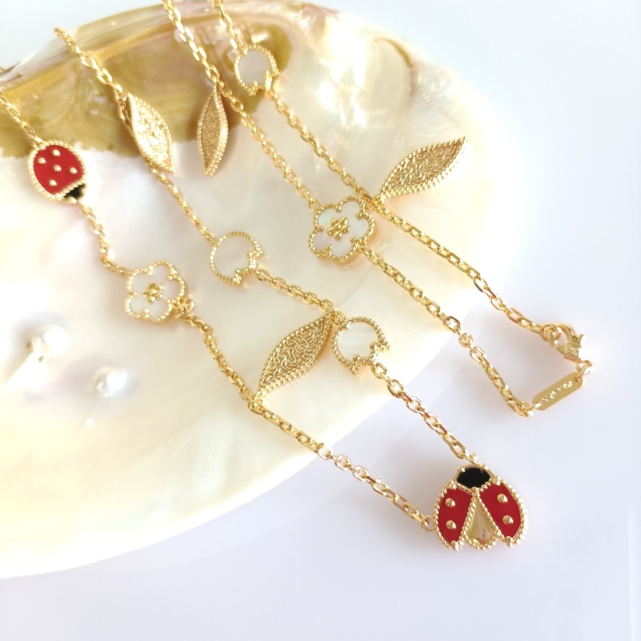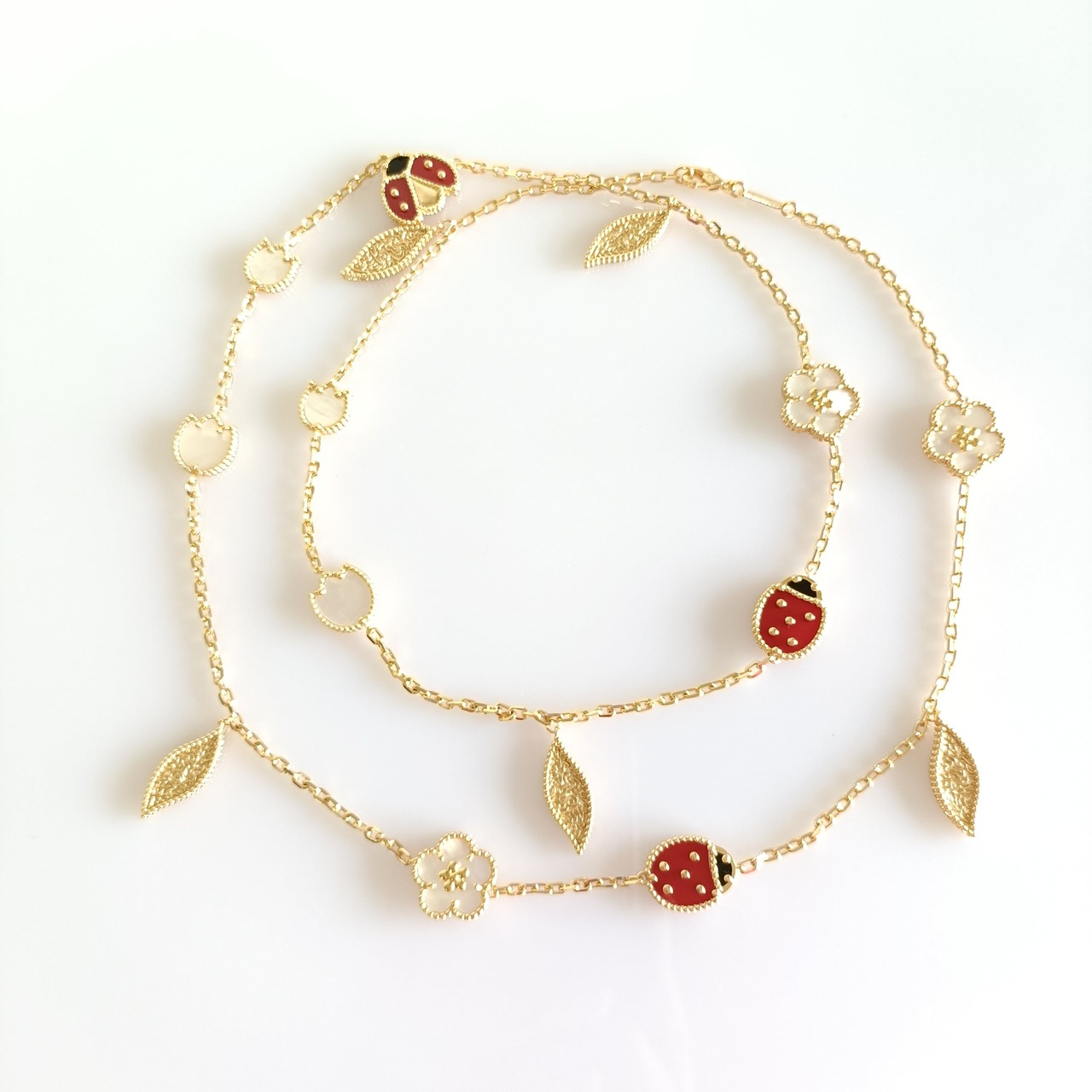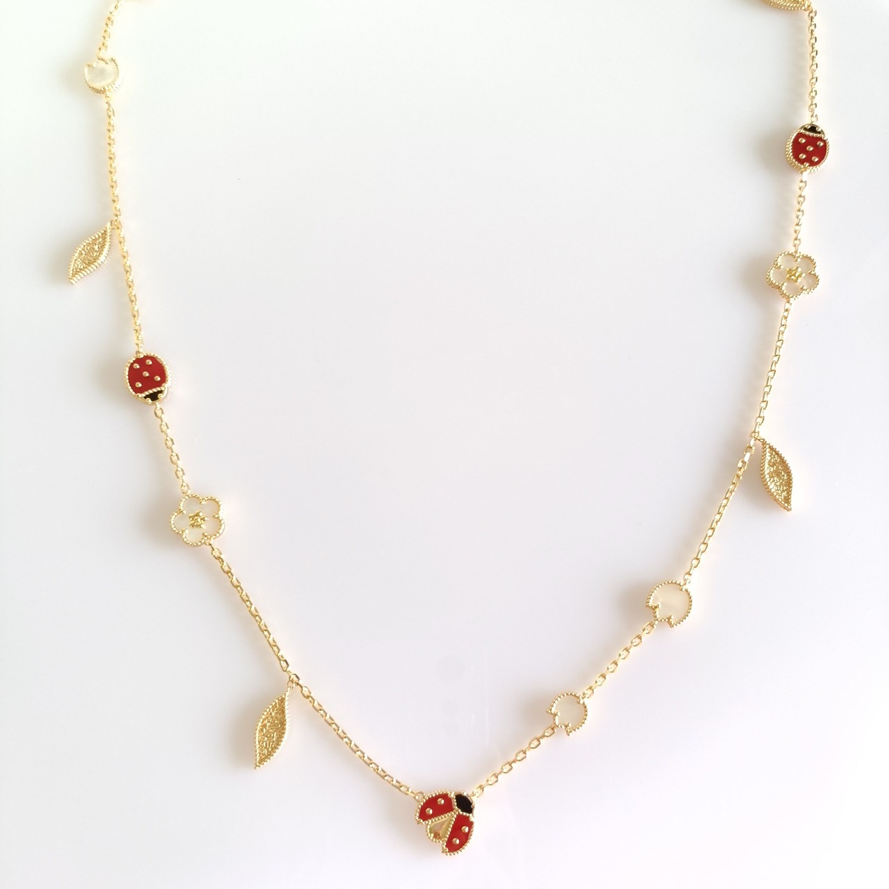 てんとう虫 イエローゴールド マルチモチーフロングネックレス