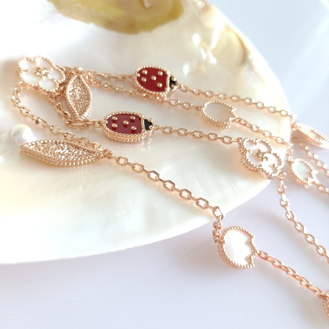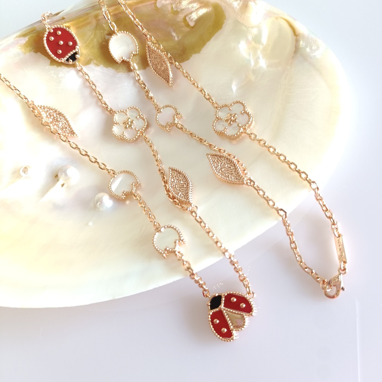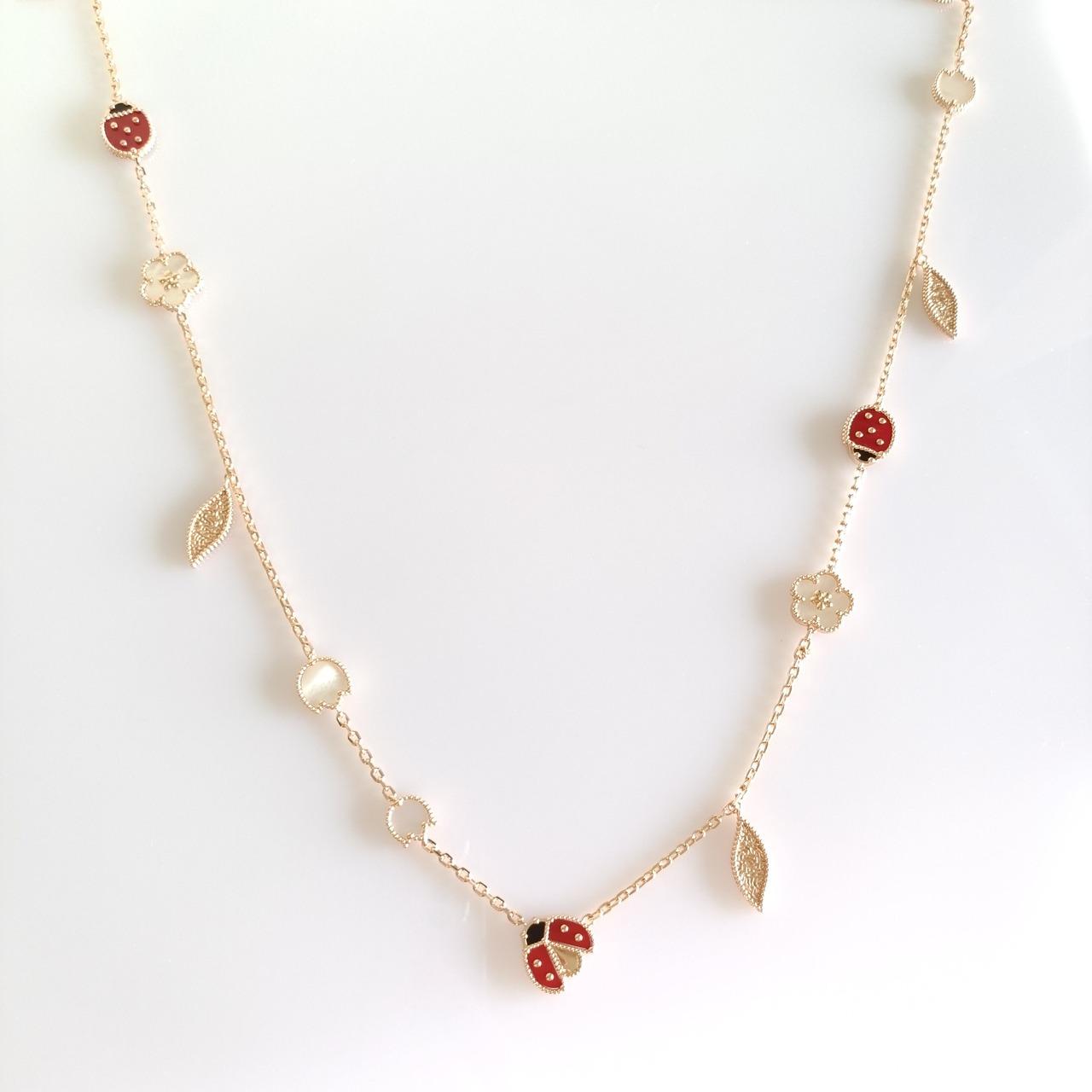 てんとう虫 ローズゴールド マルチモチーフロングネックレス