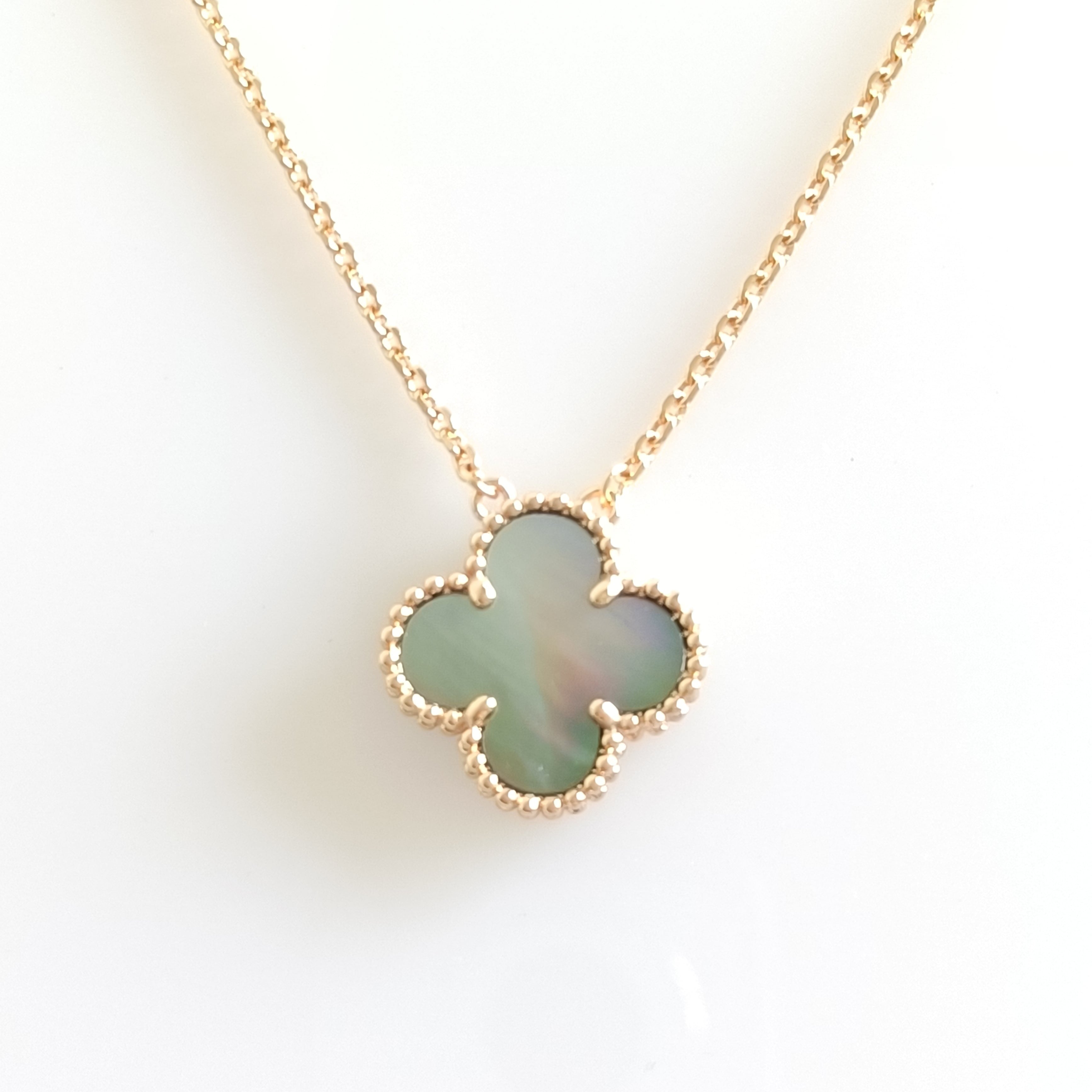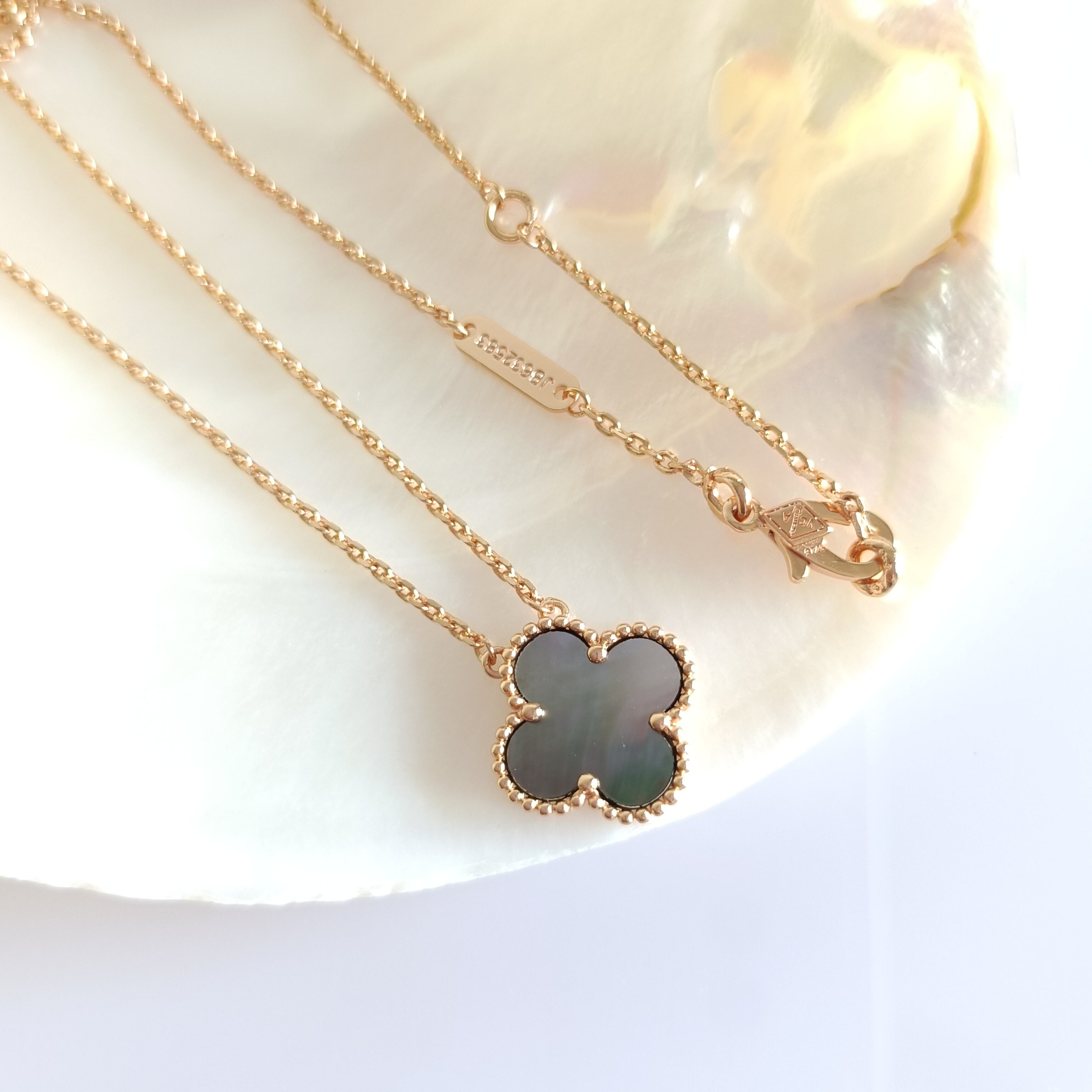 黒蝶貝 ローズゴールド クローバーネックレス 15mm