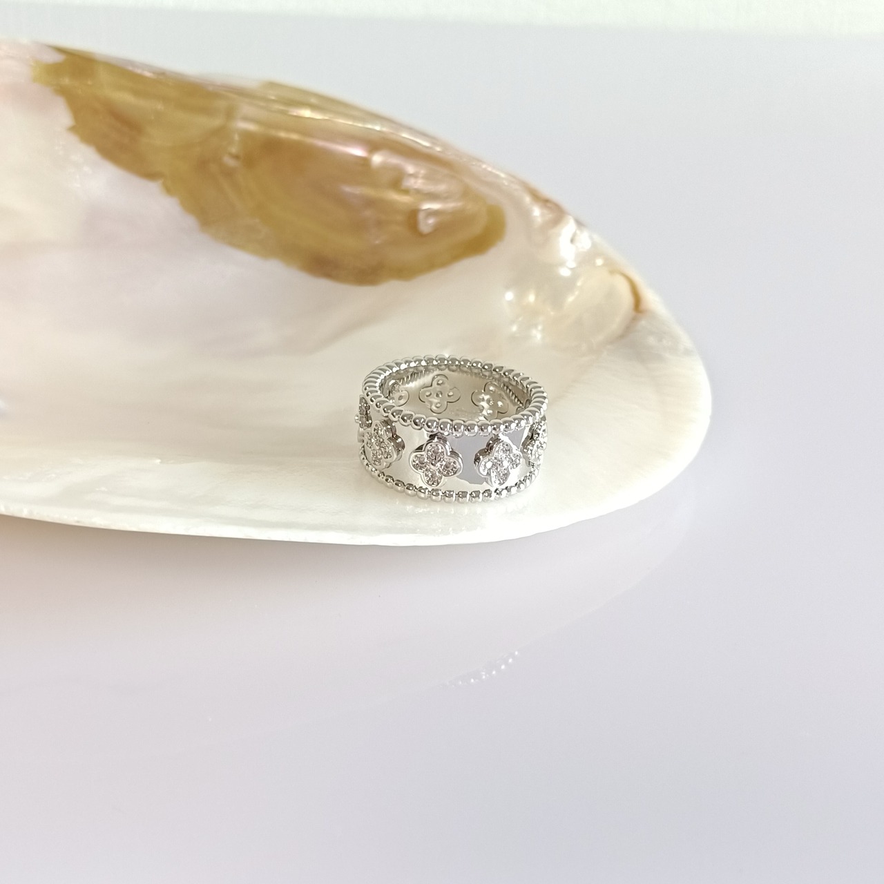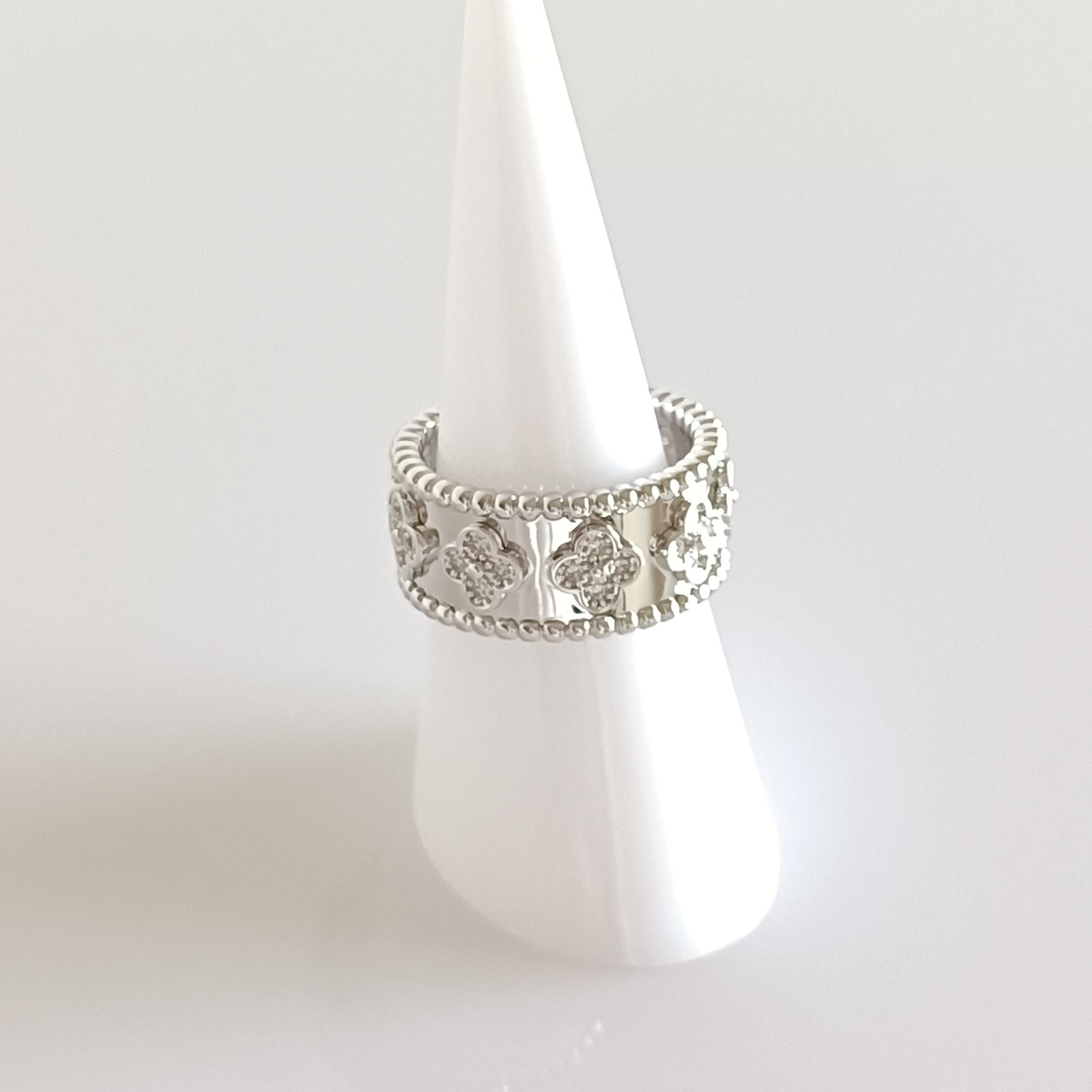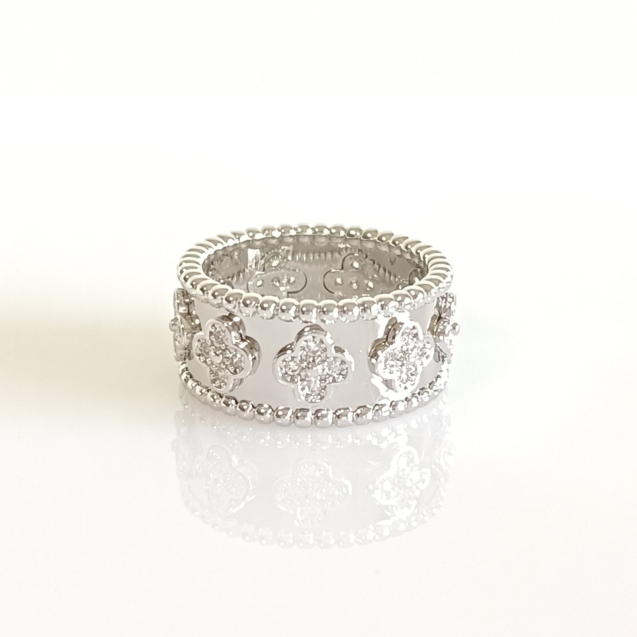 14号 57 ホワイトゴールド ペルレクローバーリング 幅10mm