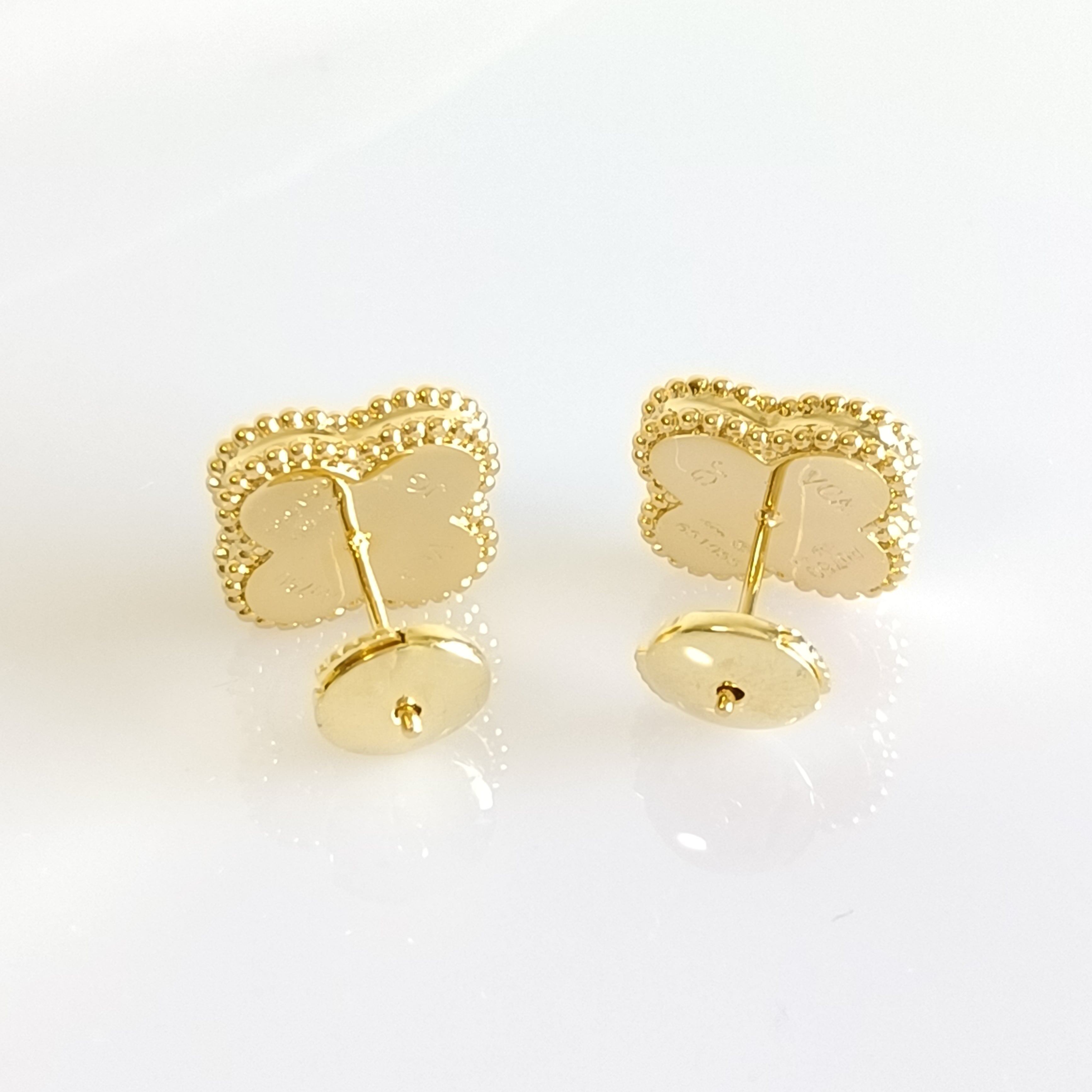 白蝶貝 イエローゴールド クローバースタッドピアス 15mm