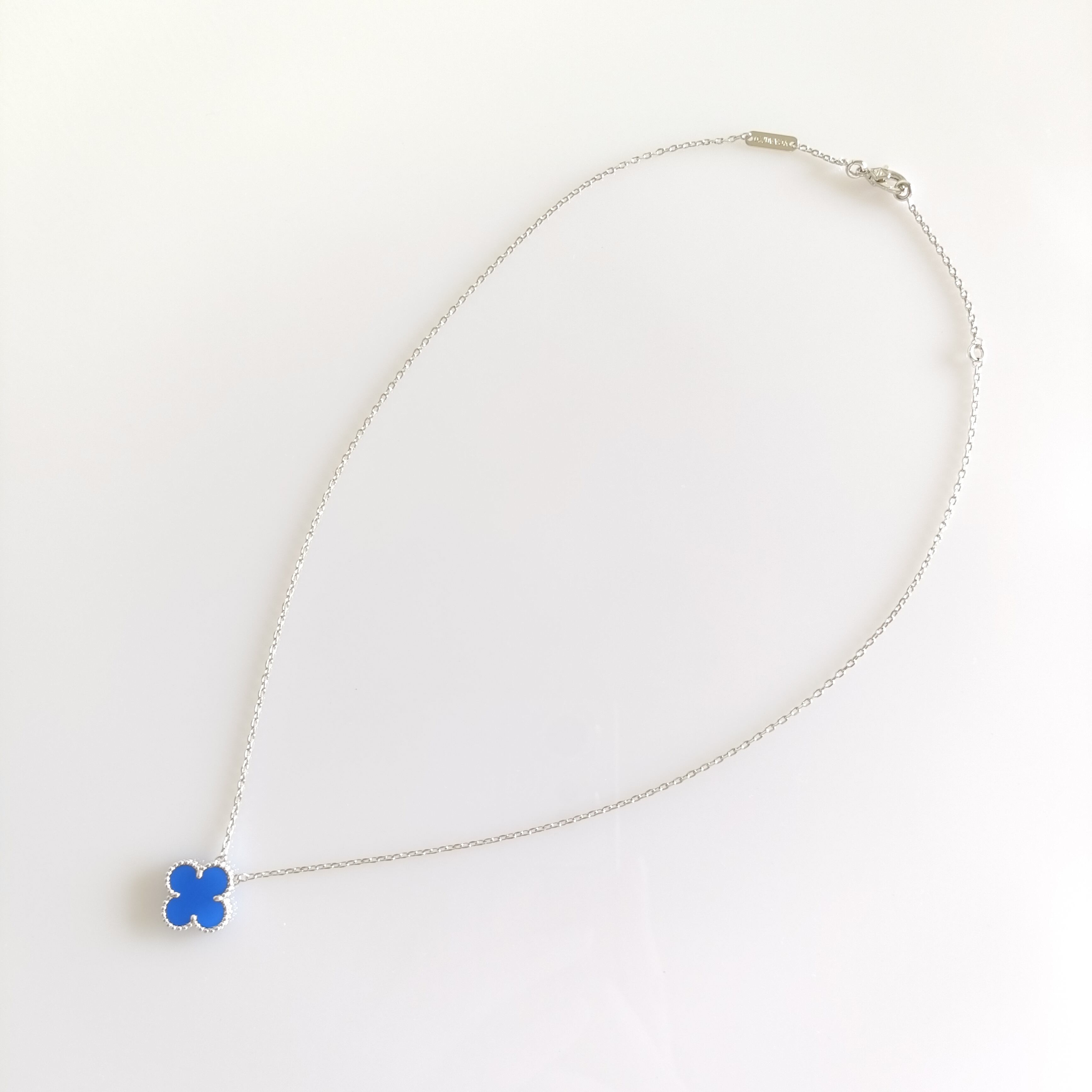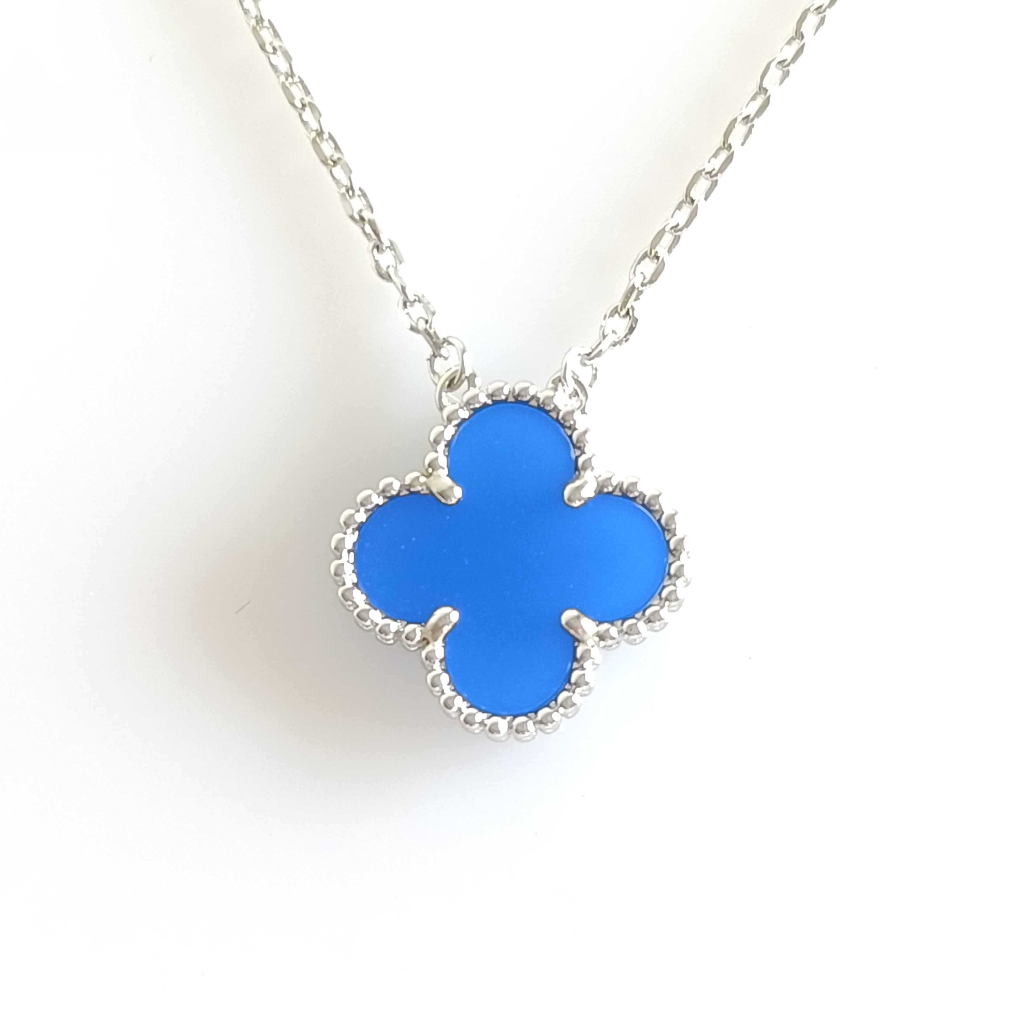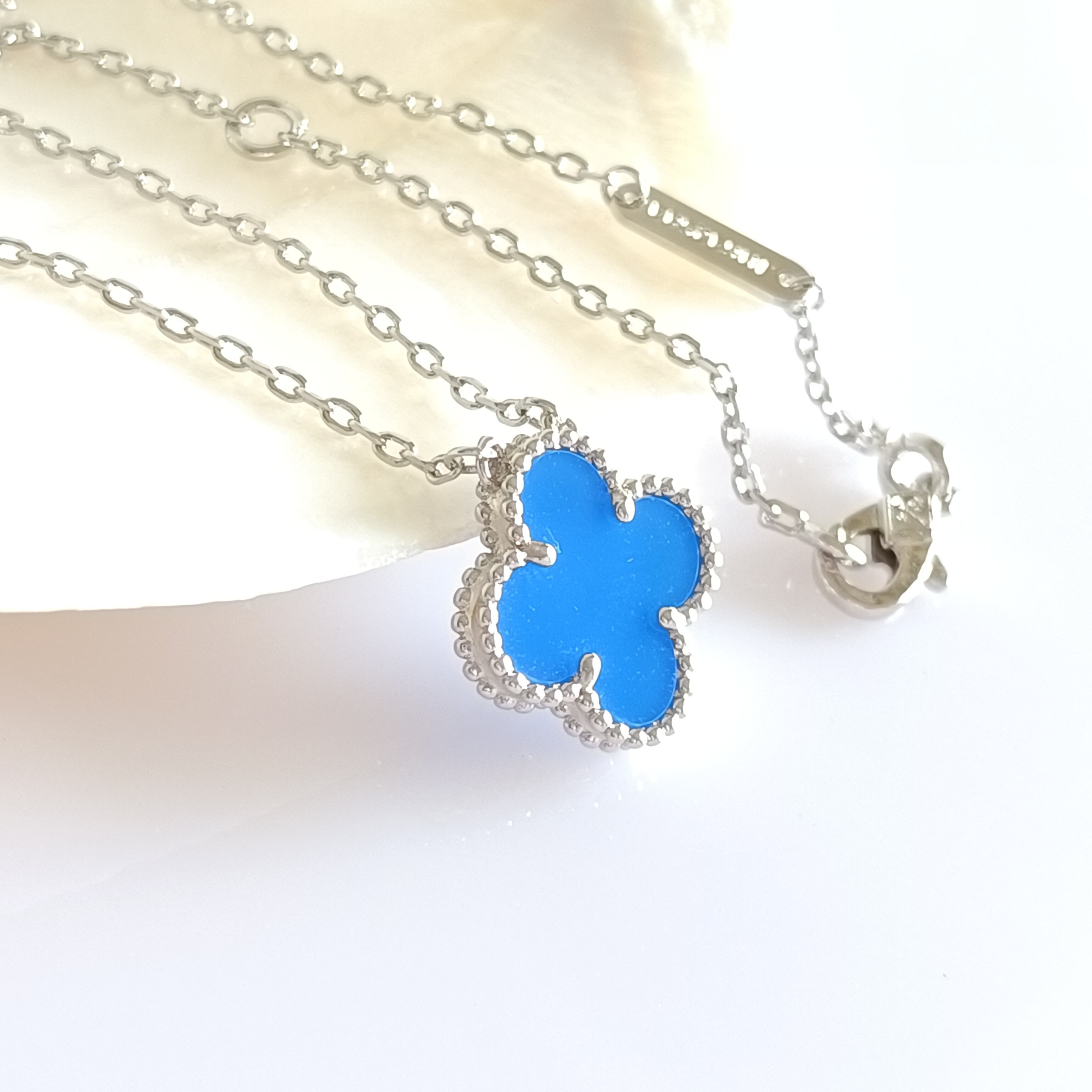 ブルーアゲート ホワイトゴールド クローバーネックレス 15mm