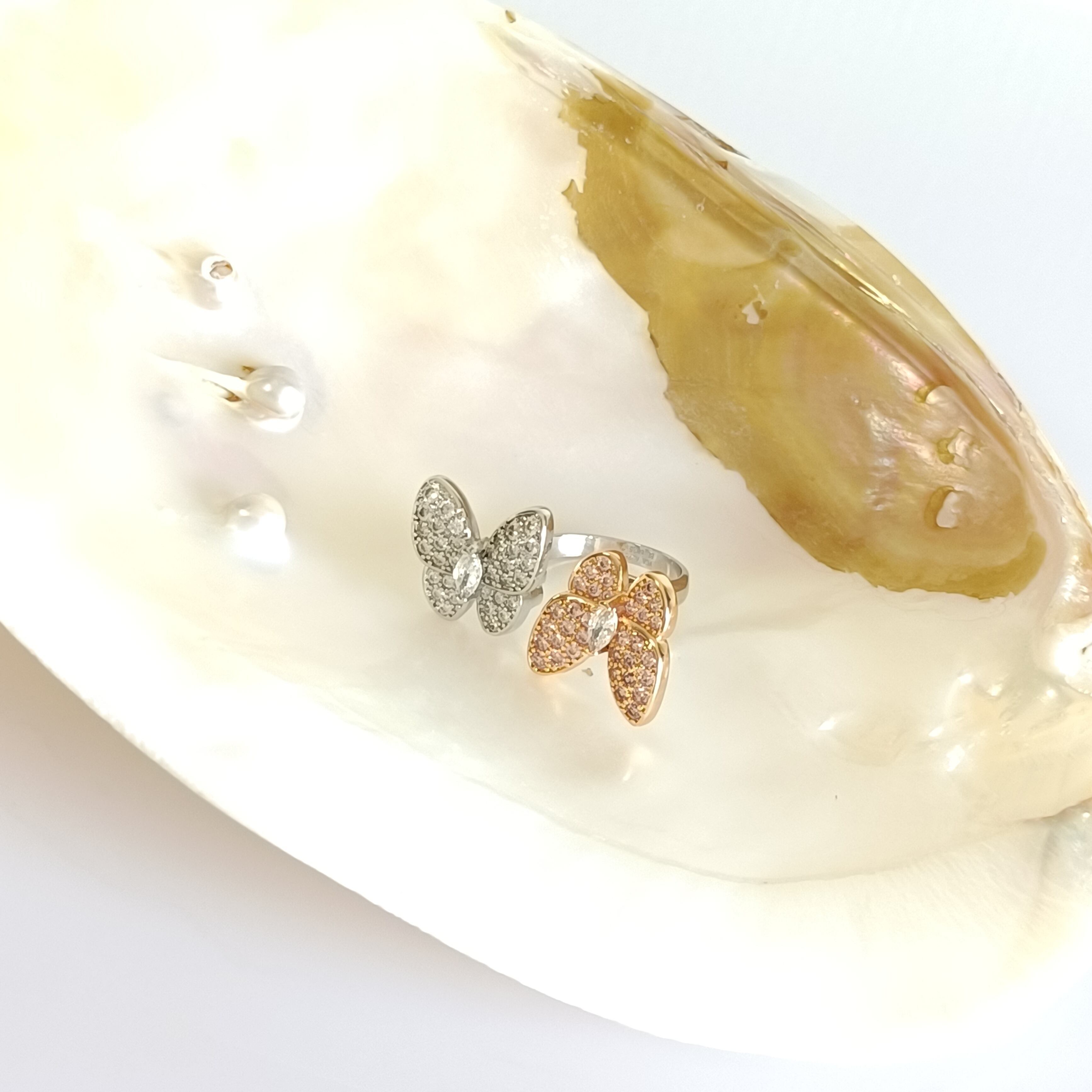 ローズゴールド ホワイトゴールド バタフライ オープンリング