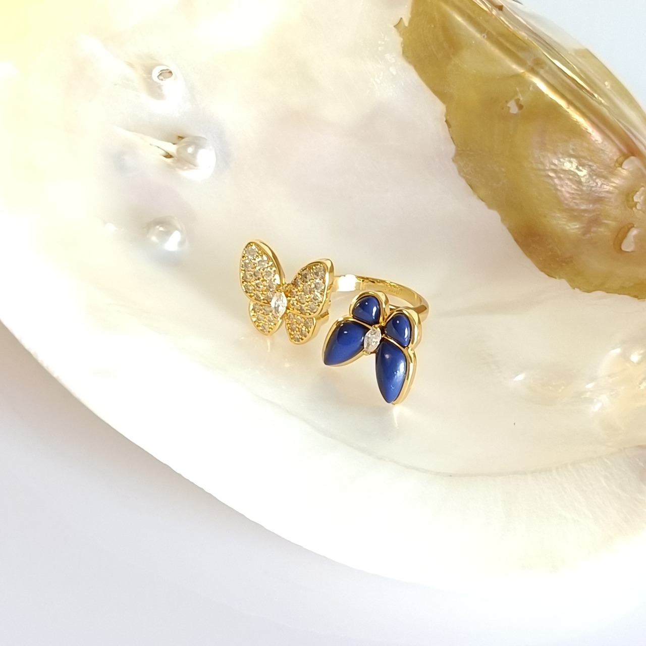 ラピスラズリ イエローゴールド バタフライ オープンリング