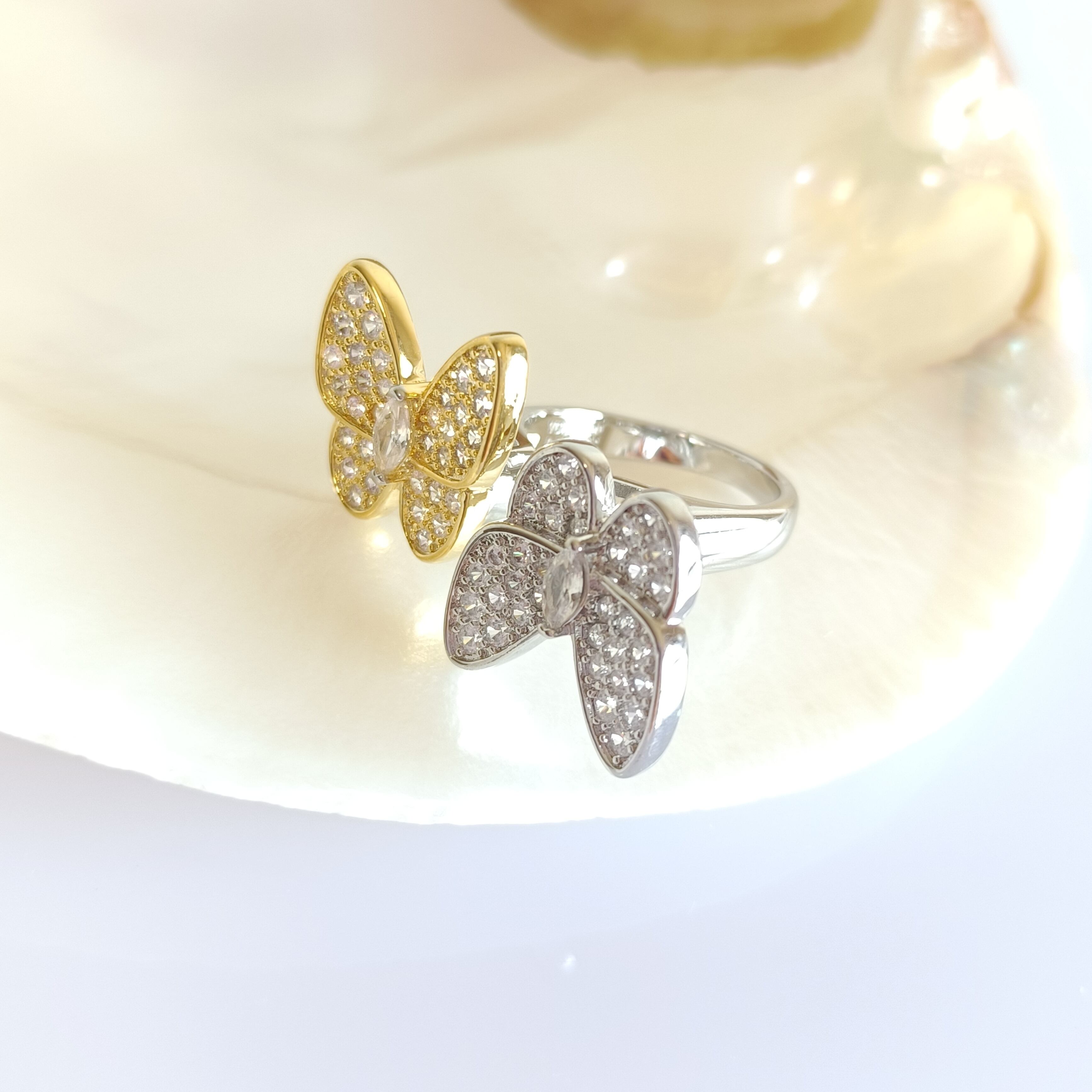 イエローゴールド ホワイトゴールド バタフライ オープンリング