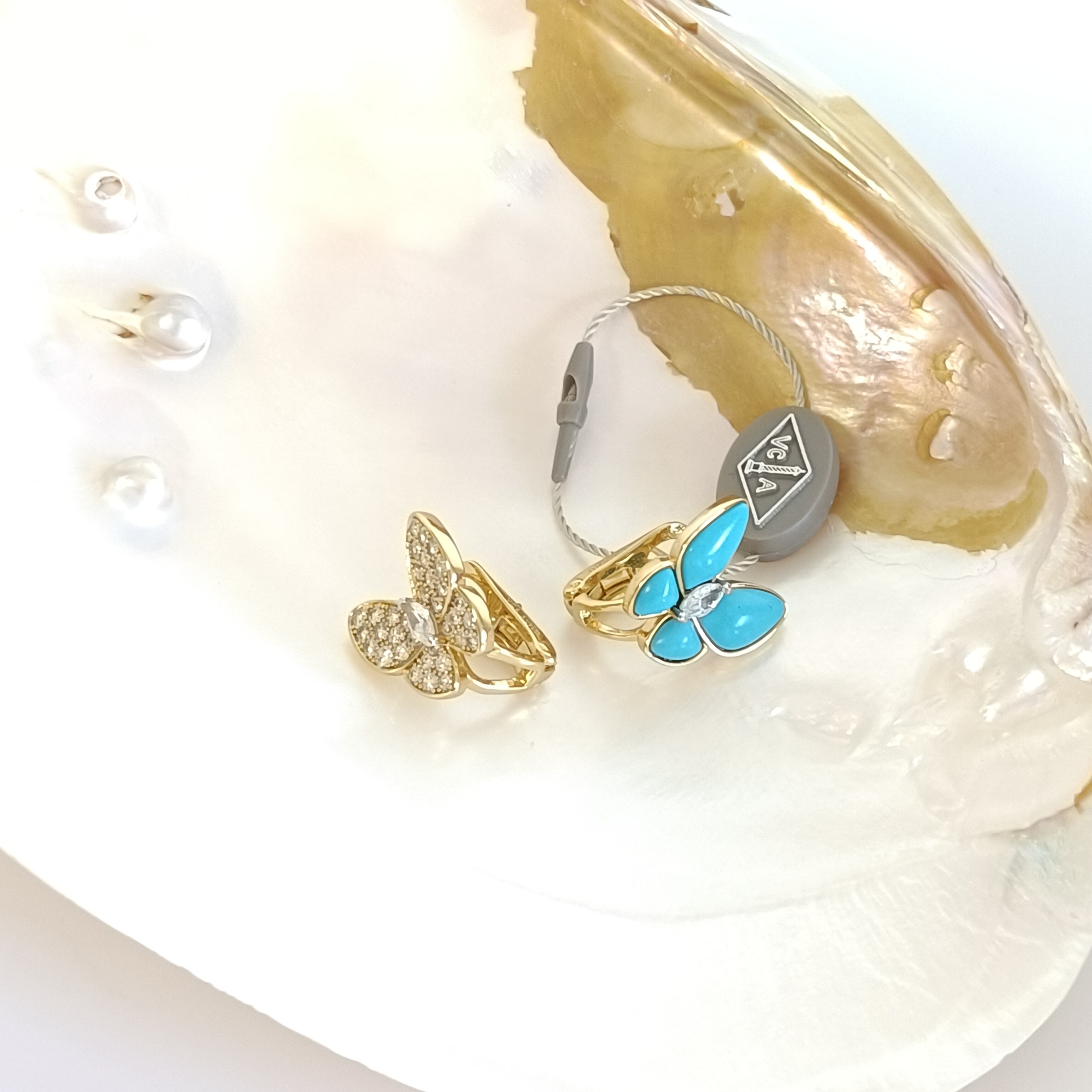蝶をテーマにした、ドゥ パピヨン コレクション。独特の色づかいとアシンメトリックなデザインが特徴で、空を舞う蝶の優雅な美しさを表現しています。