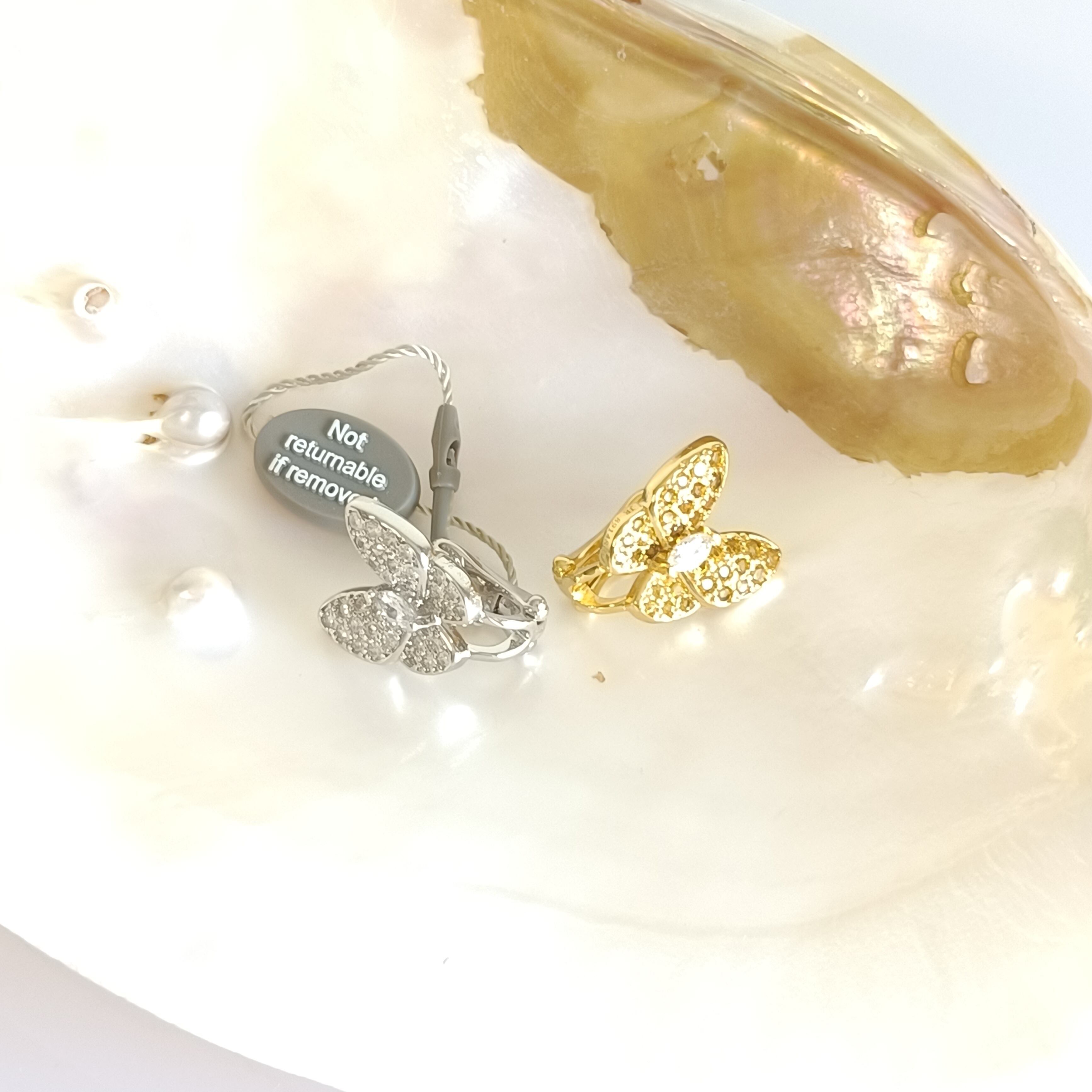 イエローゴールド ホワイトゴールド バタフライピアス