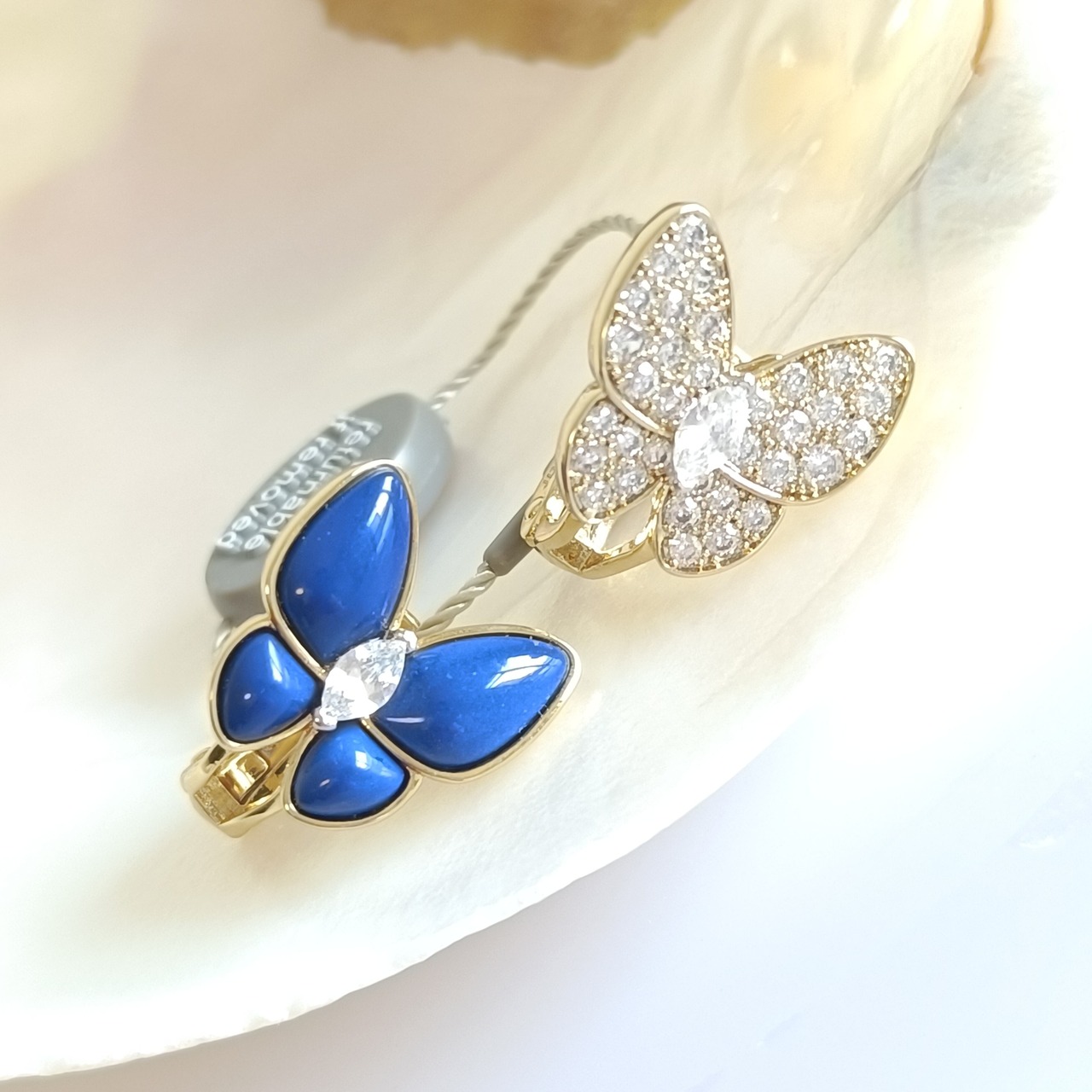 ラピスラズリ イエローゴールド バタフライピアス