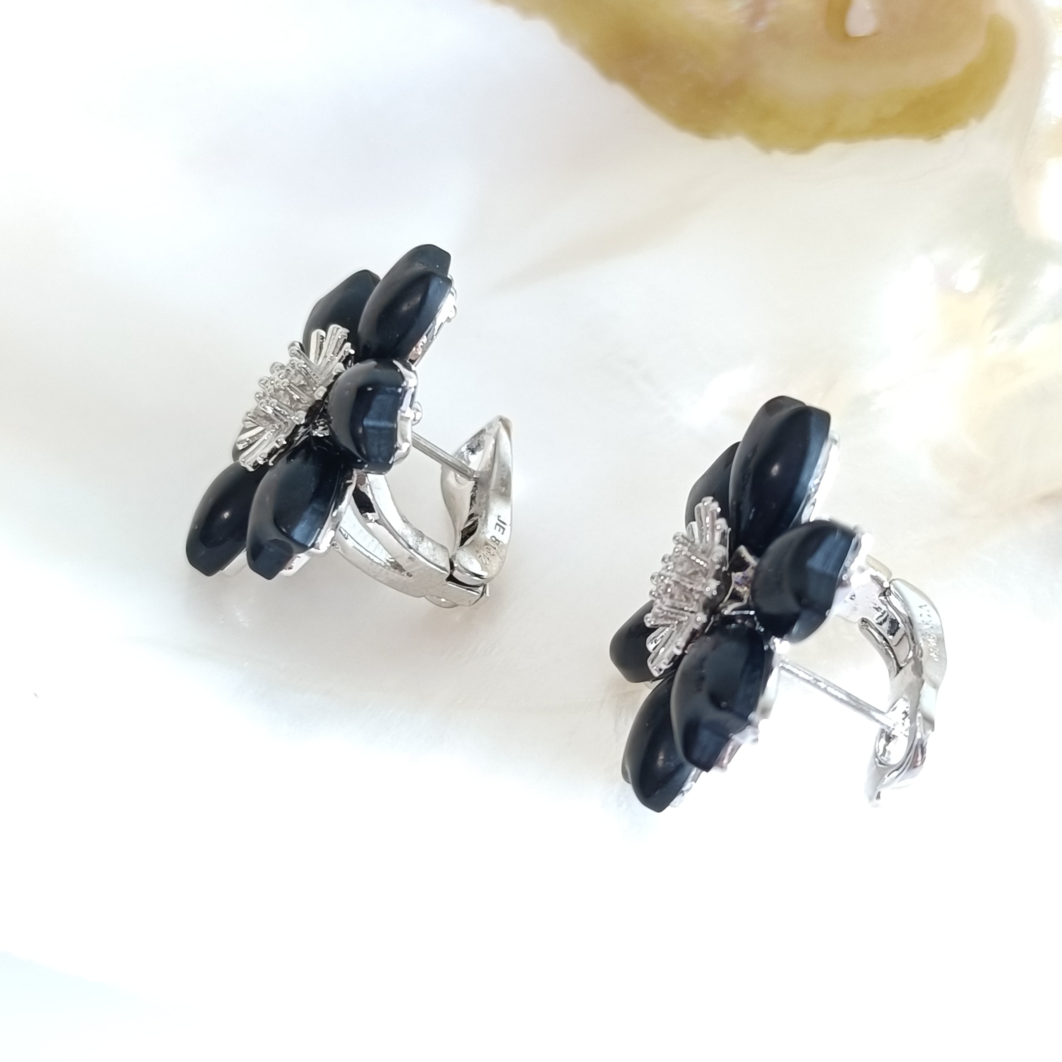 オニキス ホワイトゴールド ローズドノエル ピアス 23mm