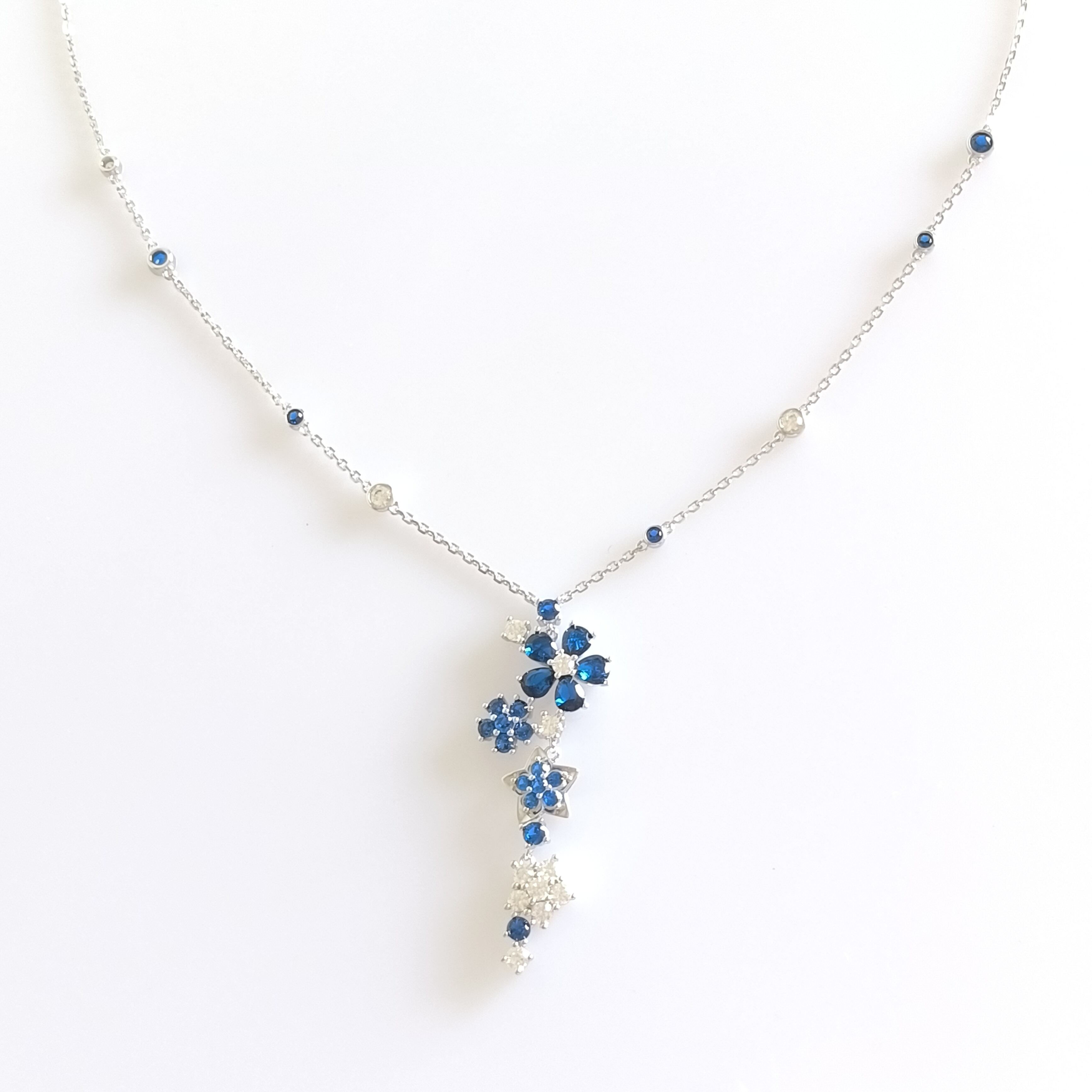 ブルーサファイア ホワイトゴールド フォリデプレネックレス